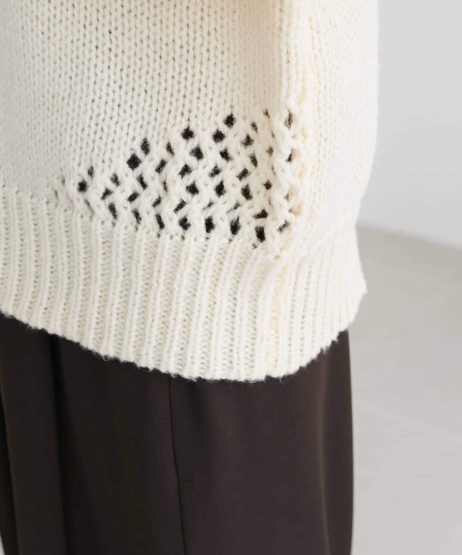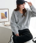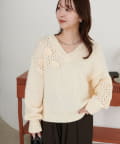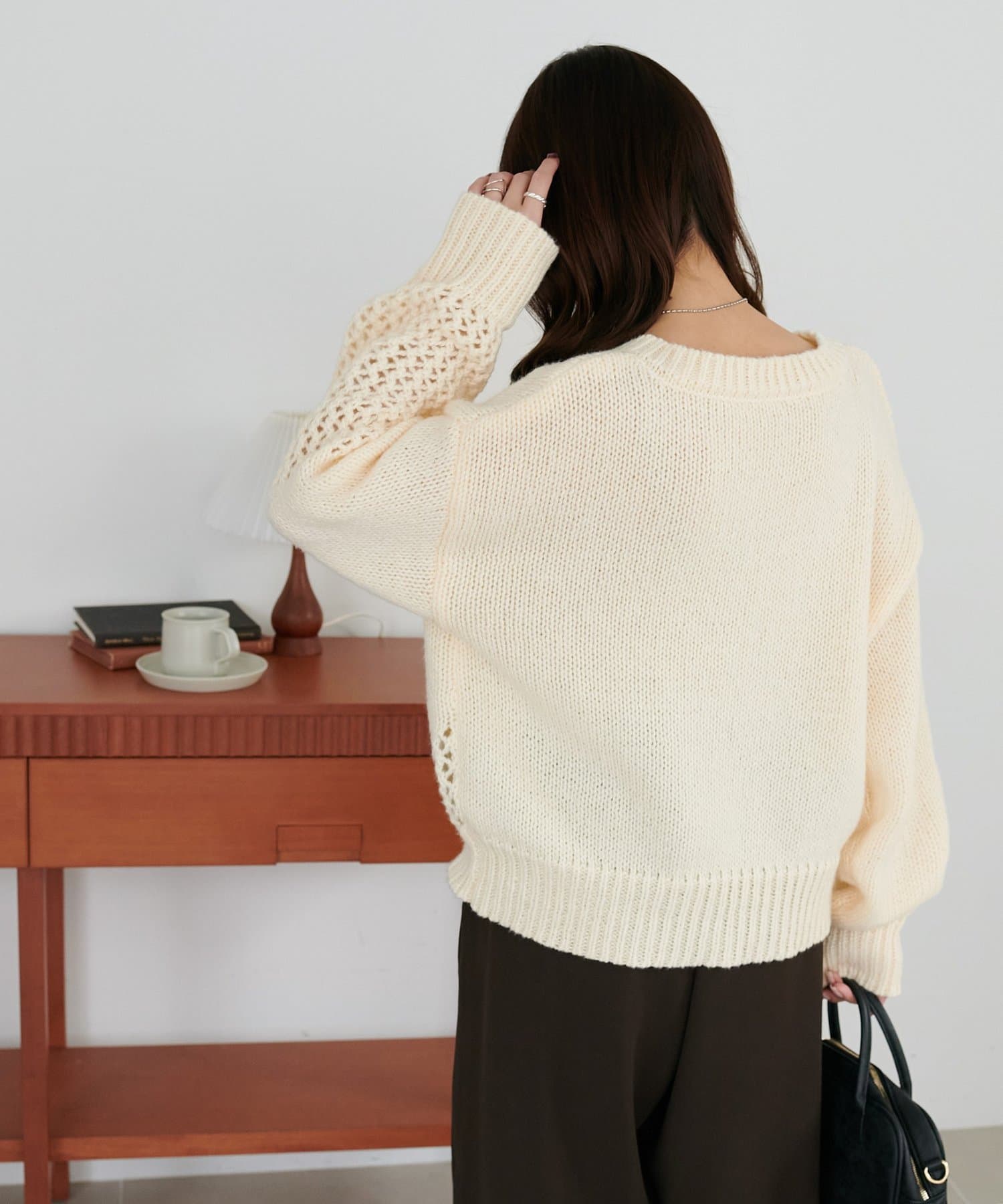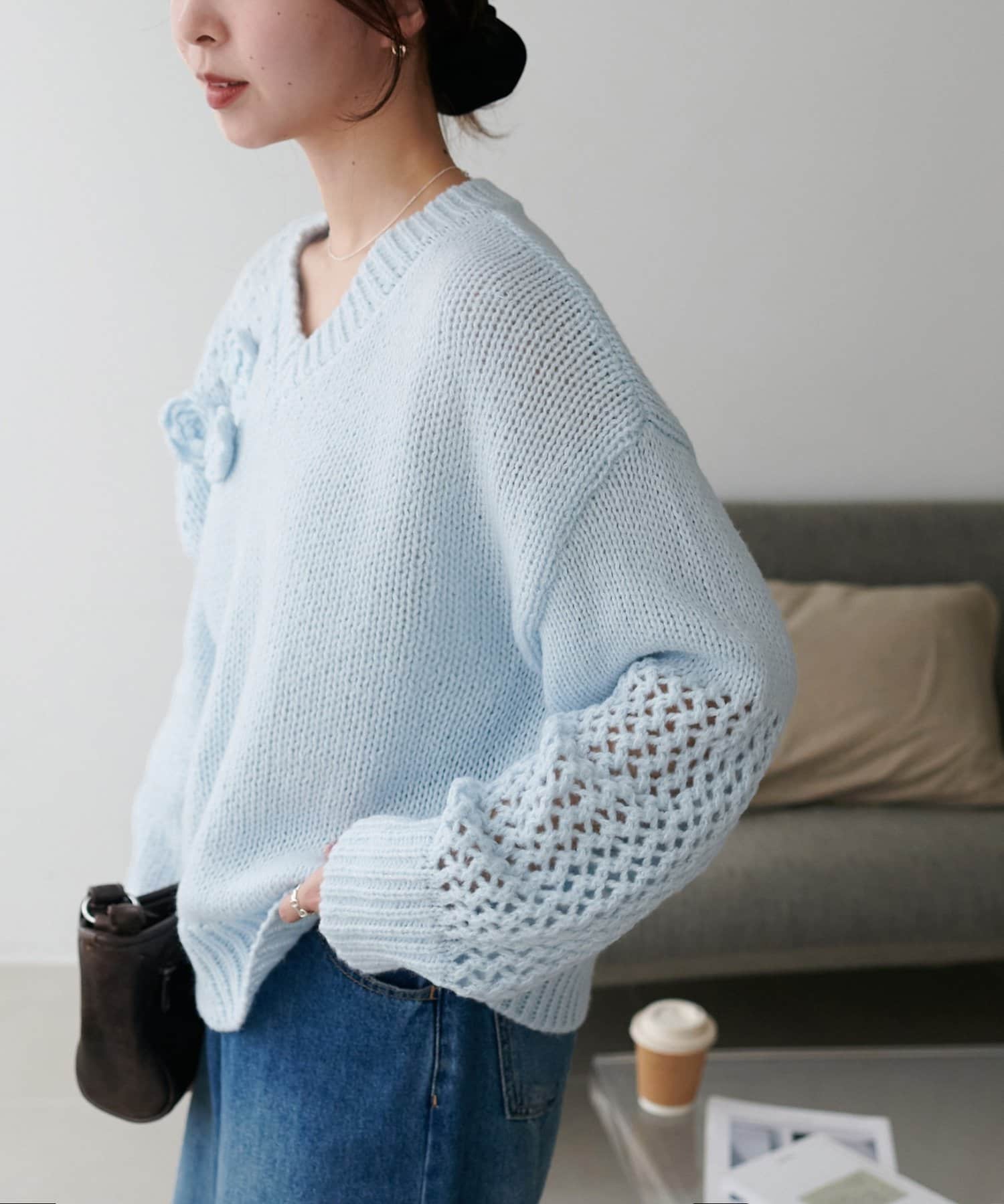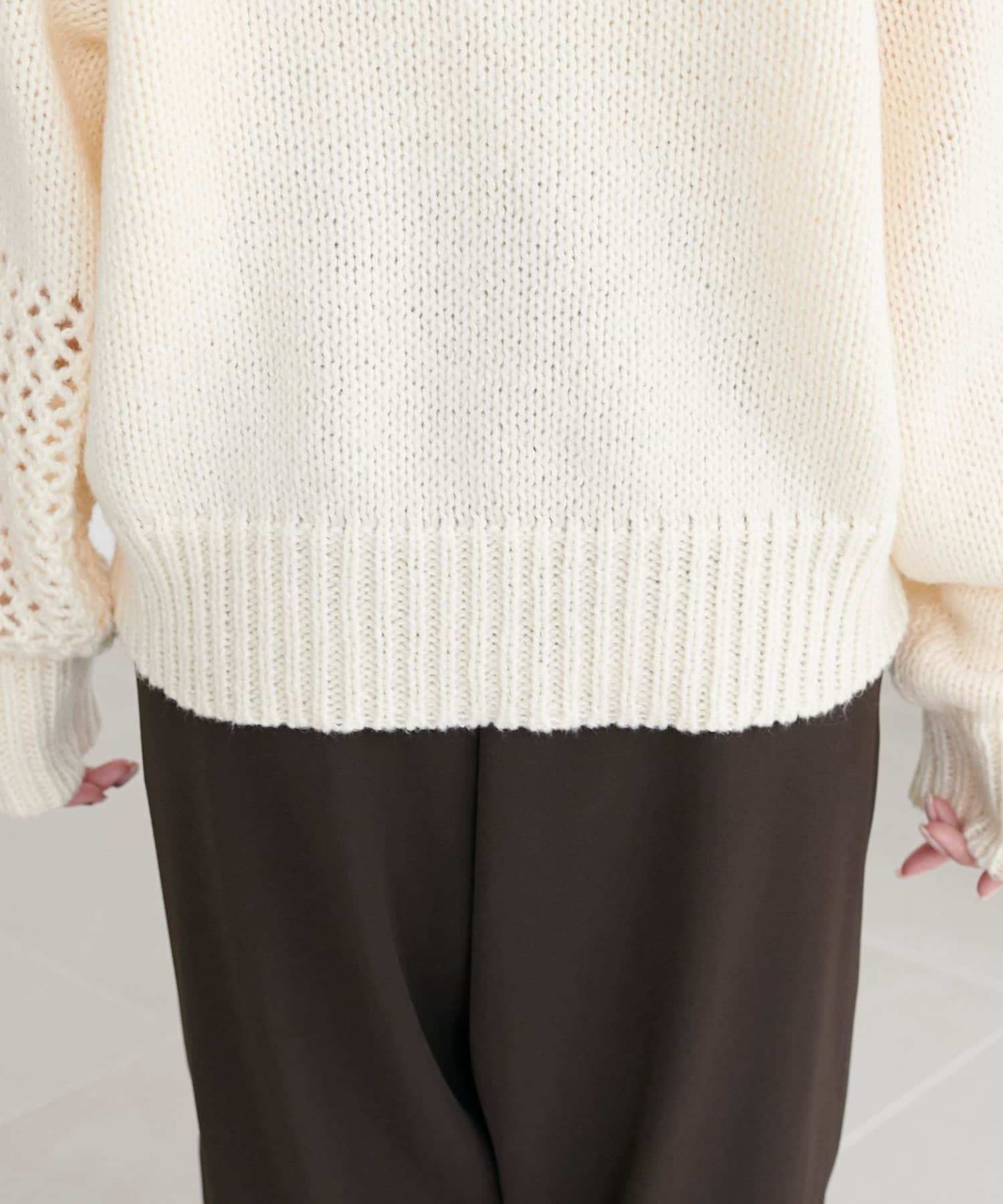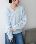 袖や肩部分には透かし編みを取り入れており、軽やかな抜け感を演出♪