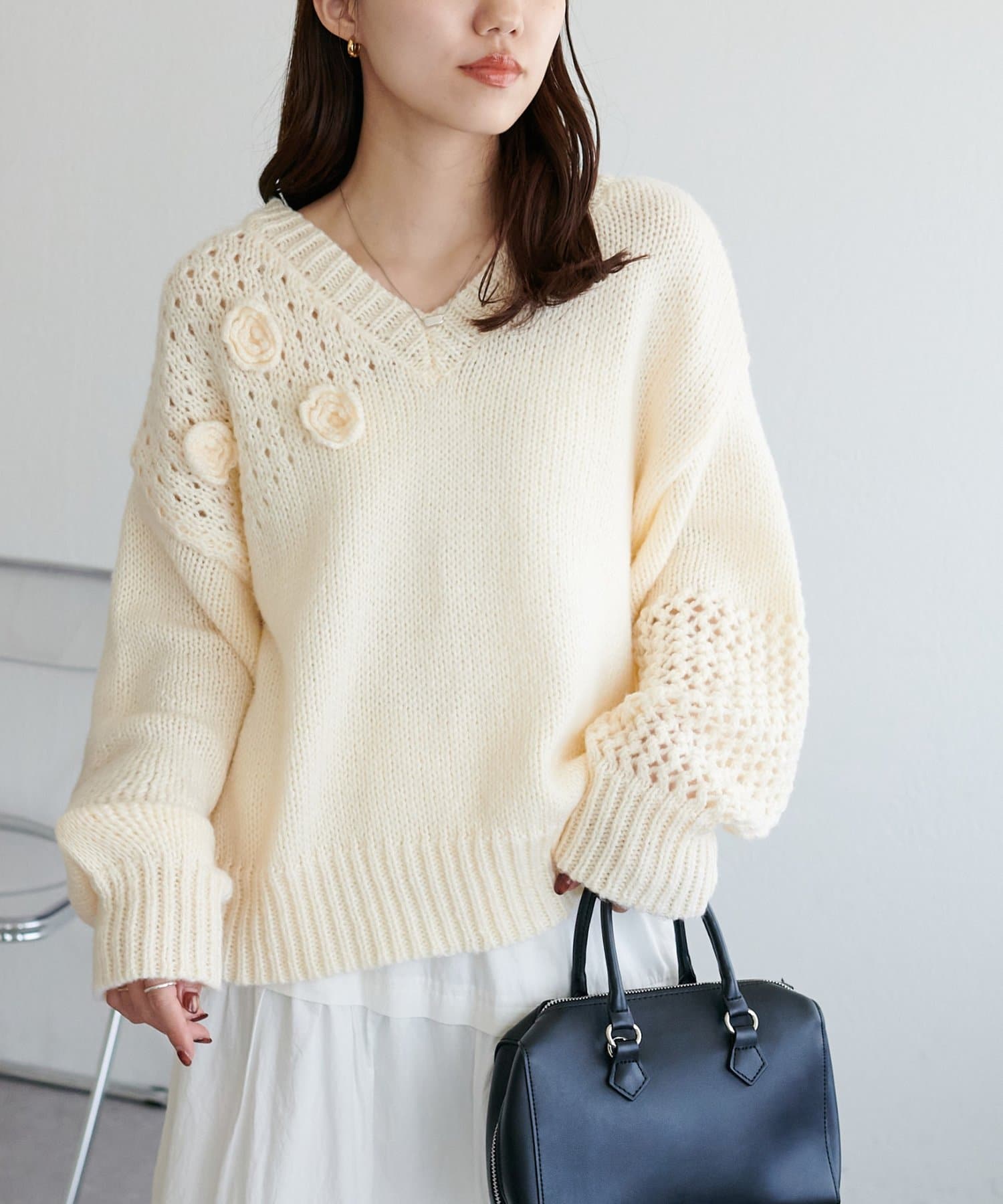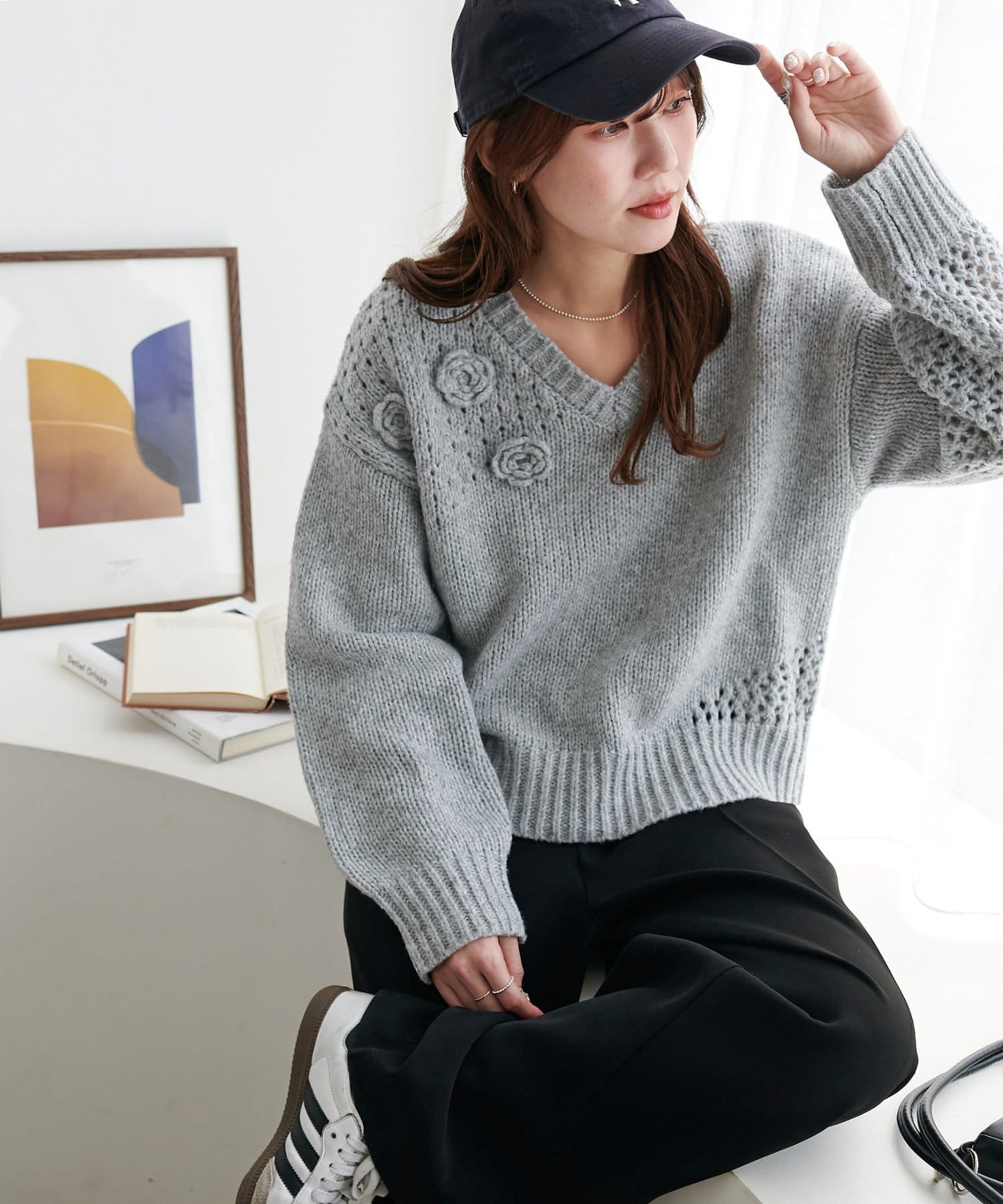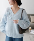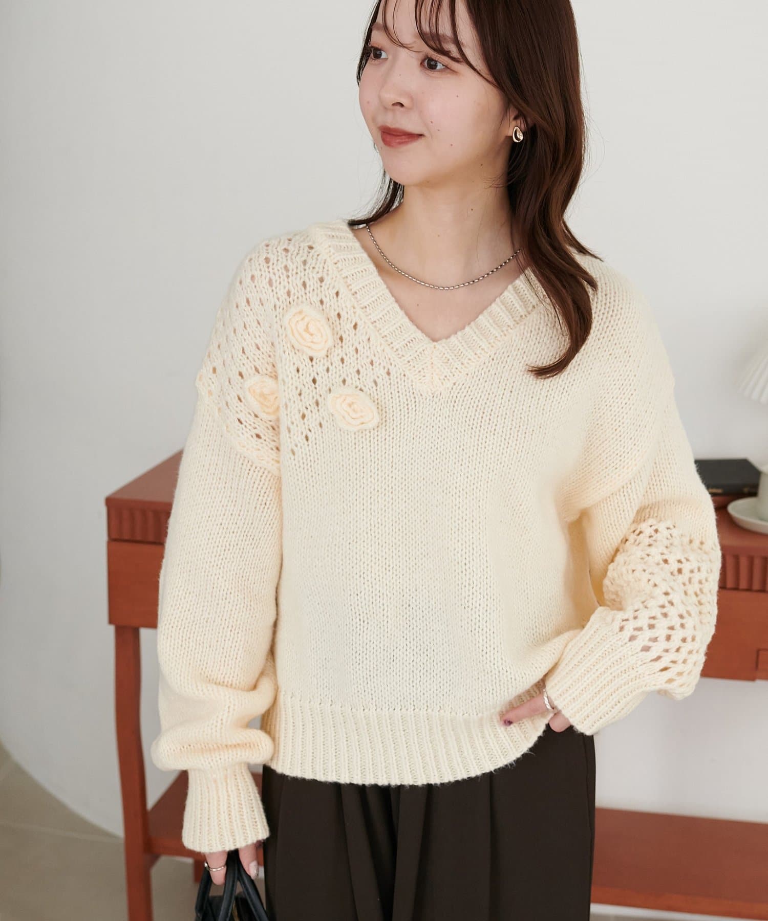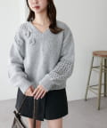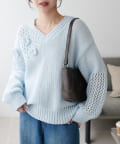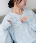 同色で編まれた小さなフラワーモチーフがアクセントになったプルオーバー!