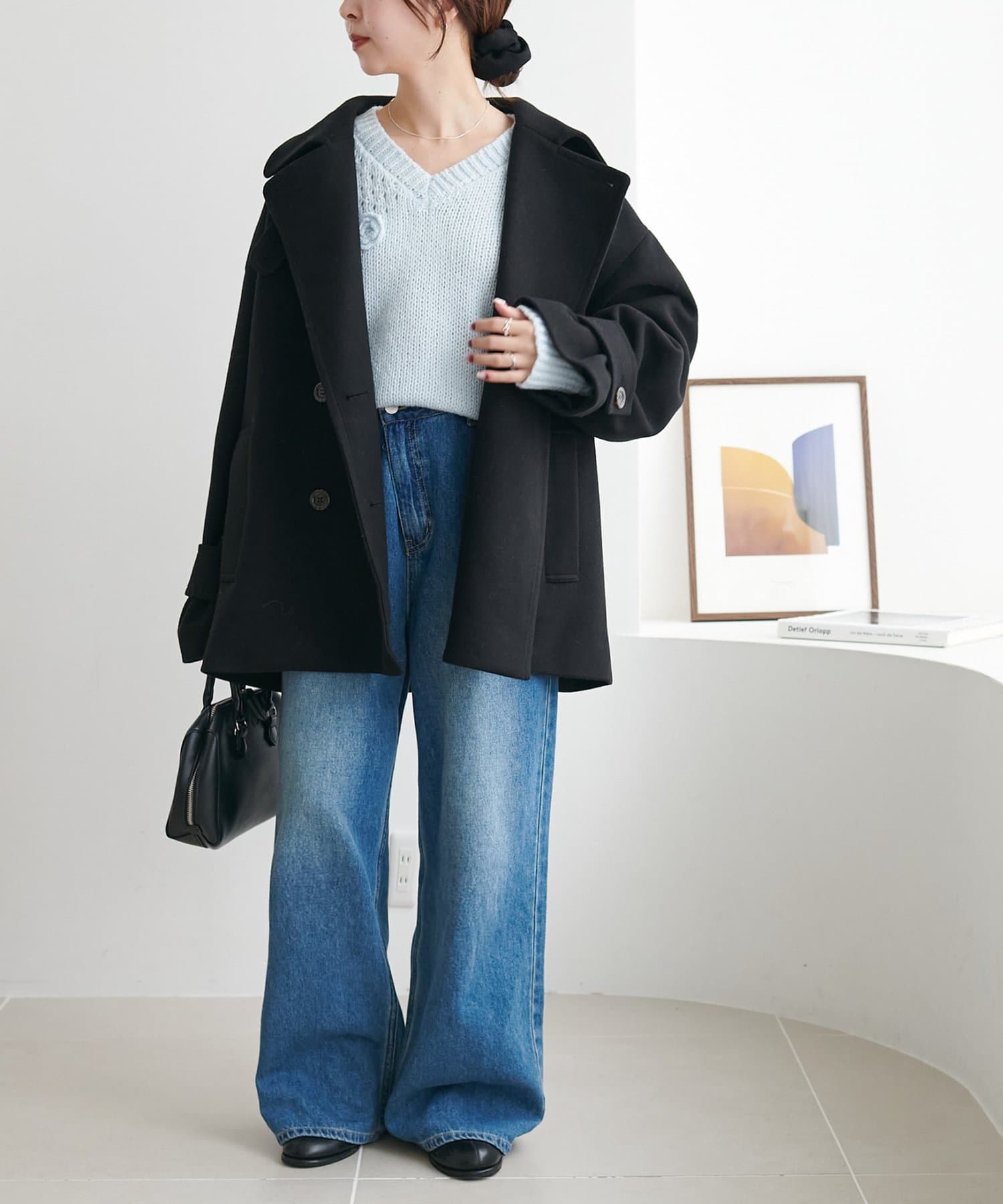 程よくゆとりがあるので、インナーにTシャツやタートルネックを合わせたレイヤードコーデもおすすめです。