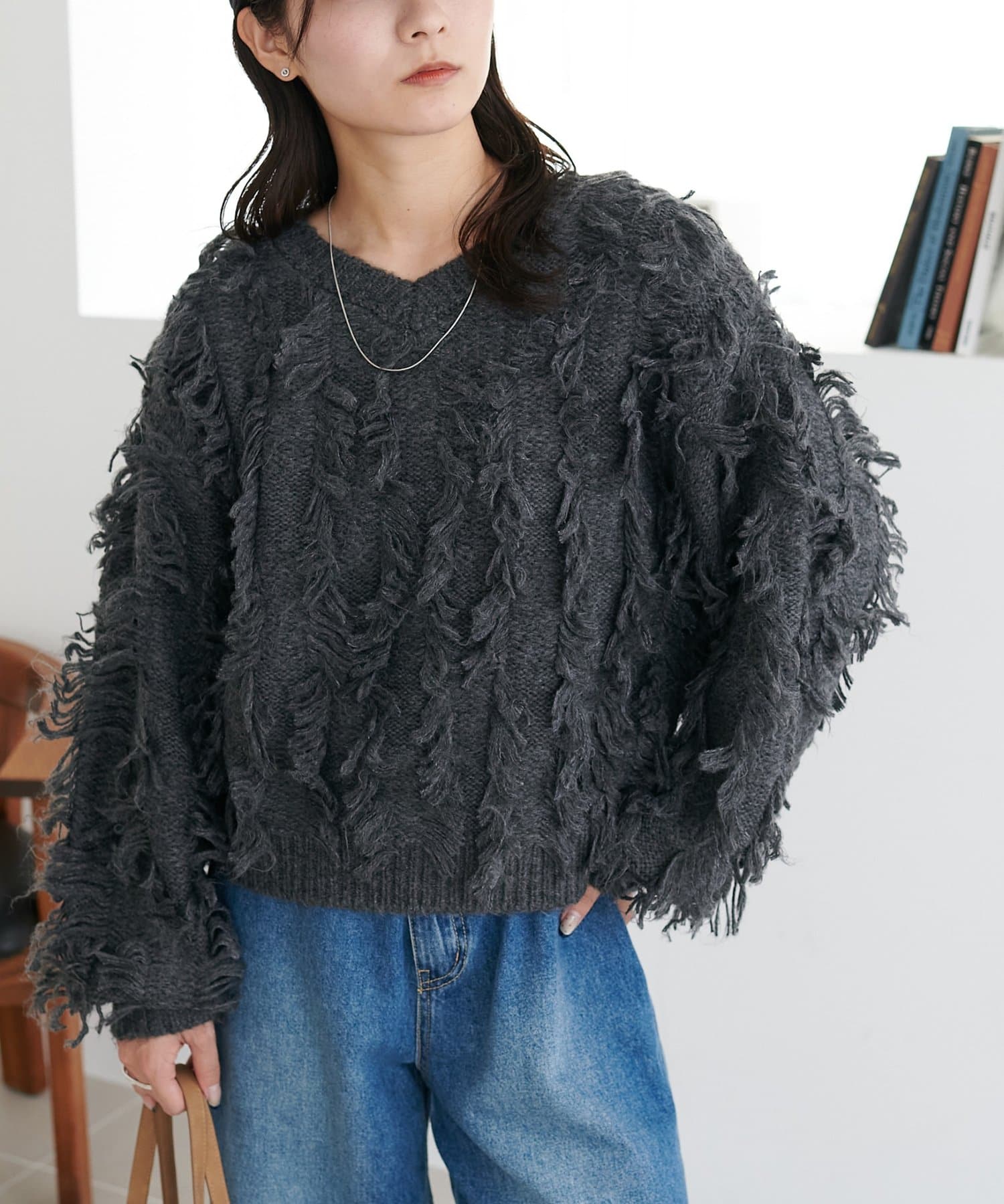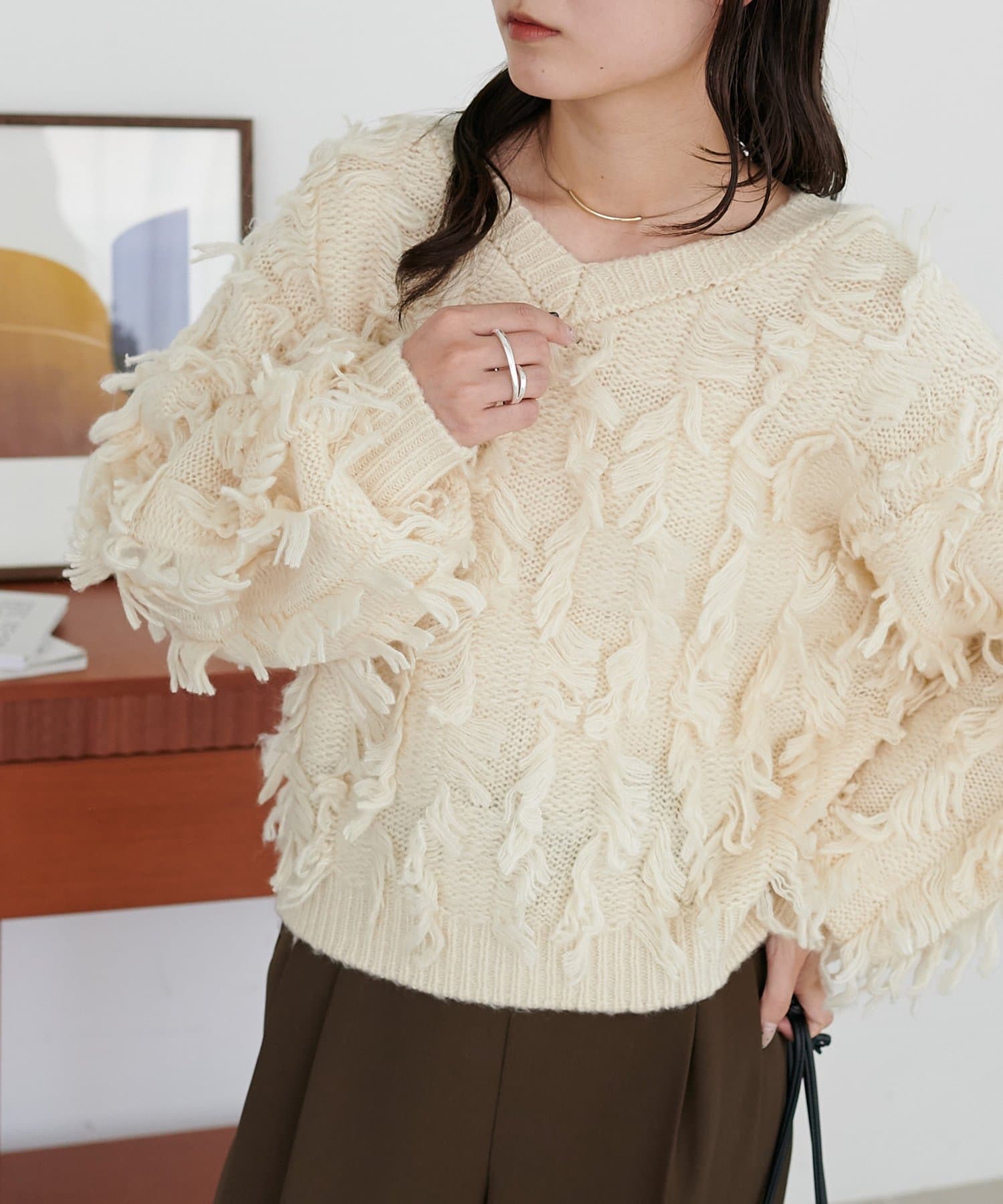 表情豊かなフリンジデザインが印象的なプルオーバー