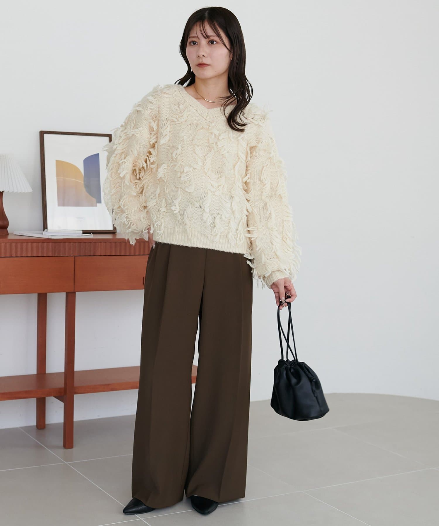 表情のあるニットなので、シンプルなボトムスとの合わせがおすすめ!