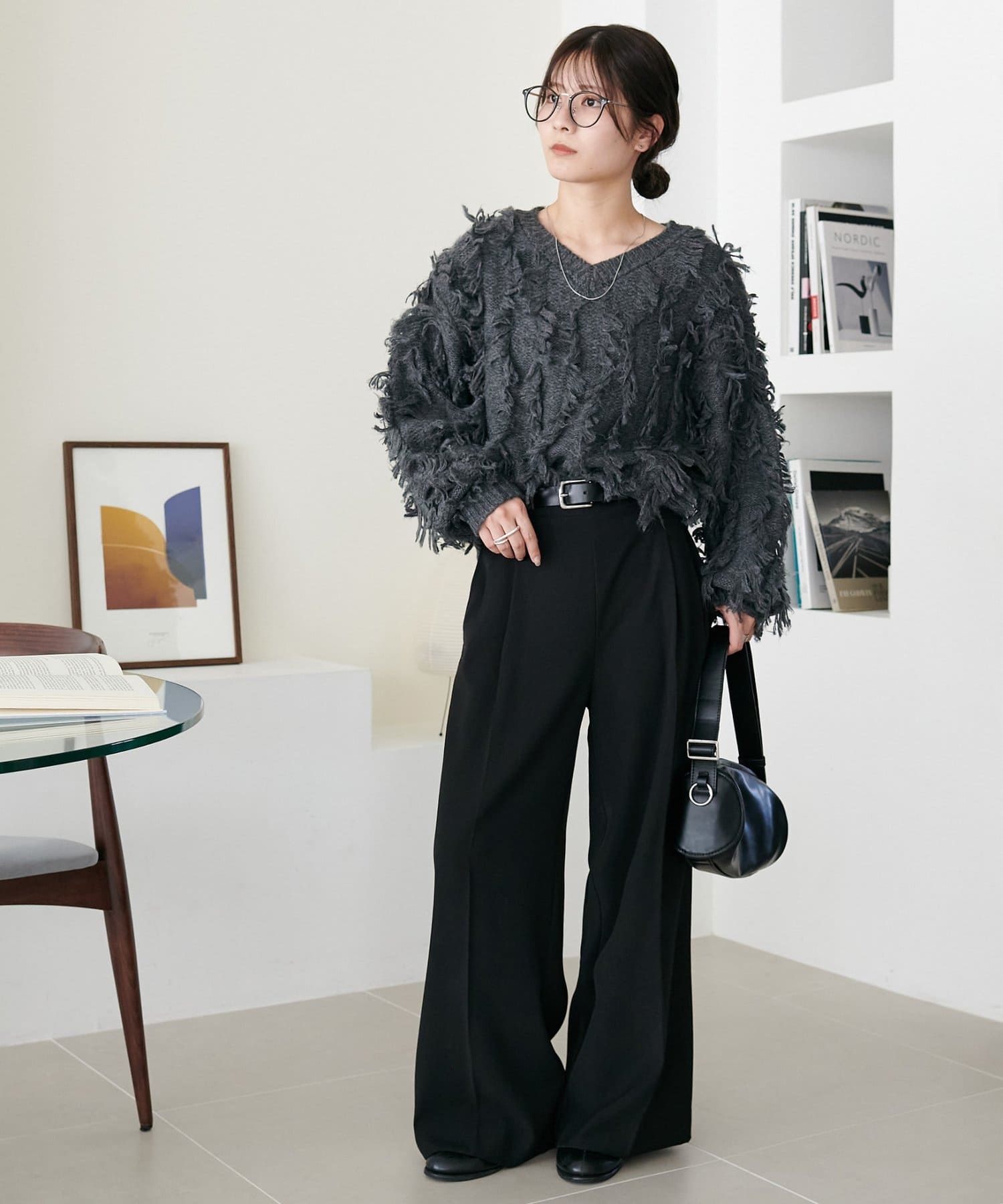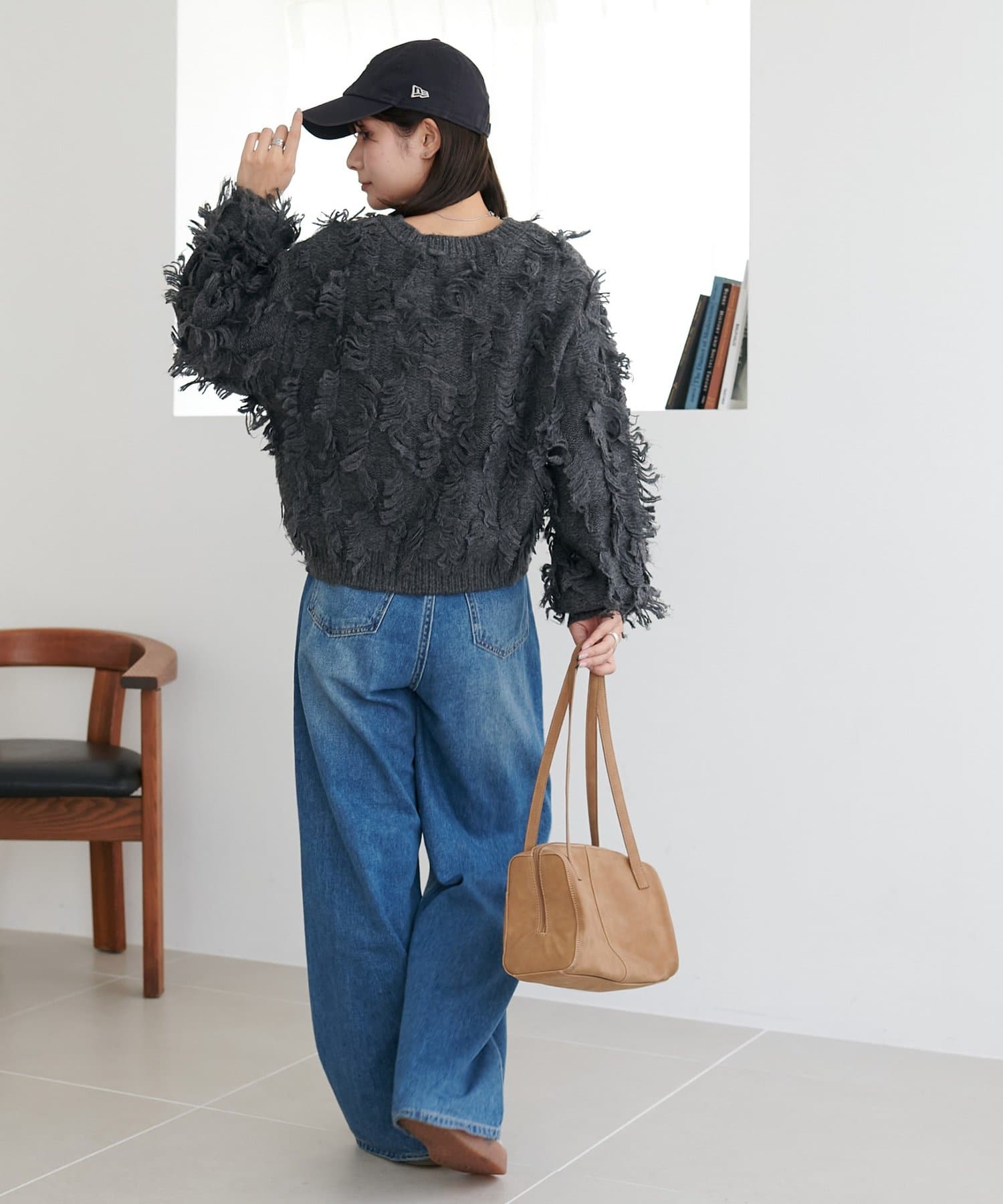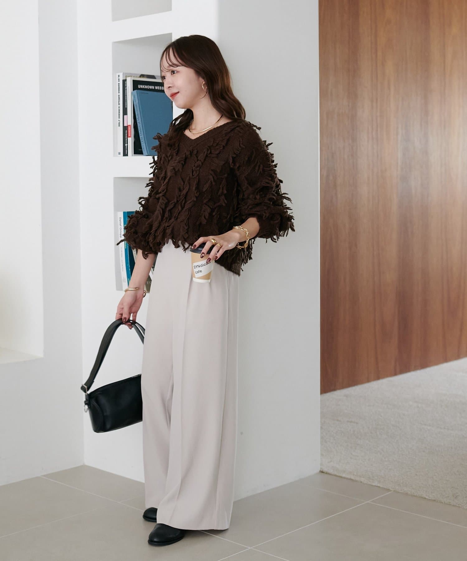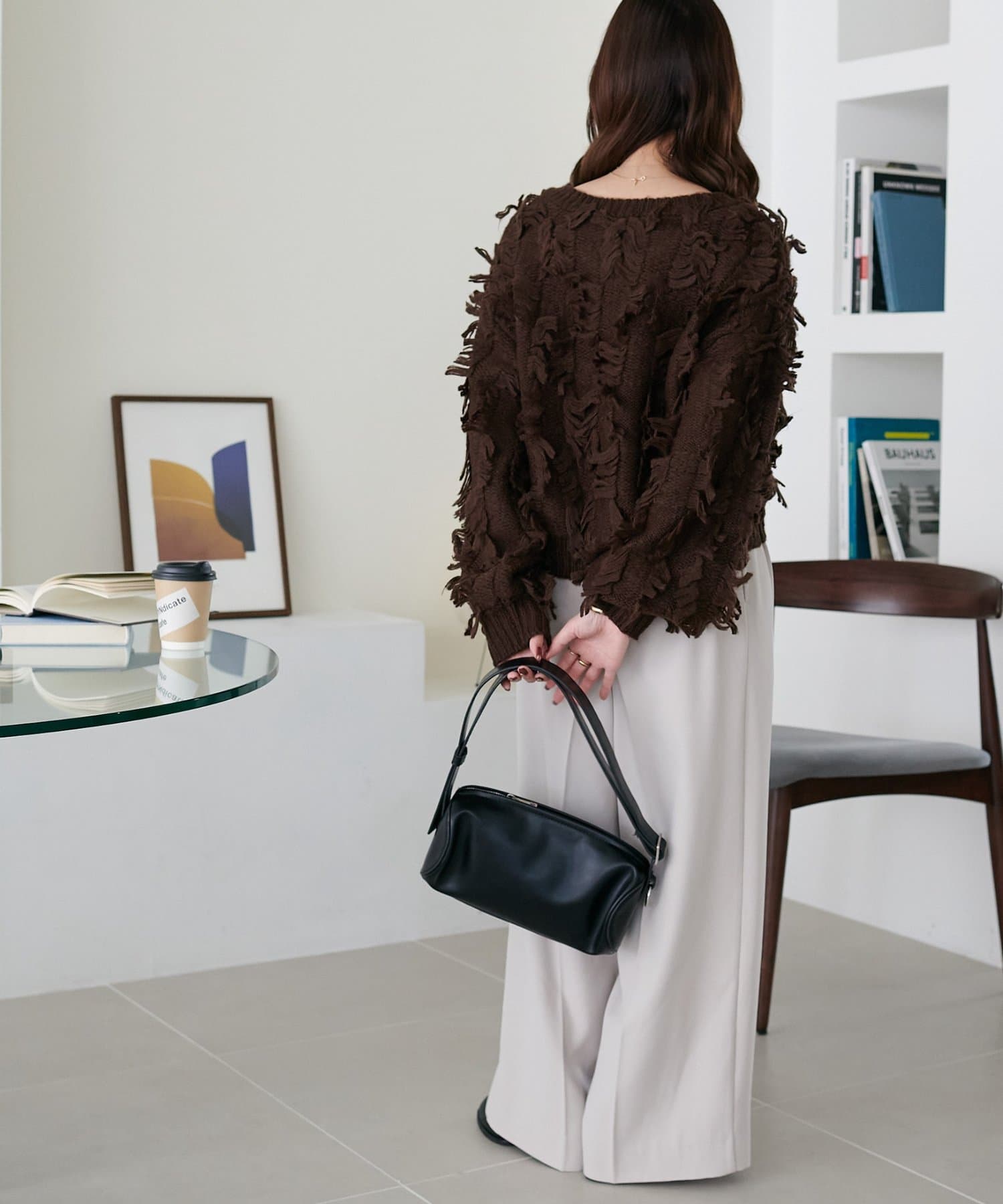 立体的で動きのあるフリンジがシンプルなアイテムと合わせても、スタイリングをぐっと華やかに高めてくれます。
