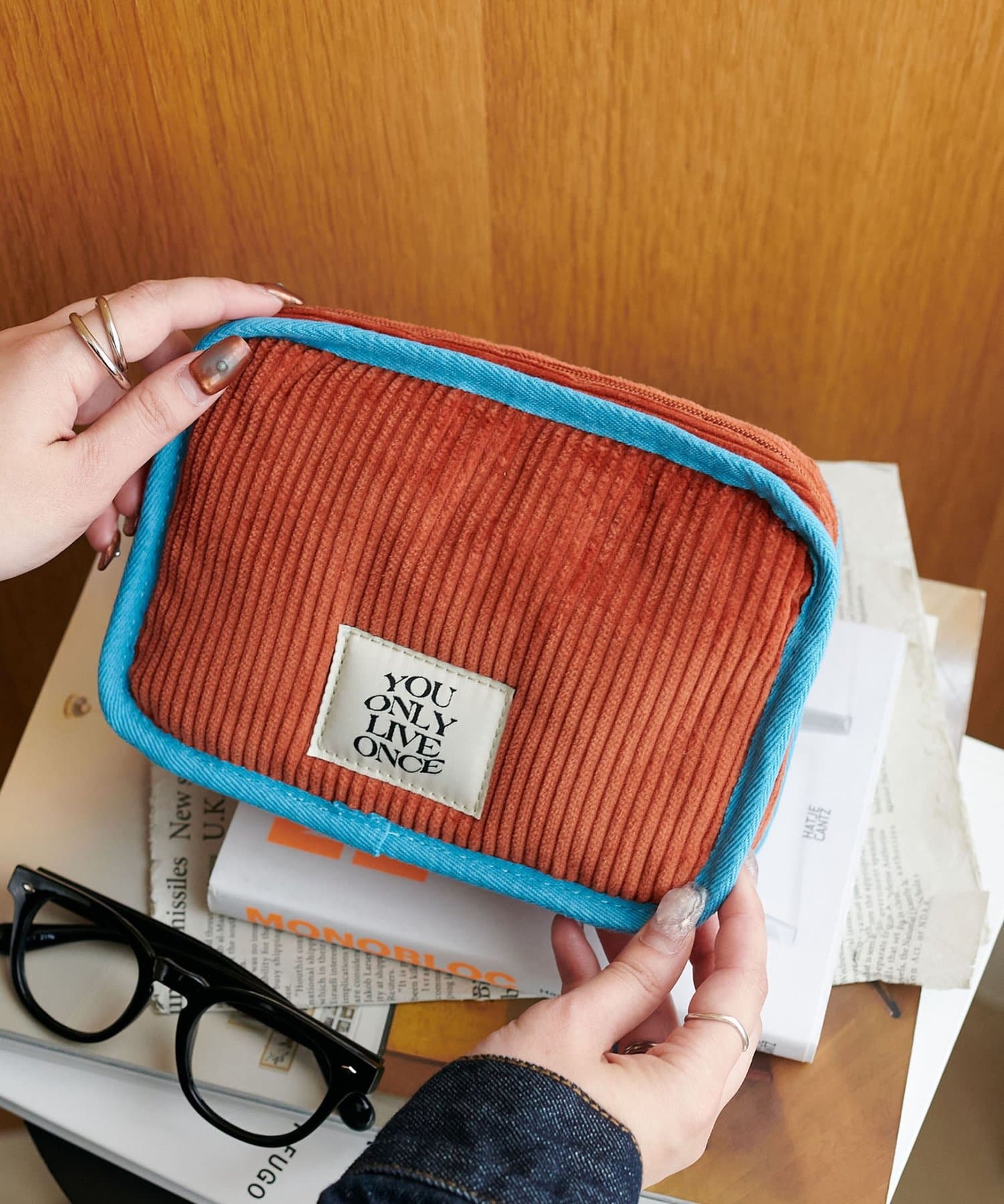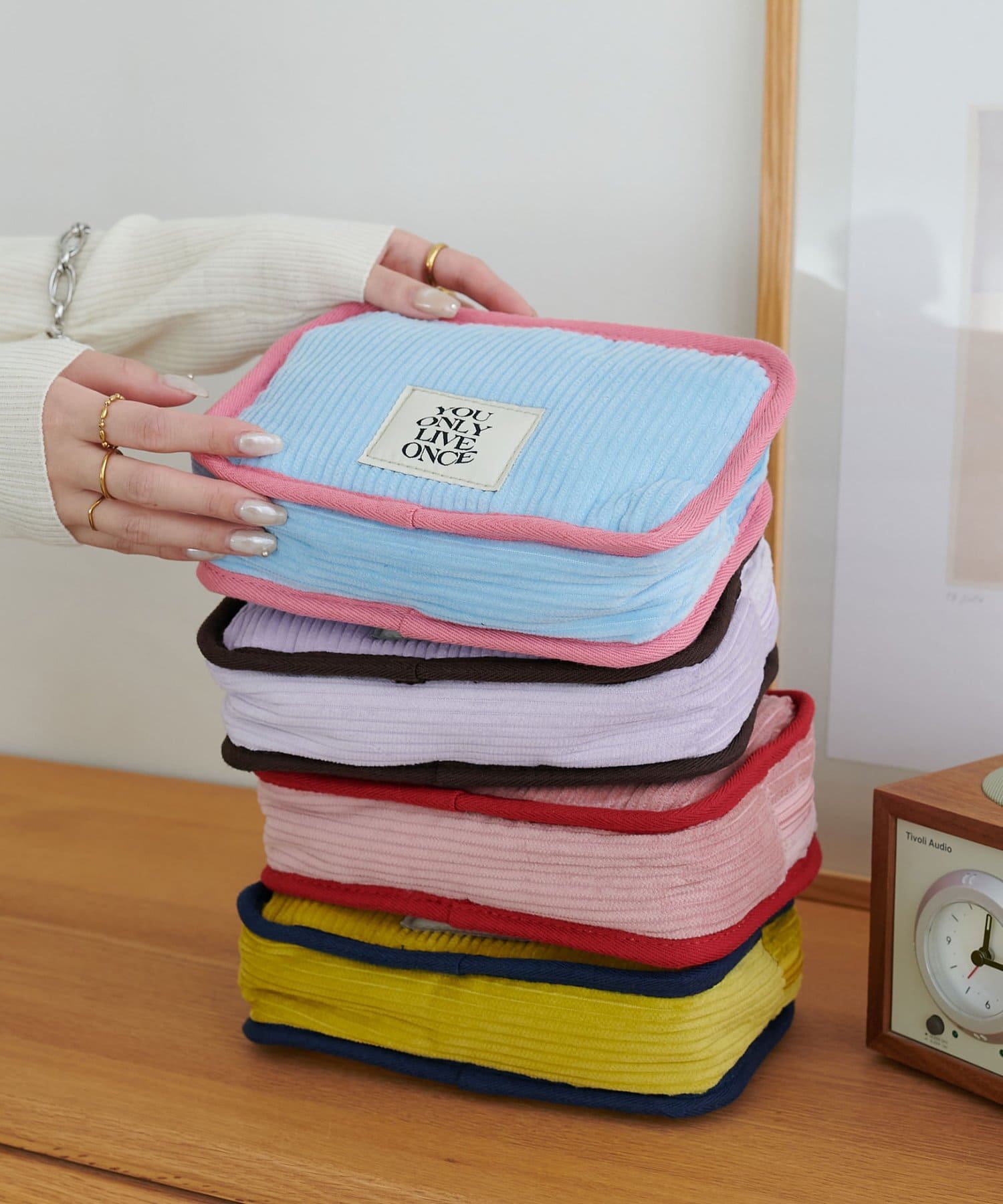 コーデュロイ素材になったことでガラッと雰囲気も変わり、より厚地になったことで収納するアイテムをしっかり守ってくれます。