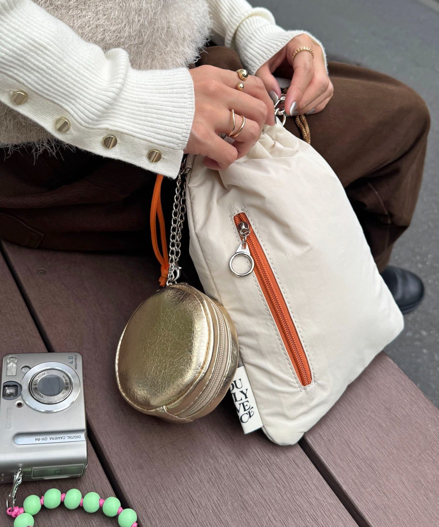 また、マチが3.5㎝としっかりあるので、ワイヤレスイヤフォンやリップ、アクセサリーなど見た目以上に入ります◎