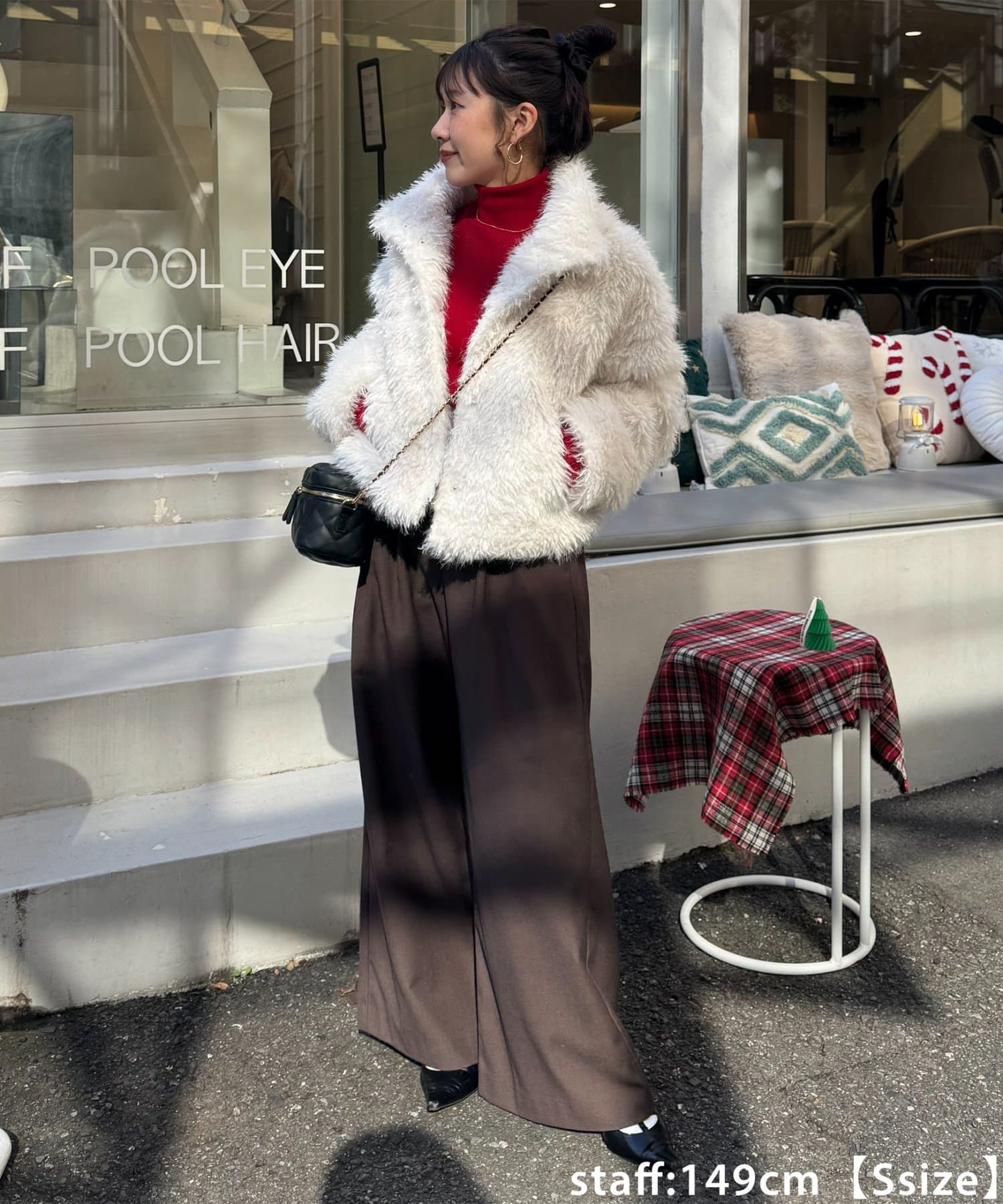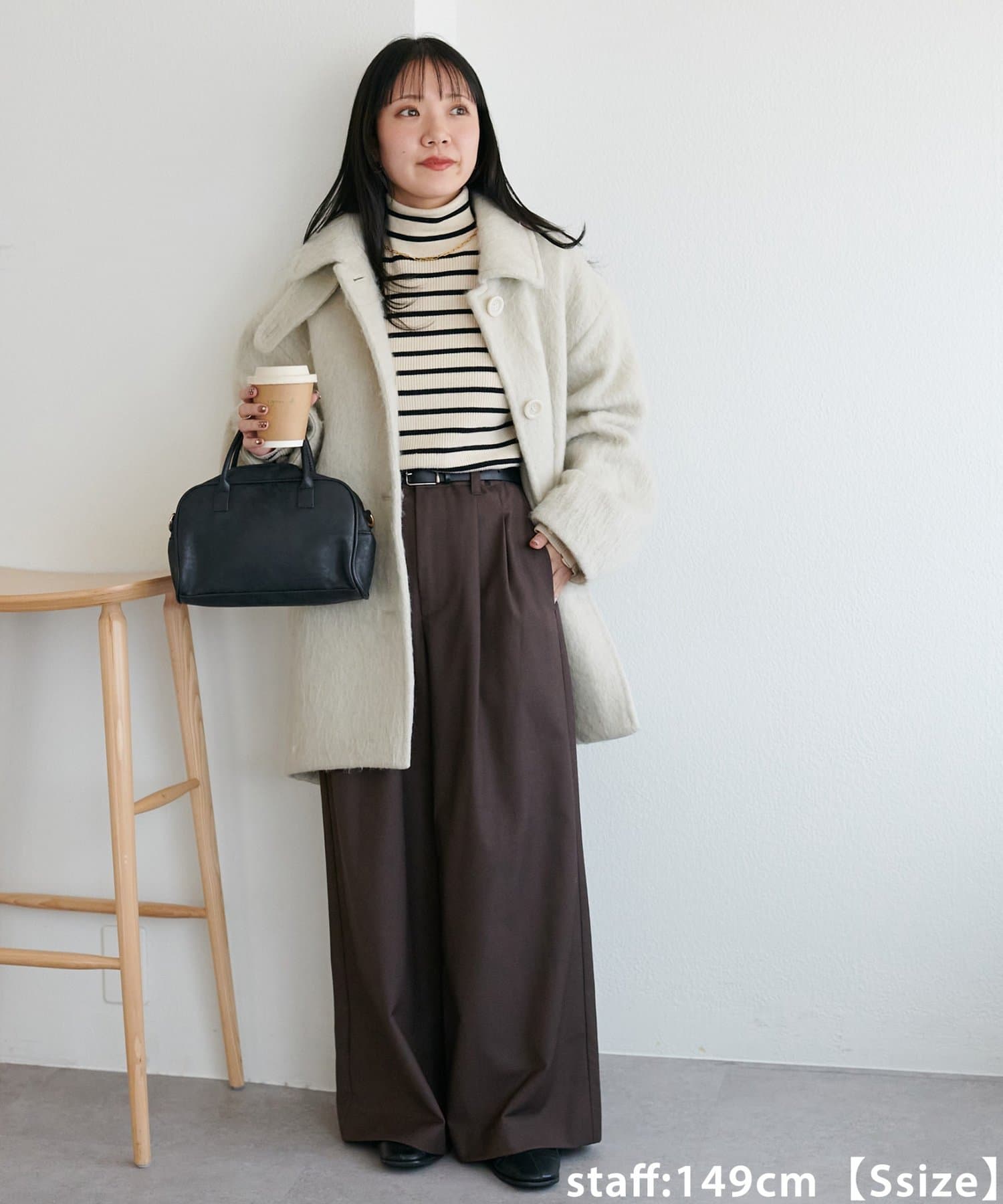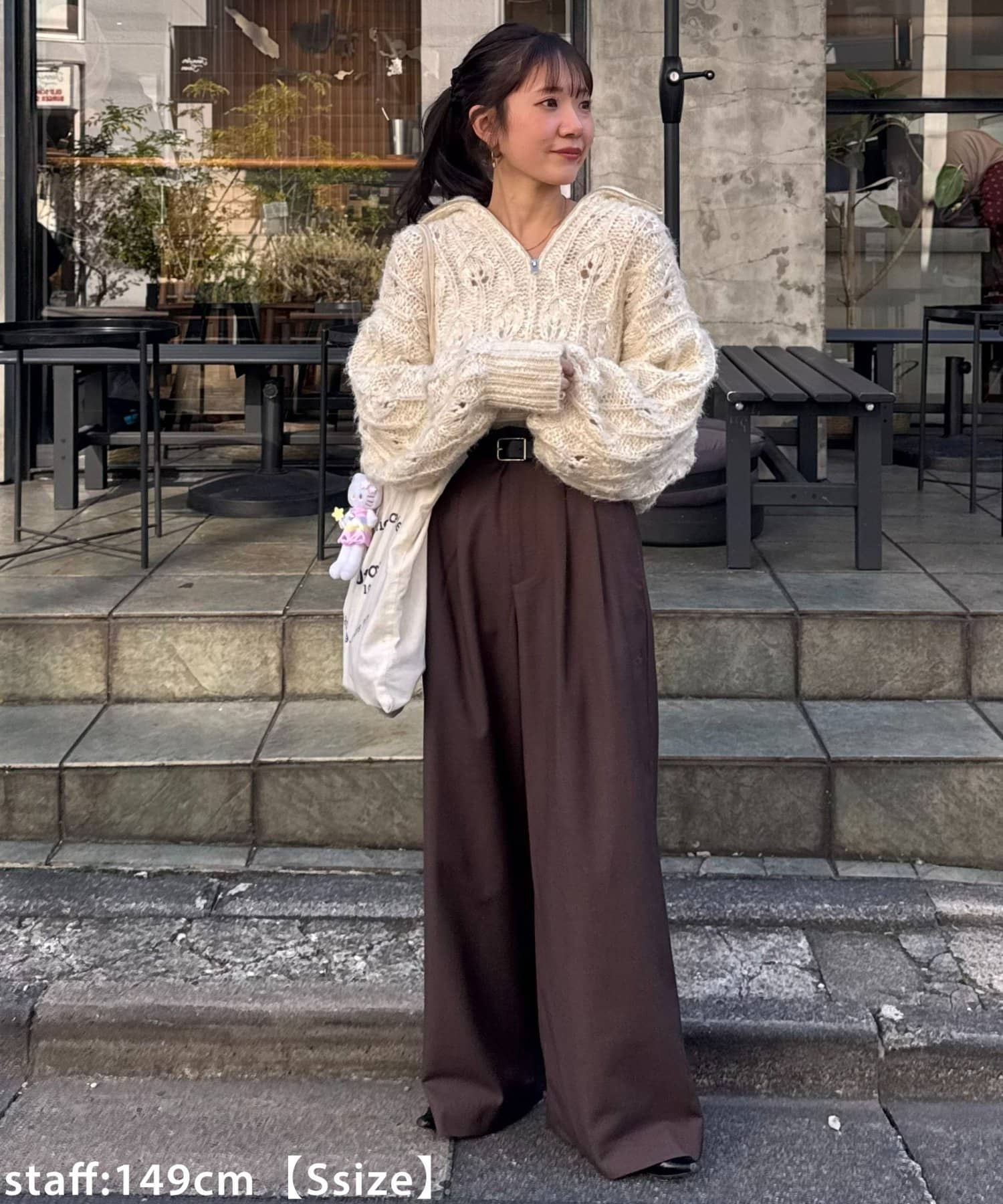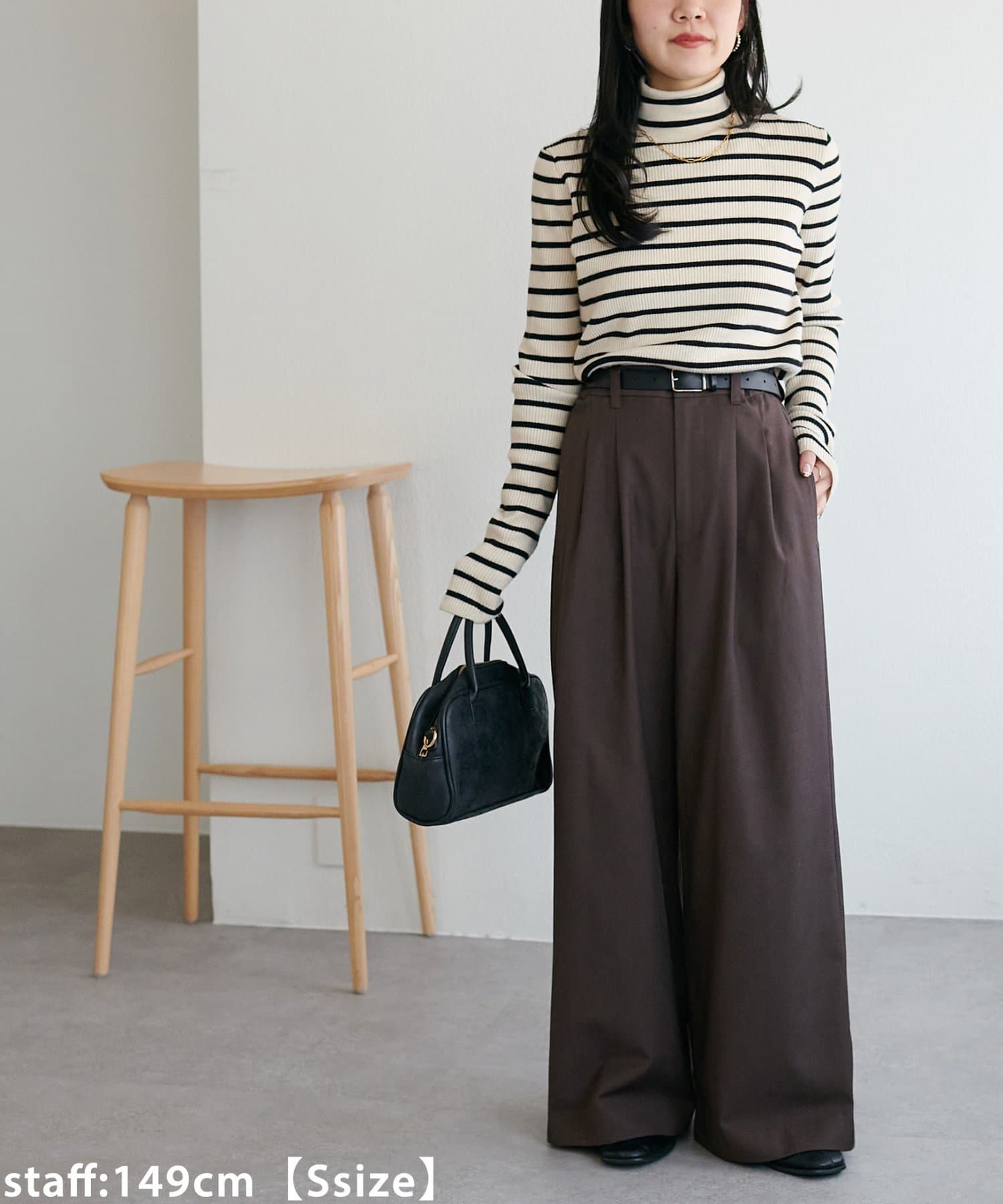 149cmスタッフ(Sサイズ):長めの丈感なので、ハイウエストで着ます。ワイドシルエットでスラッと見えるのが嬉しい〇