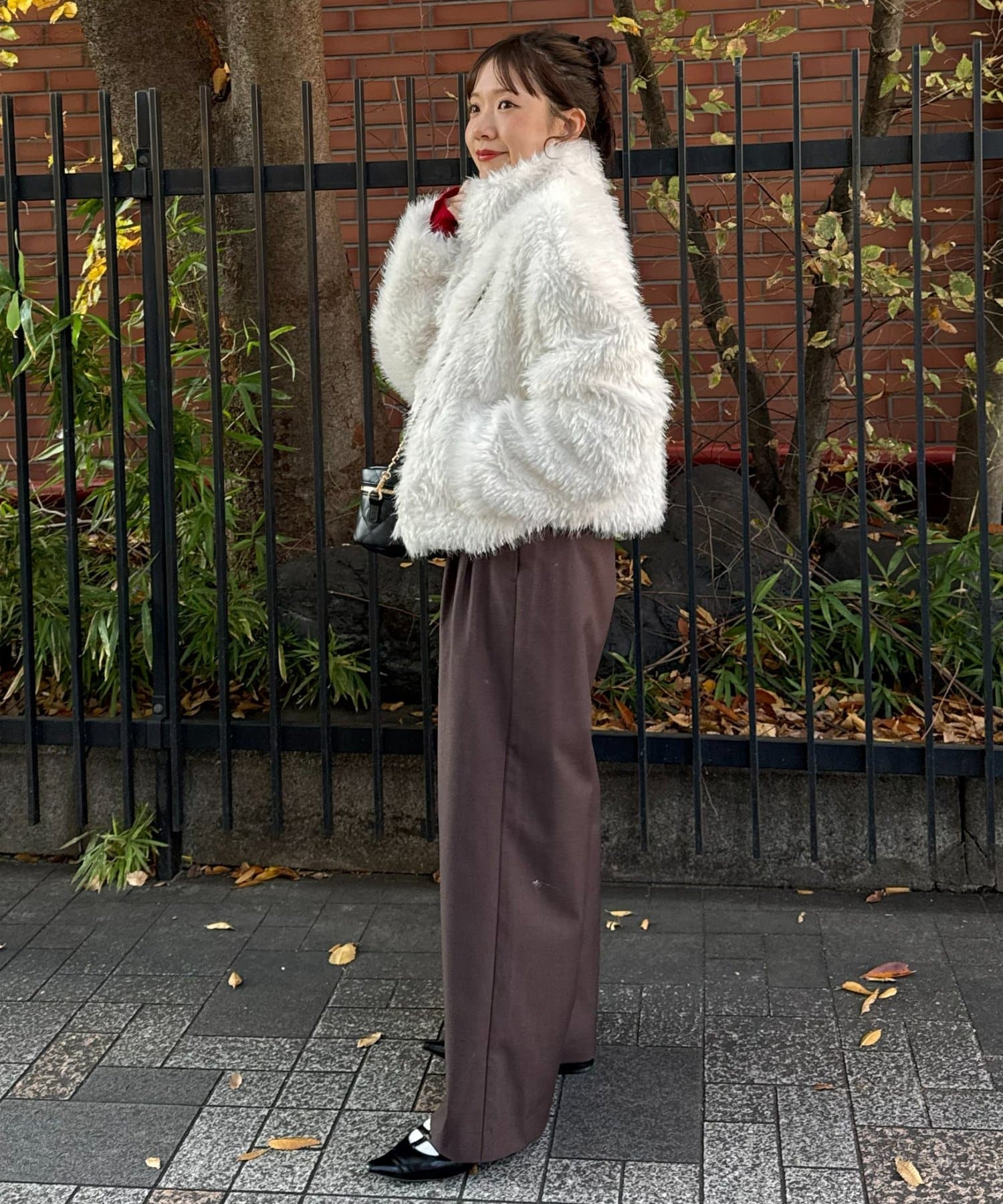 デニムではないので、ワイドパンツでもカジュアルになりすぎない!
