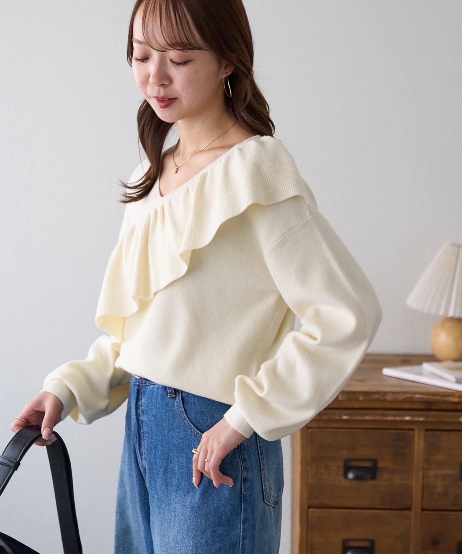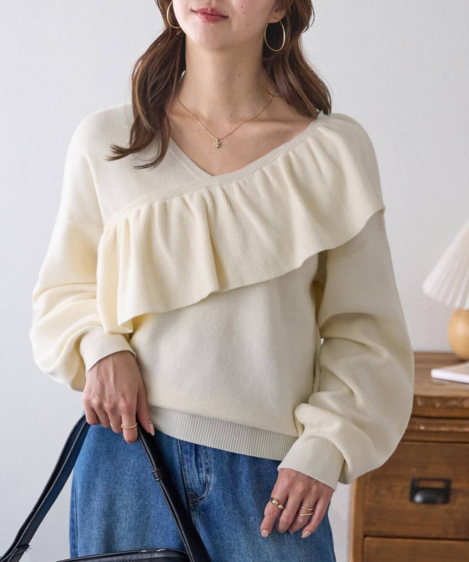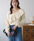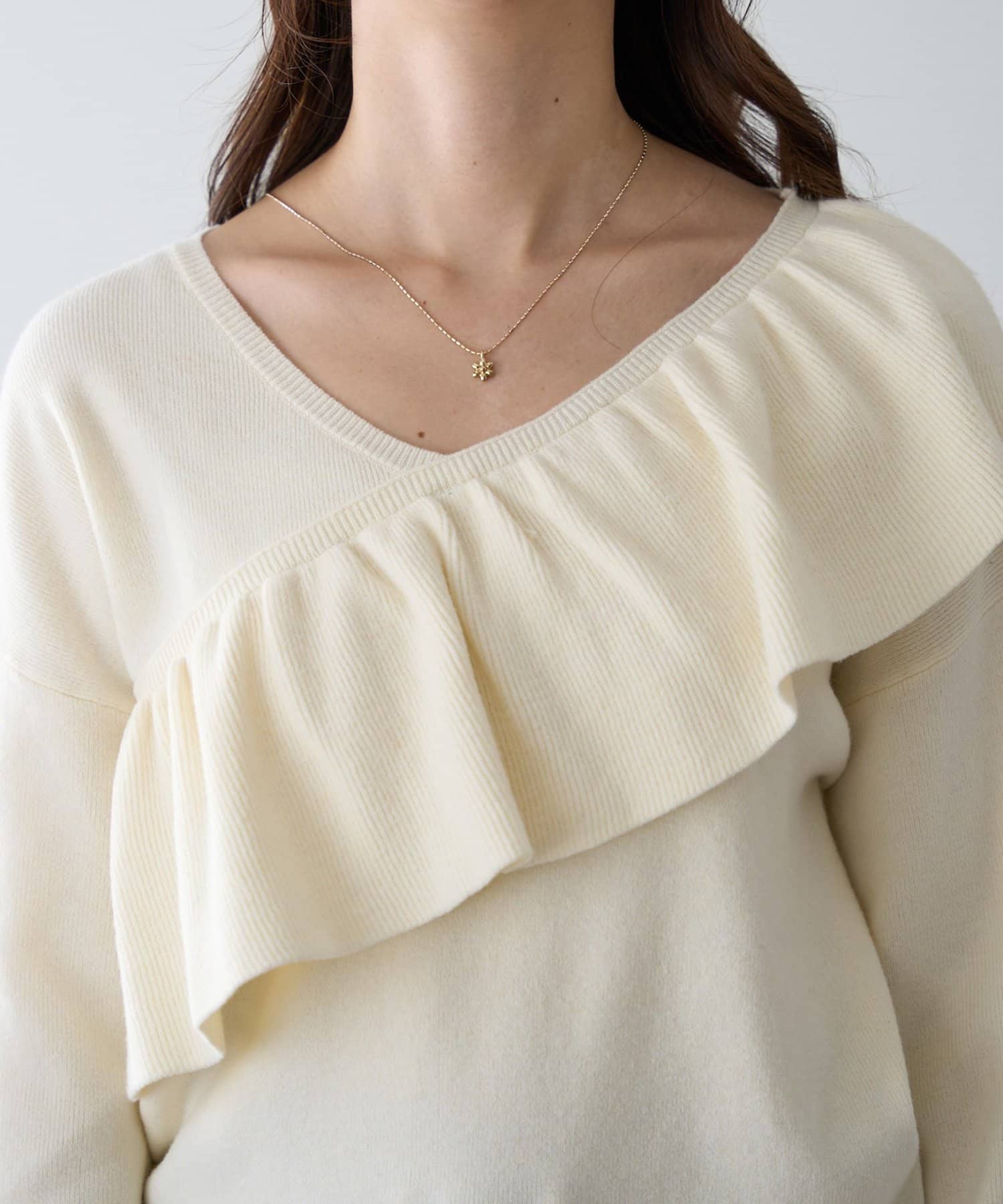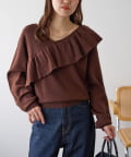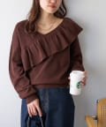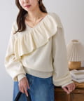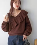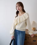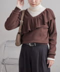 ・トレンドの大ぶりなフリルをあしらったニット。