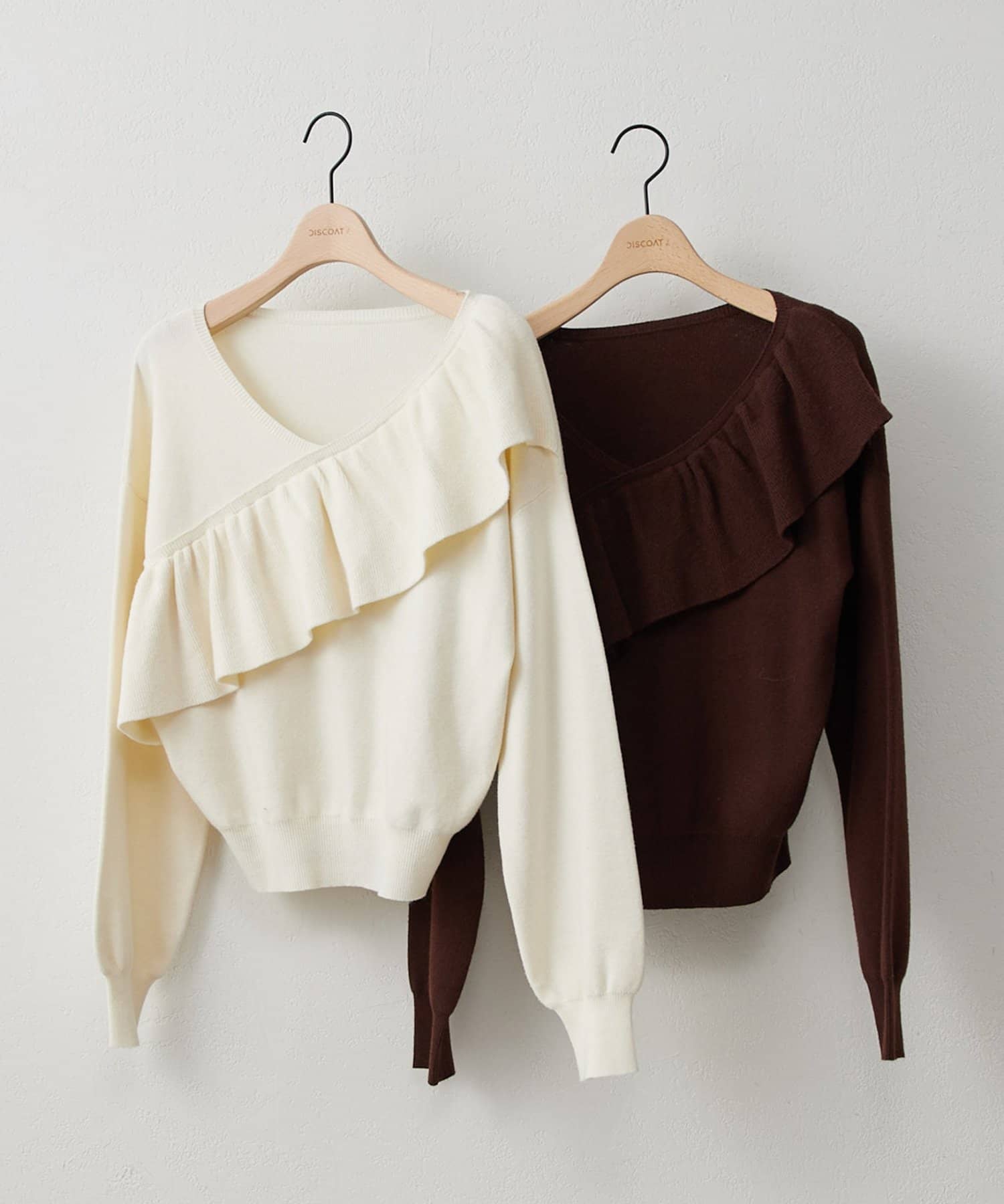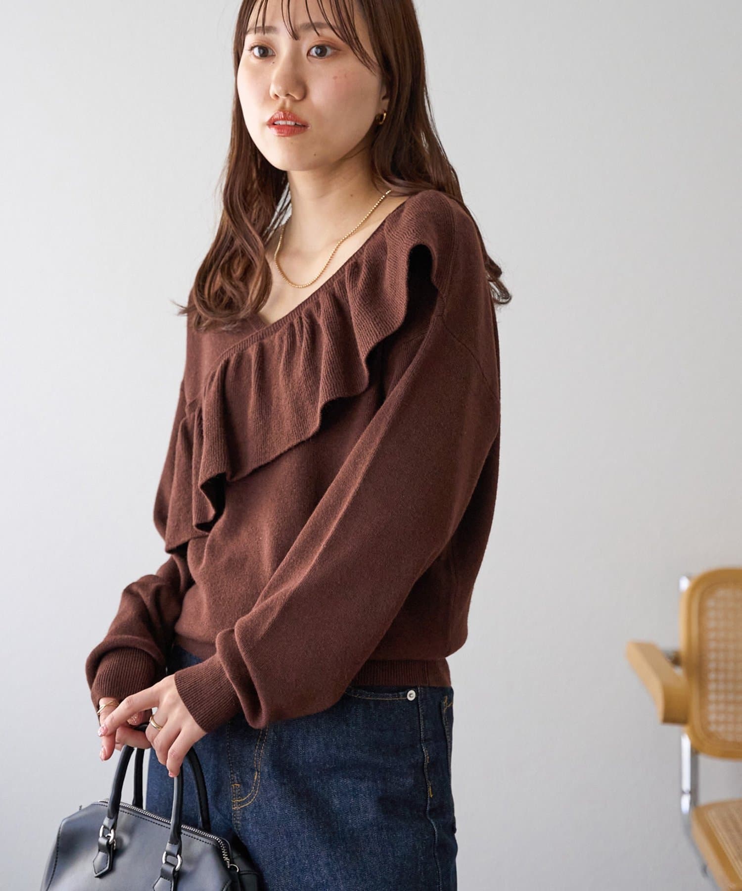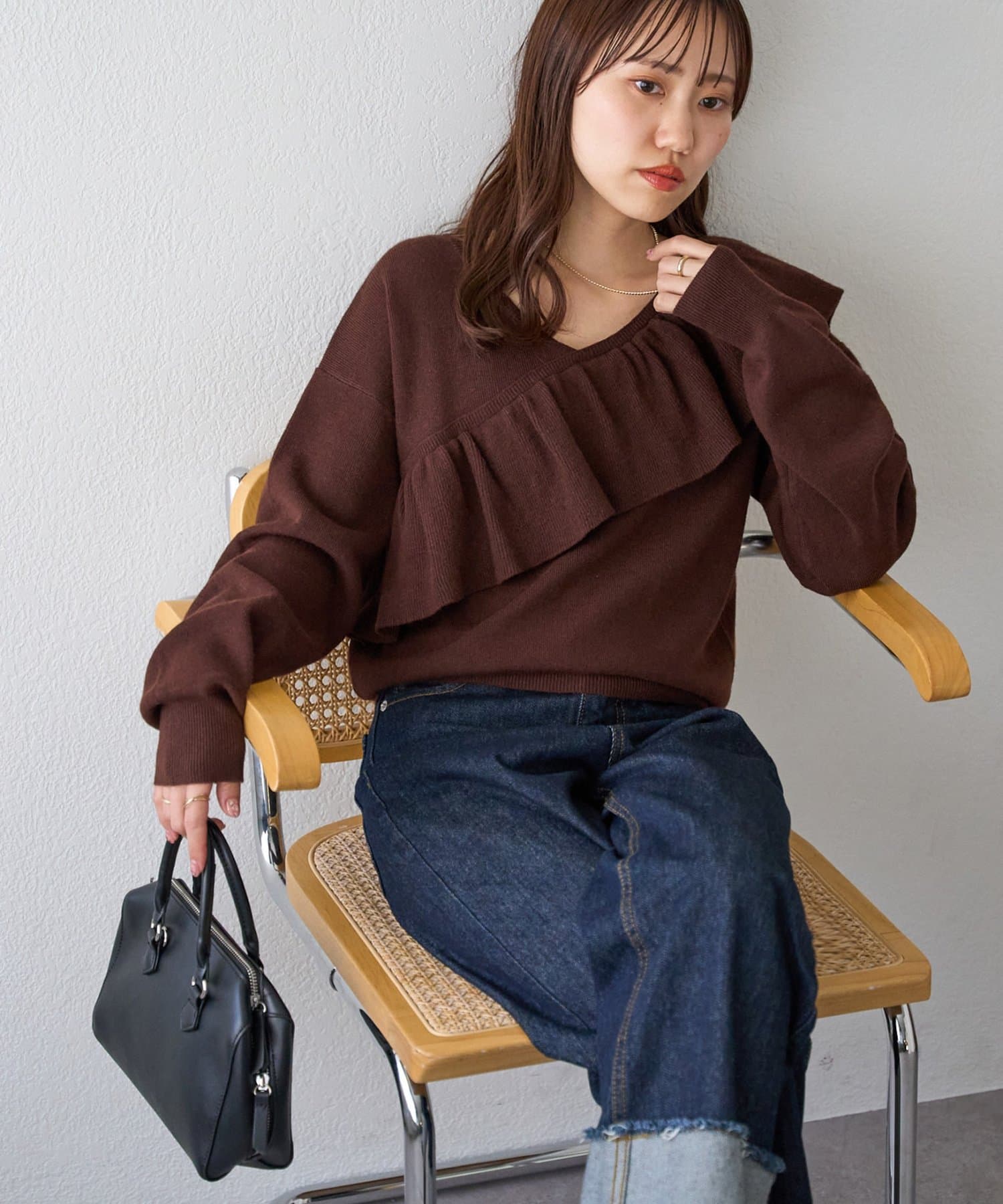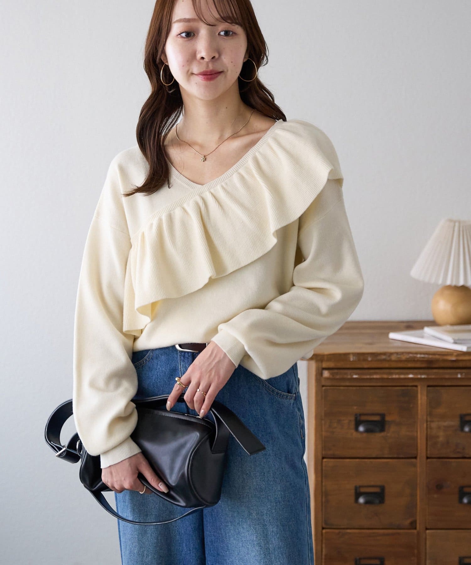 ・トレンドの大ぶりなフリルをあしらったニット。