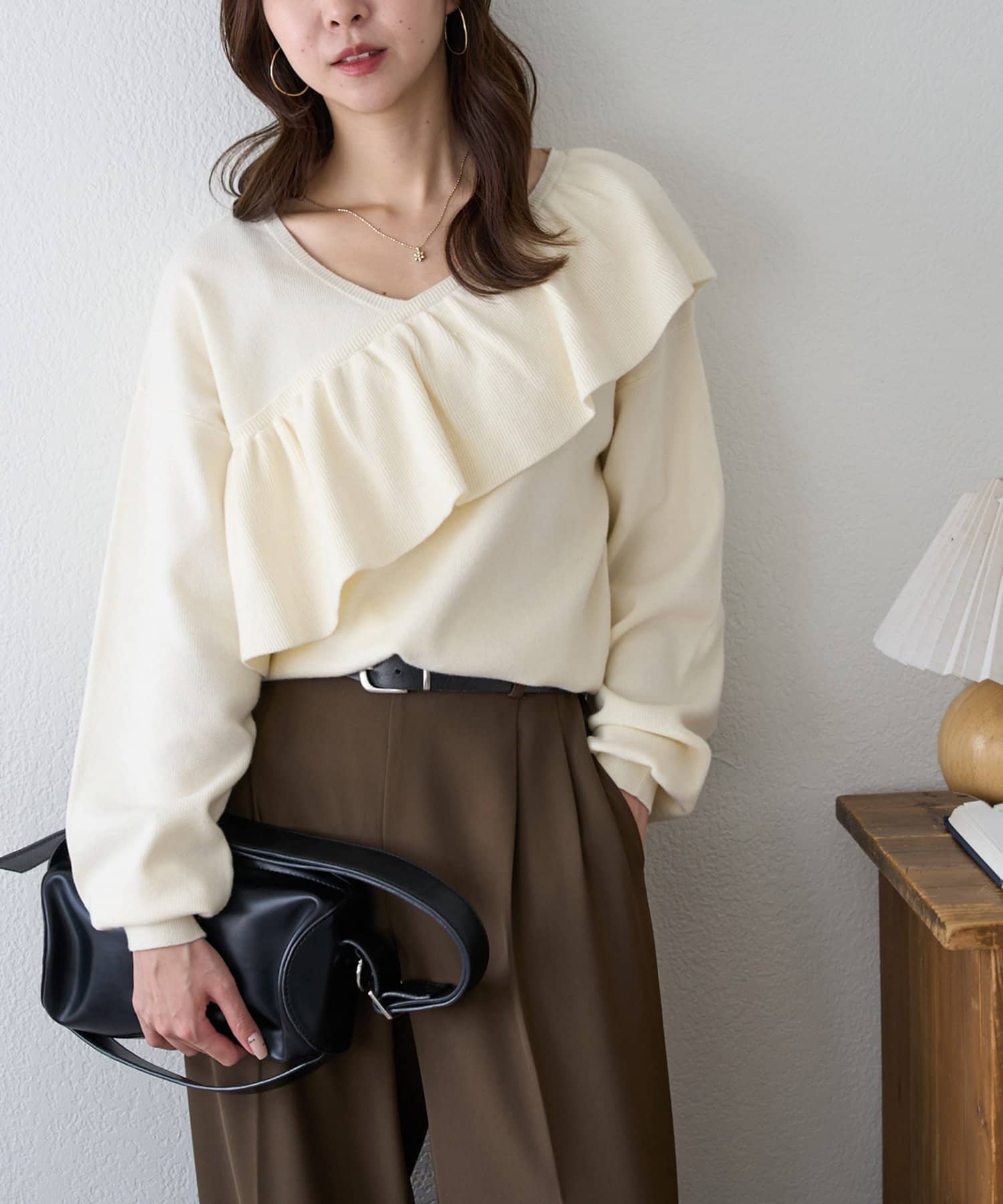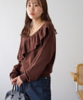 ・vネックデザインは、大ぶりのフリルがデザインの中にすっきりとしたを印象プラス◎
