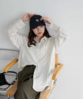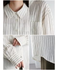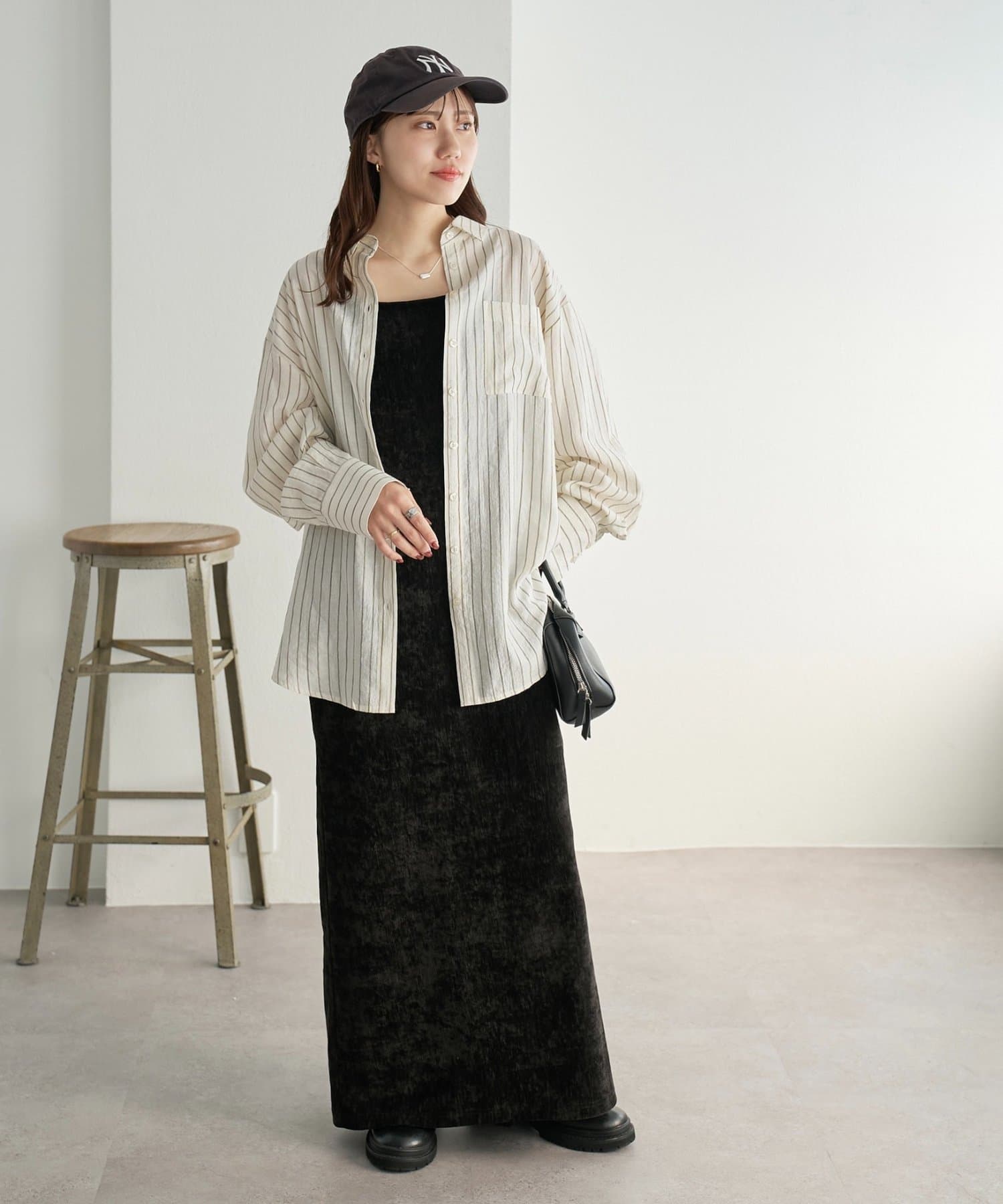 ストライプ(ホワイト)は程よくシアー感のあり、シワ感のある素材。
