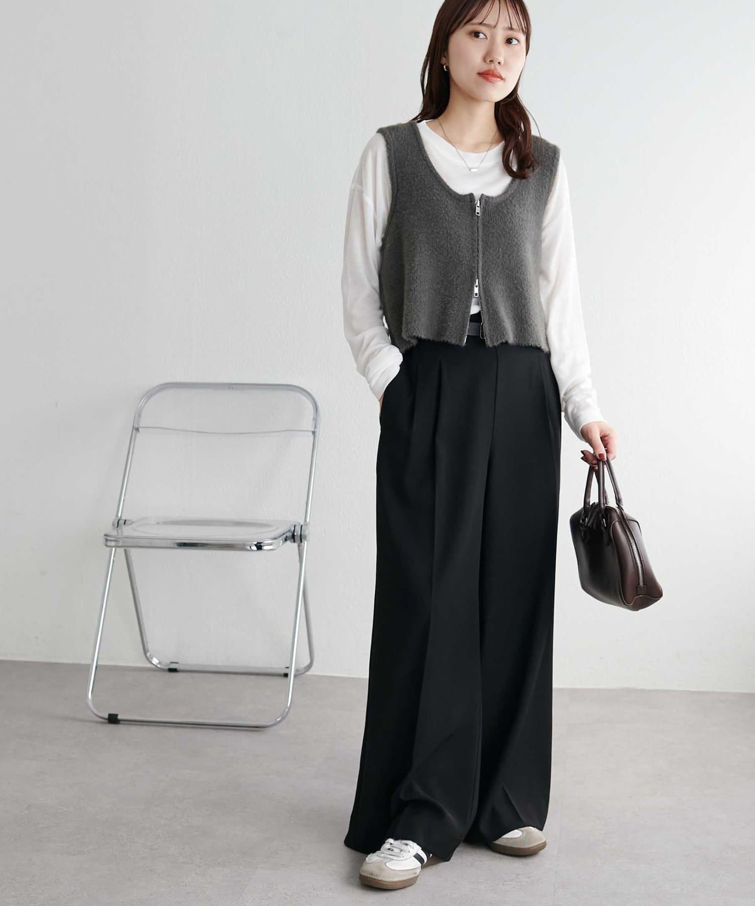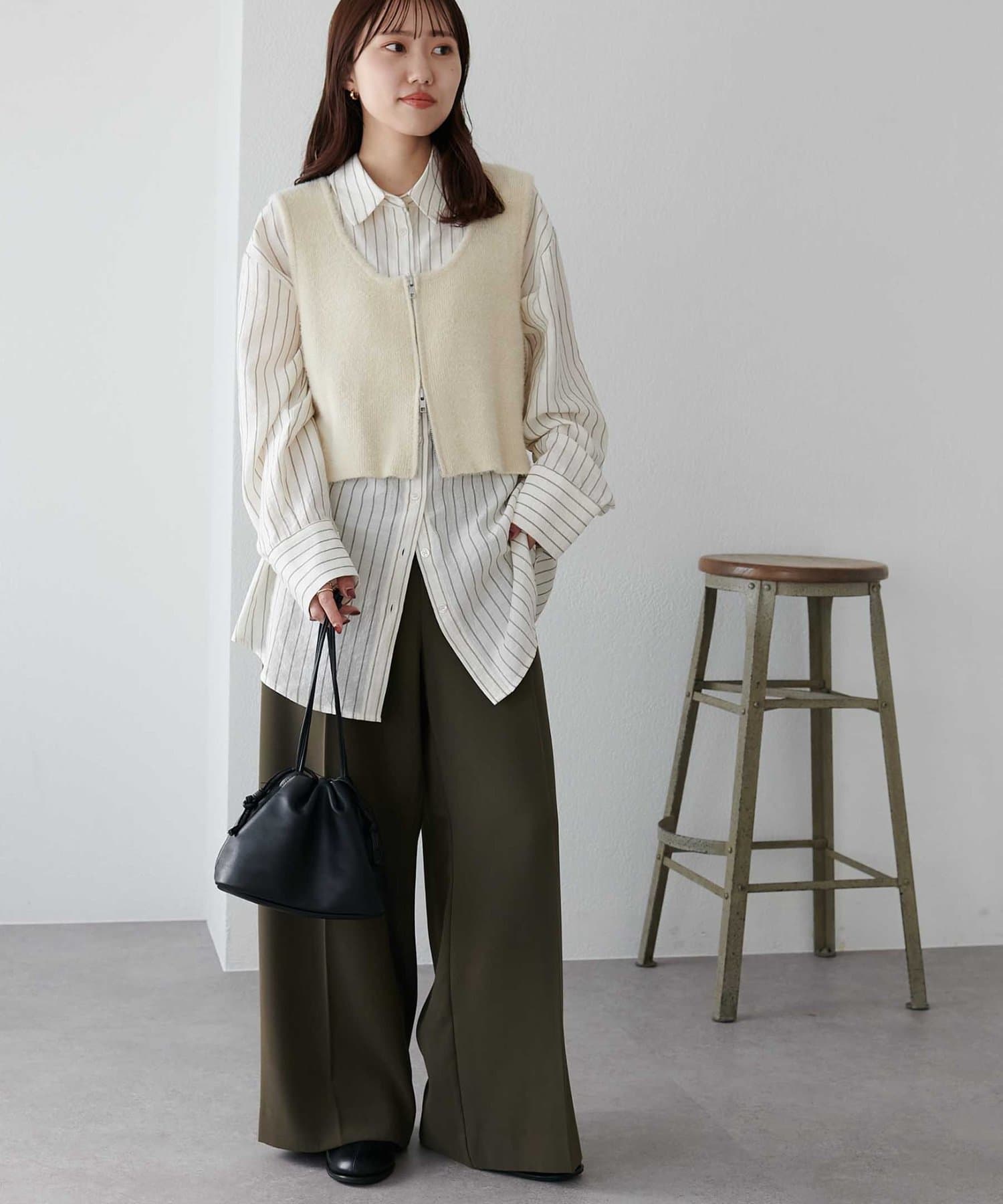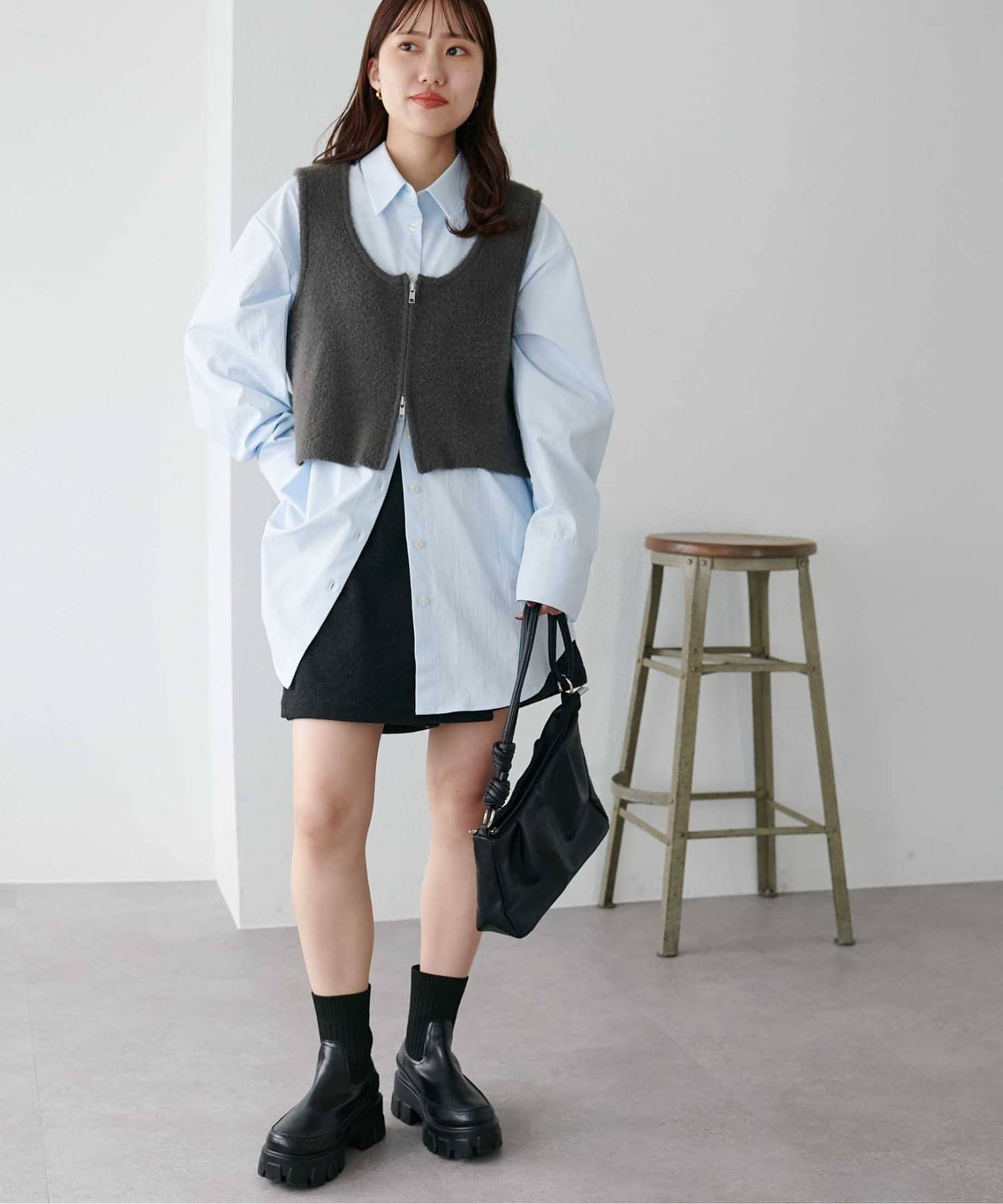 Wジップにしたことで、長めのブラウスやシャツと合わせても抜け感が出ます!