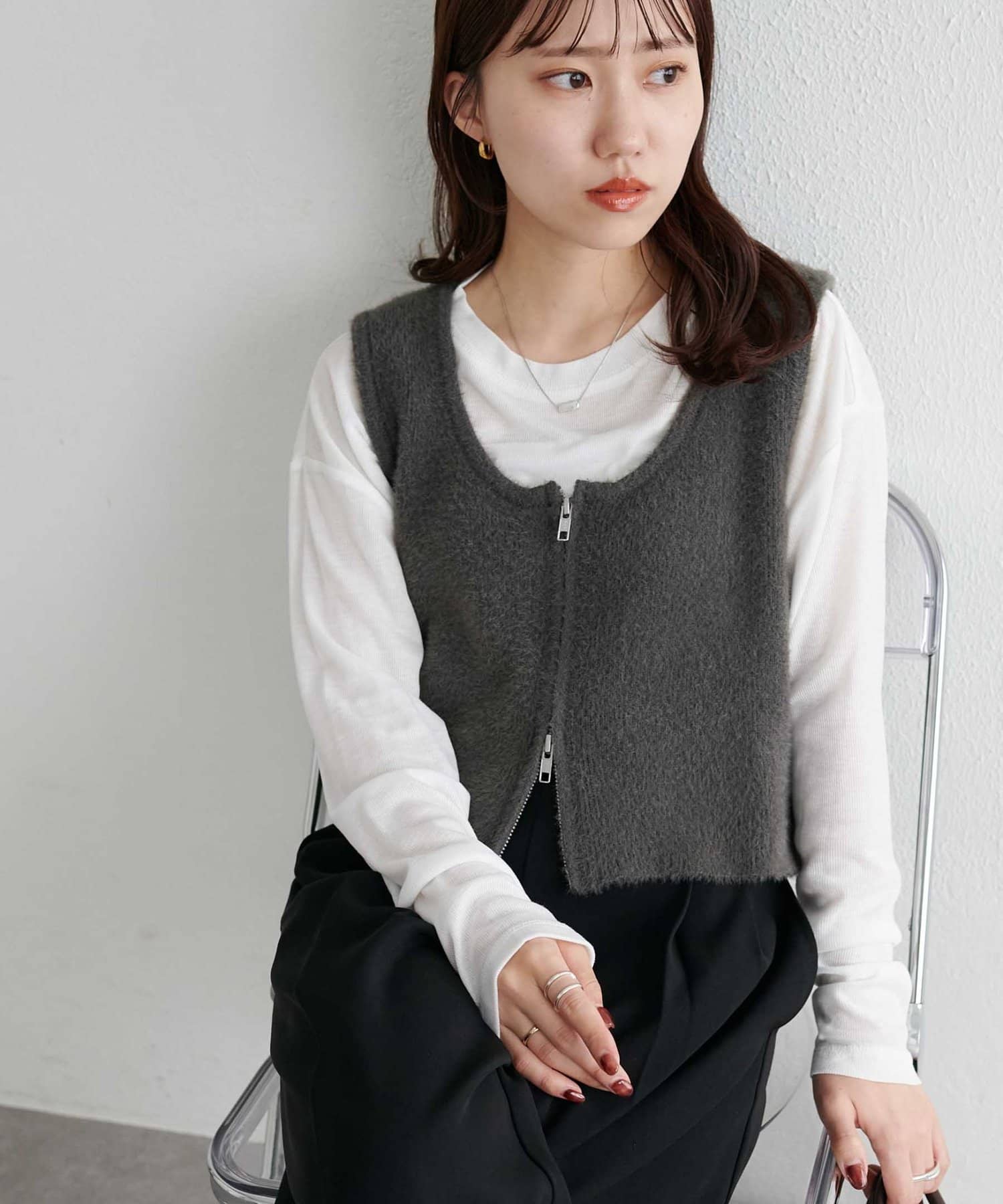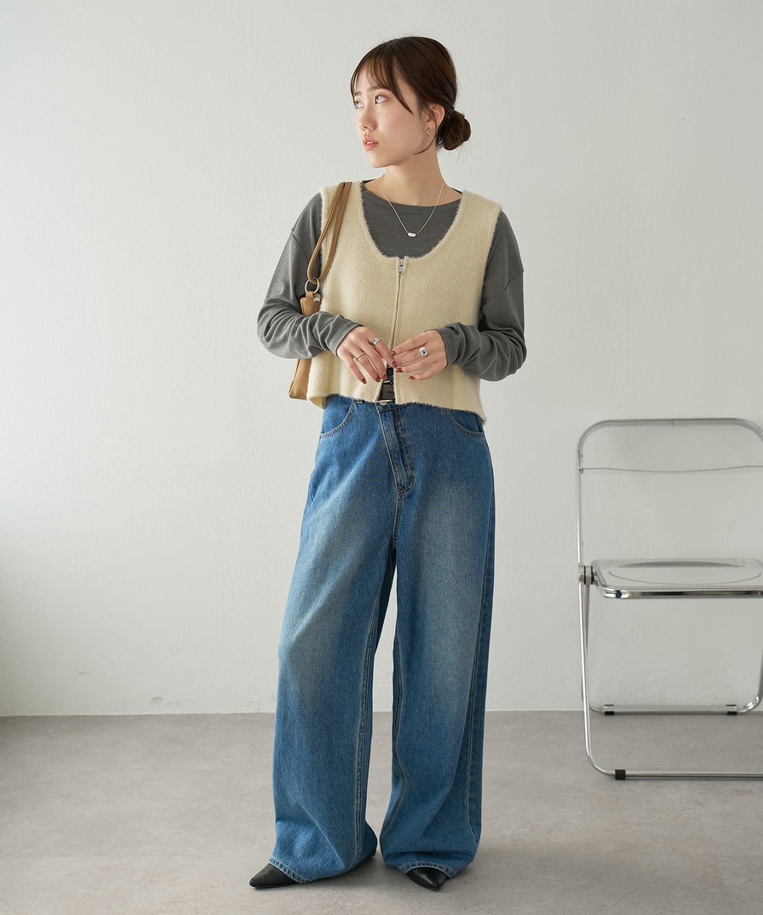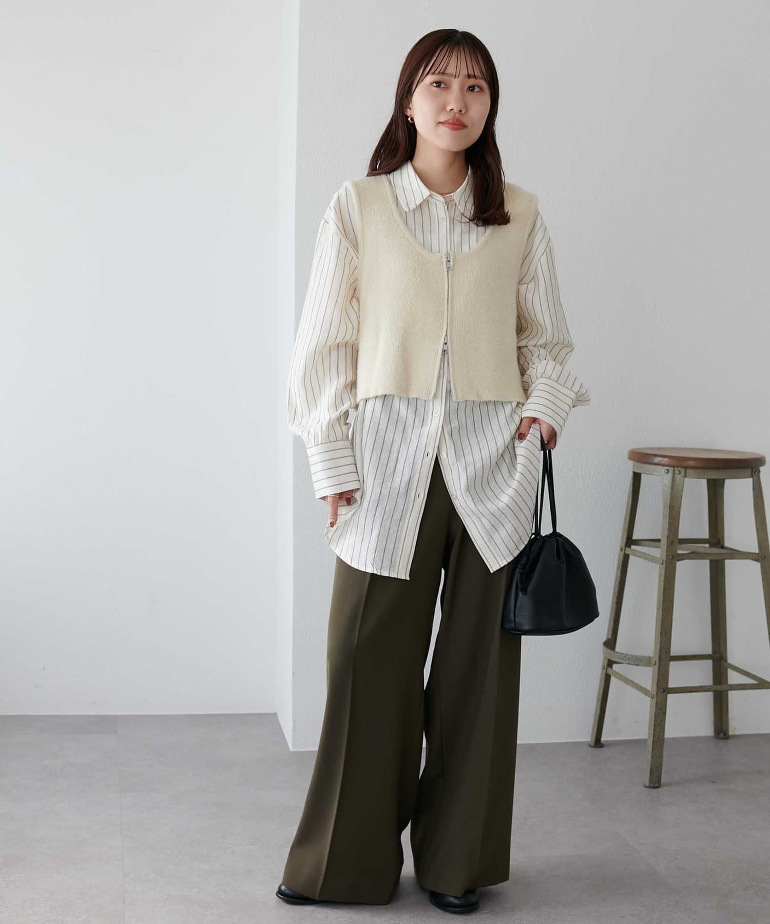 Wジップにしたことで、長めのブラウスやシャツと合わせても抜け感が出ます!