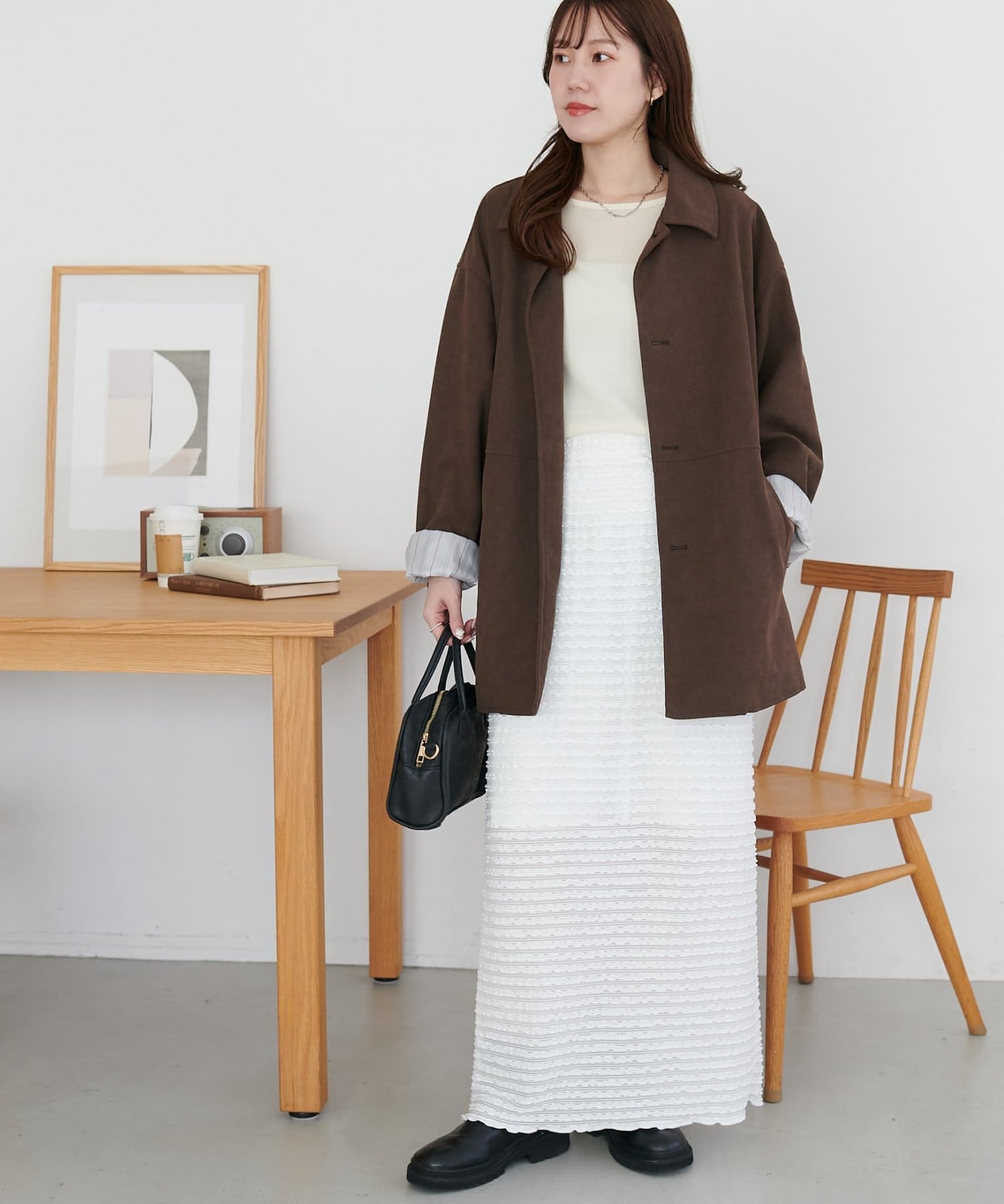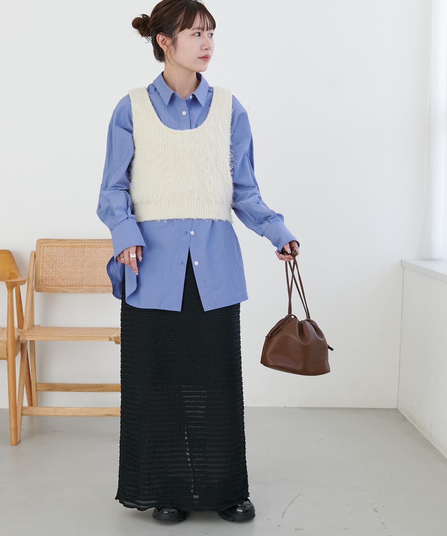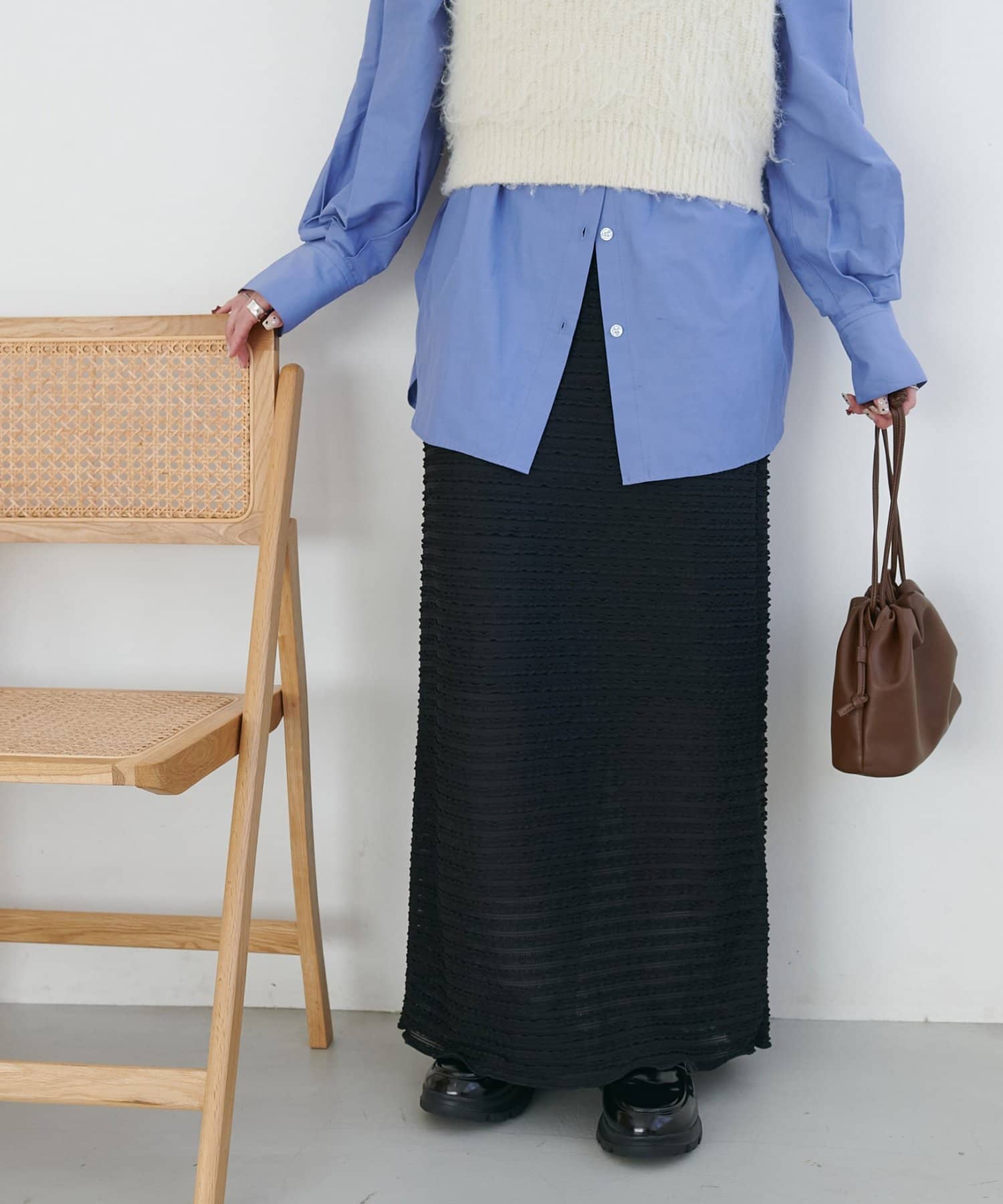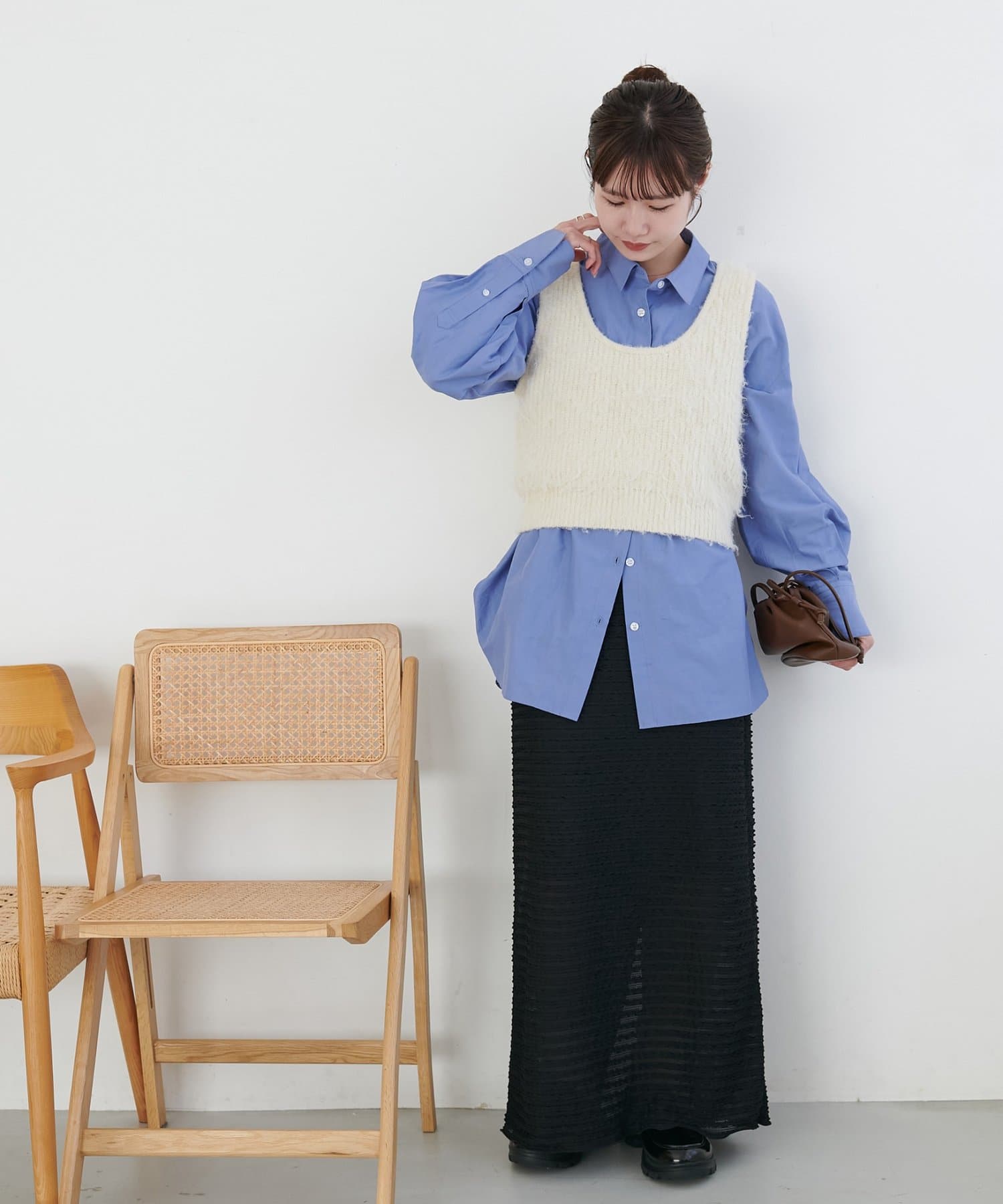 ・シャツやブラウスと合わせれば、きれいめで女性らしいスタイリングに。