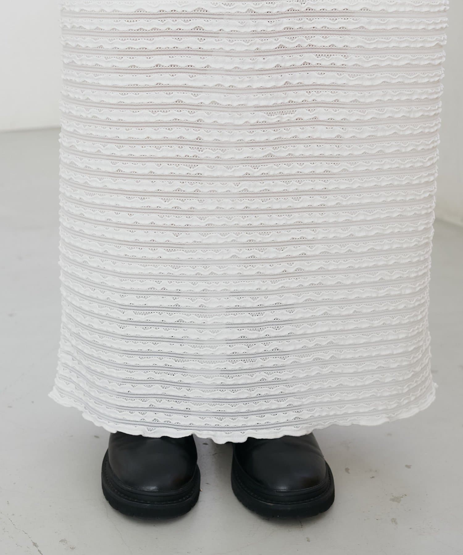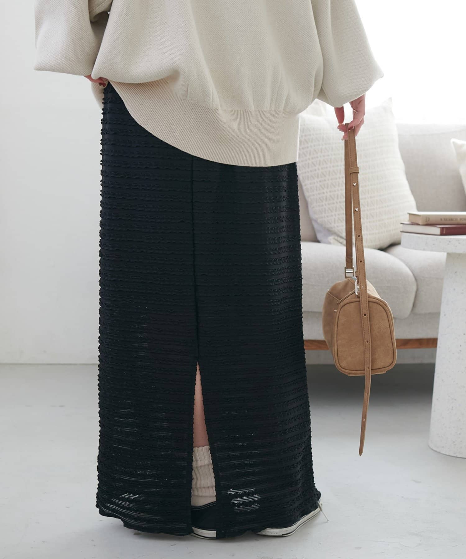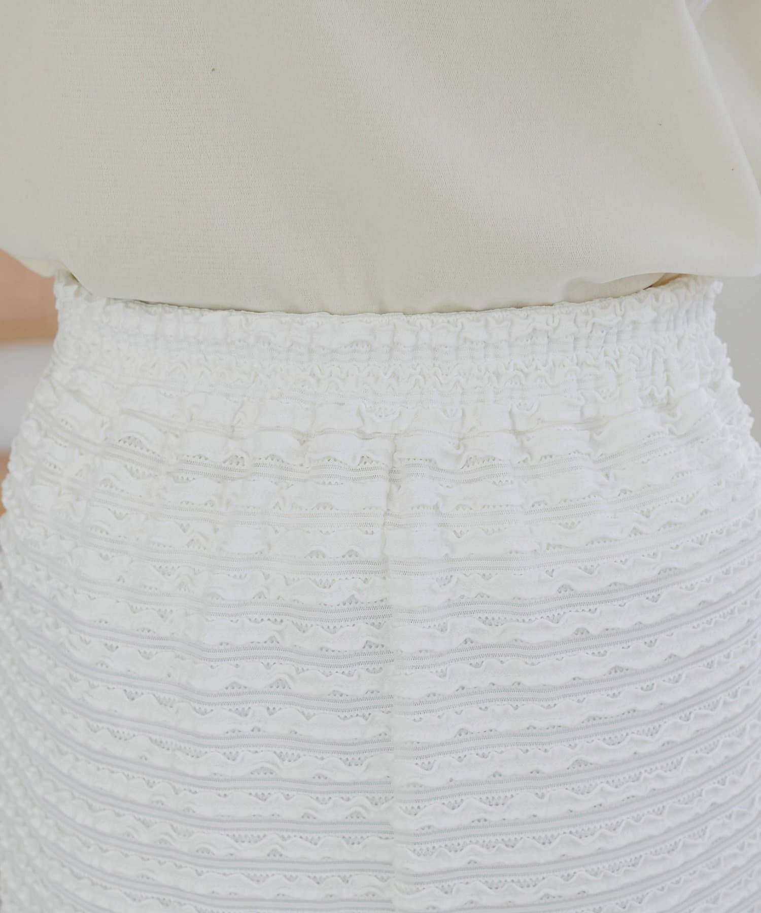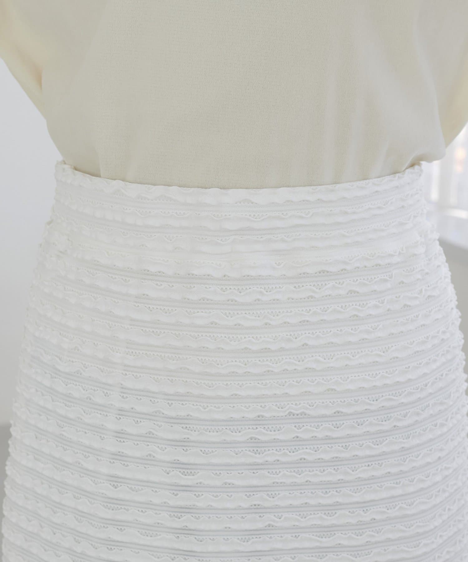 ・細かなミニフリルを全体に施した、表情豊かなナロースカート。