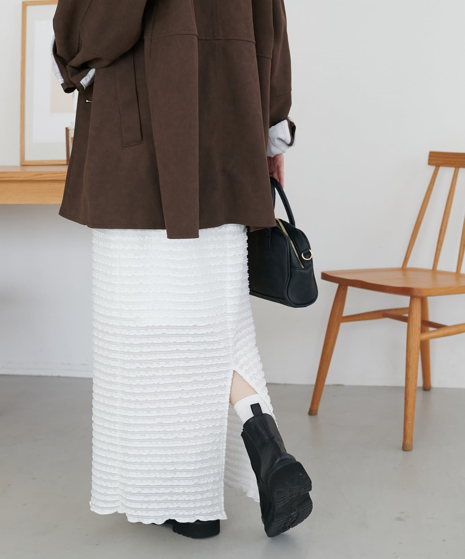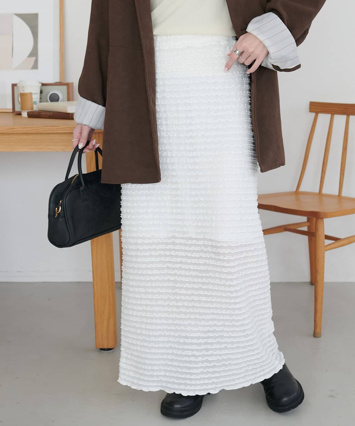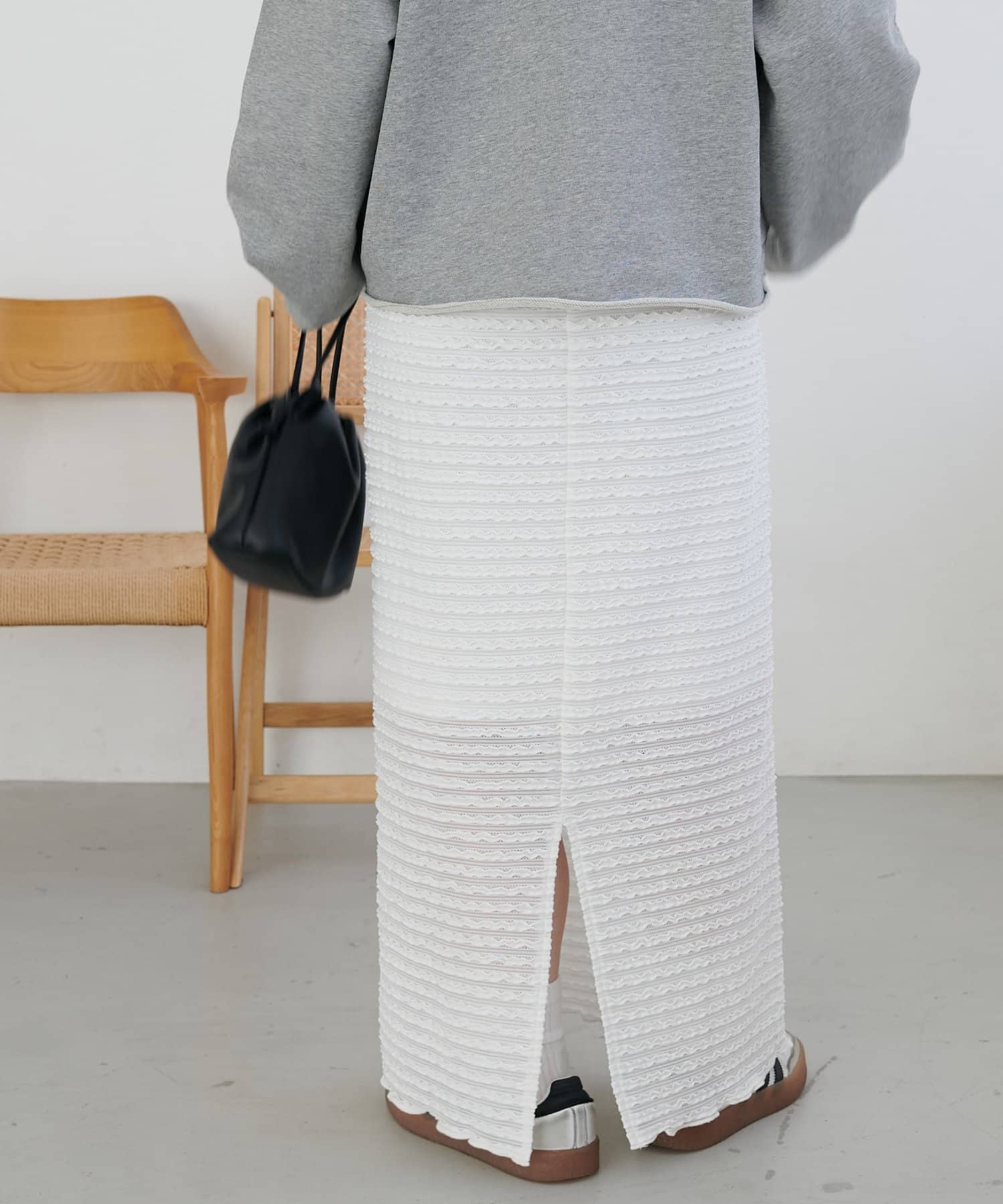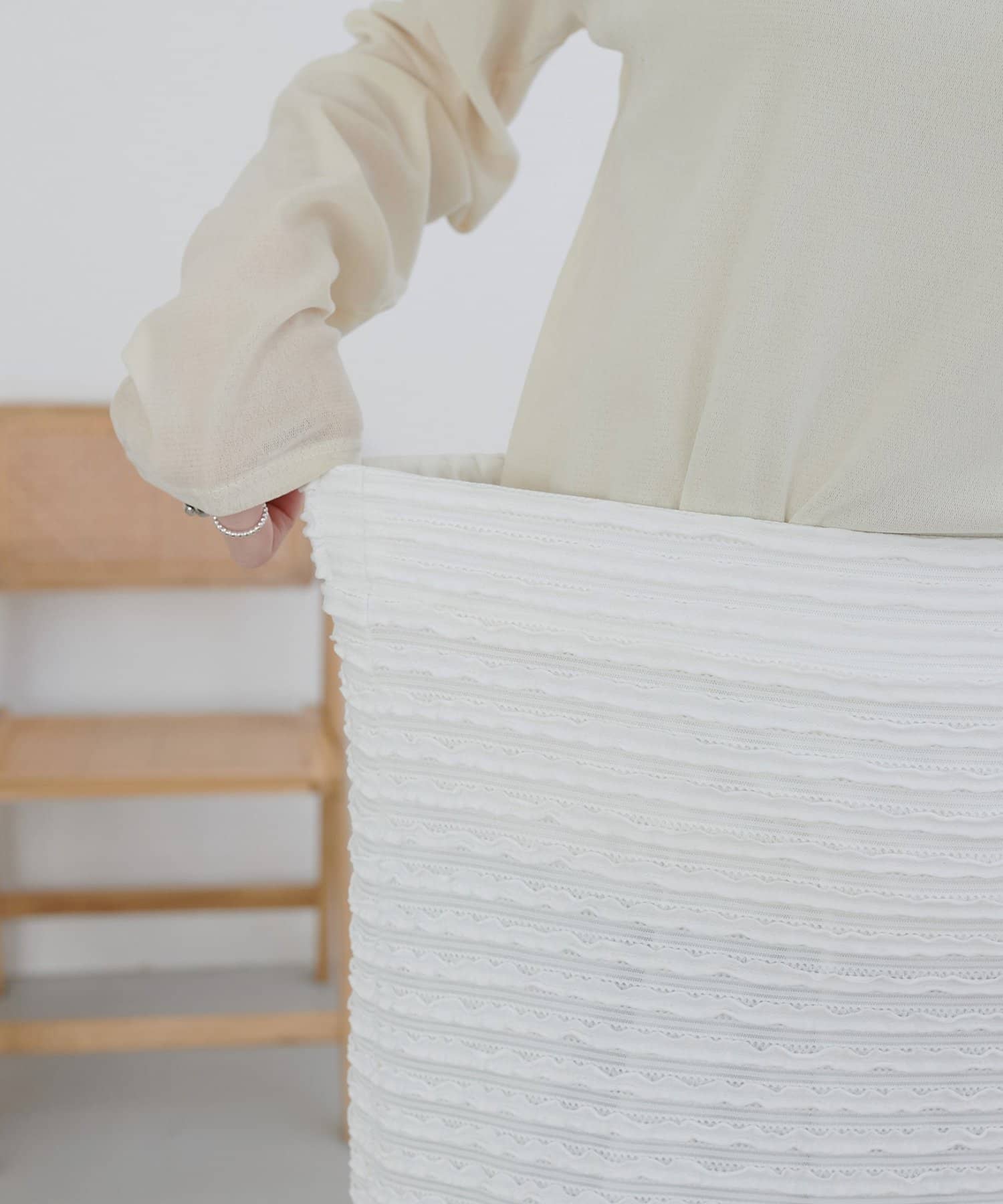 ・細かなミニフリルを全体に施した、表情豊かなナロースカート。
