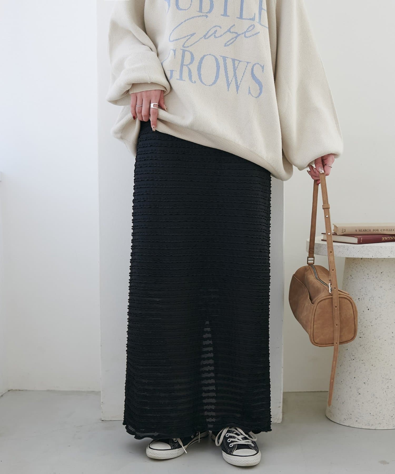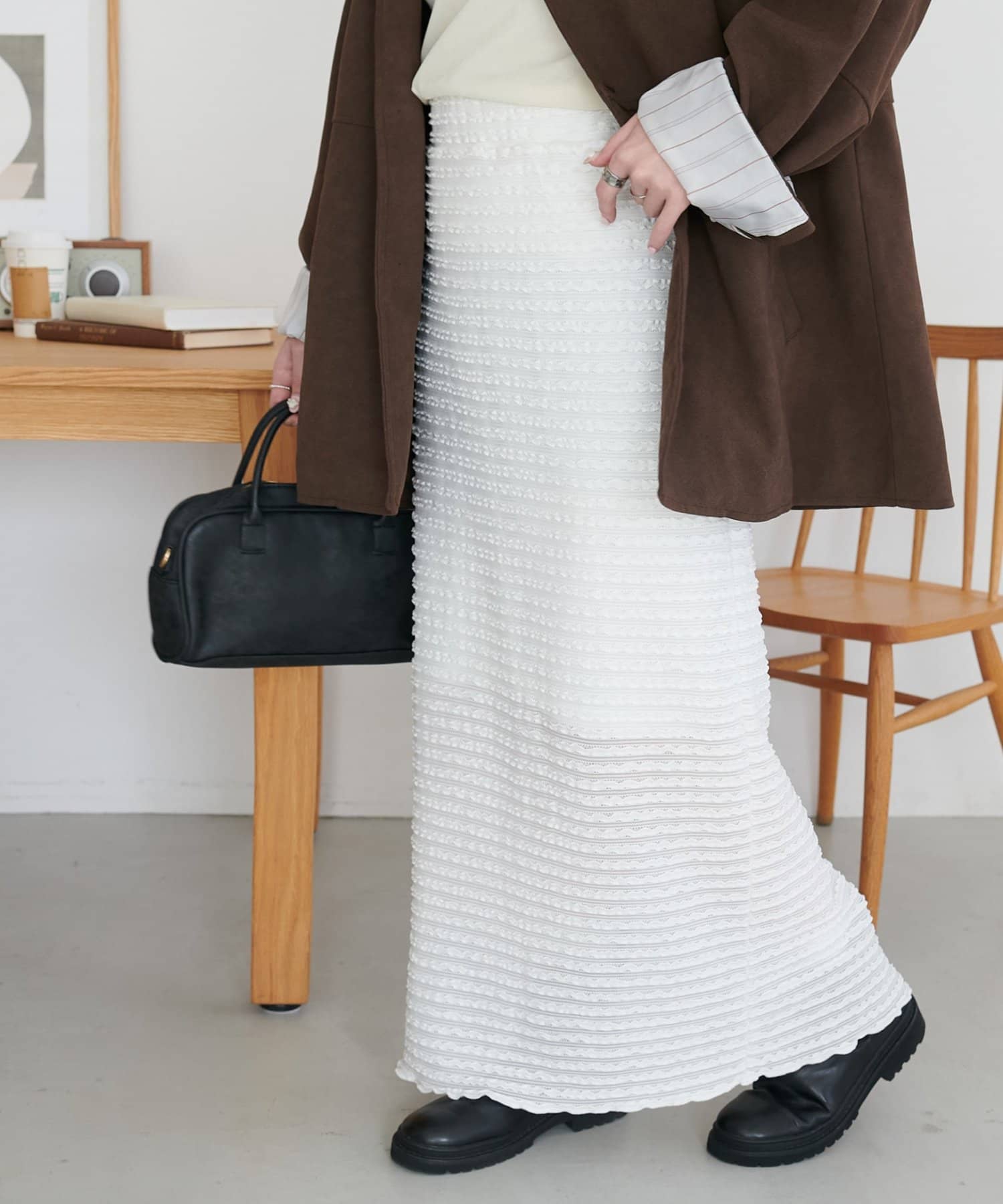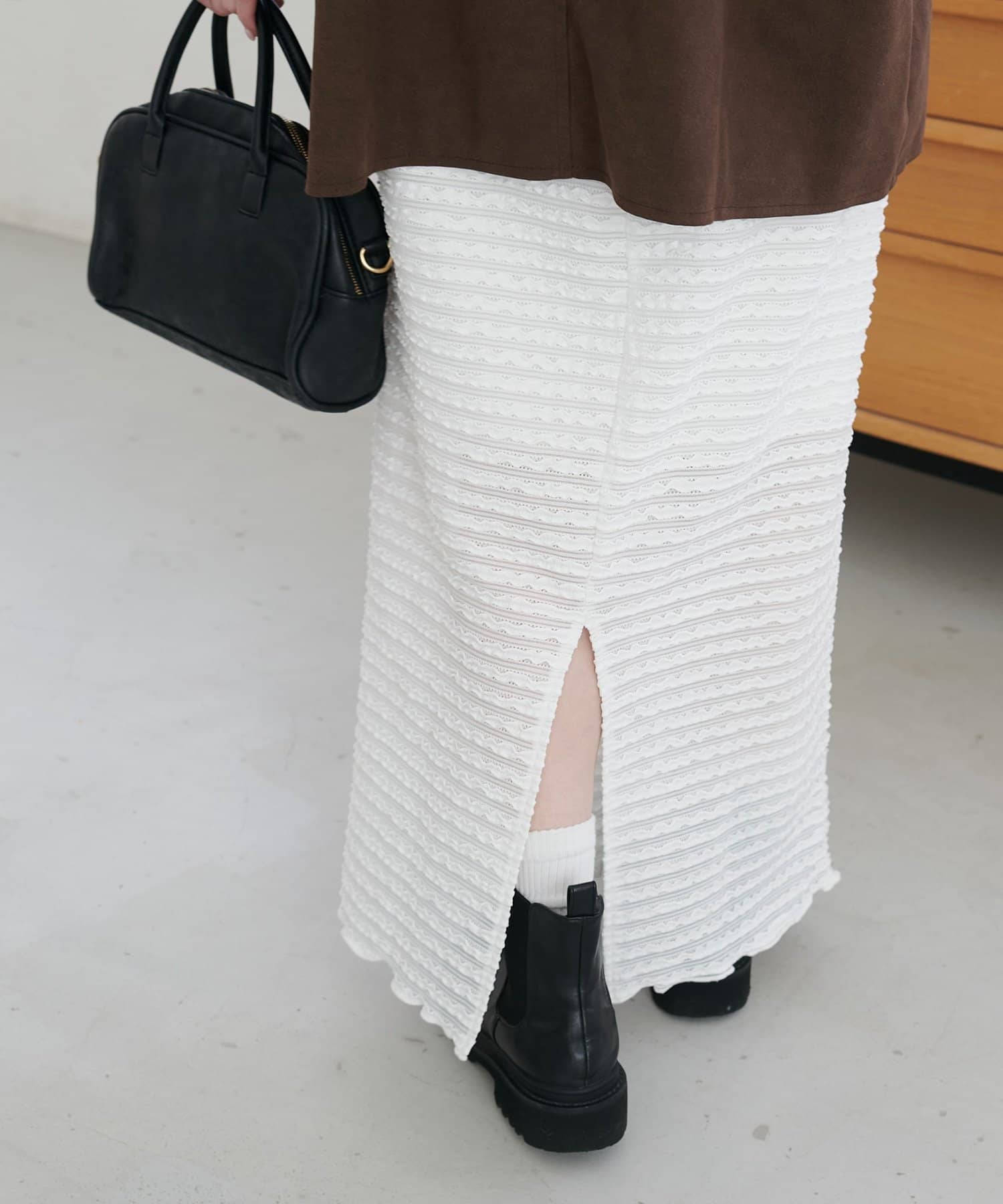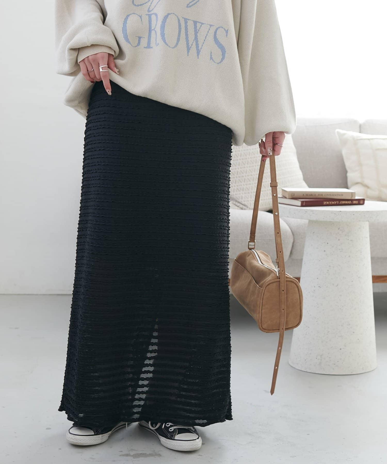 ・細かなミニフリルを全体に施した、表情豊かなナロースカート。