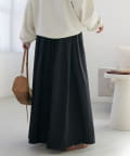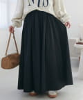 155cmスタッフ:ボリューム感がありますが、ギャザーデザインとAラインシルエットになっていることでウエスト周りがすっきりとして見えます!ウエストは総ゴムなので、トップスもインして着回しがしやすいのも嬉しいです♡