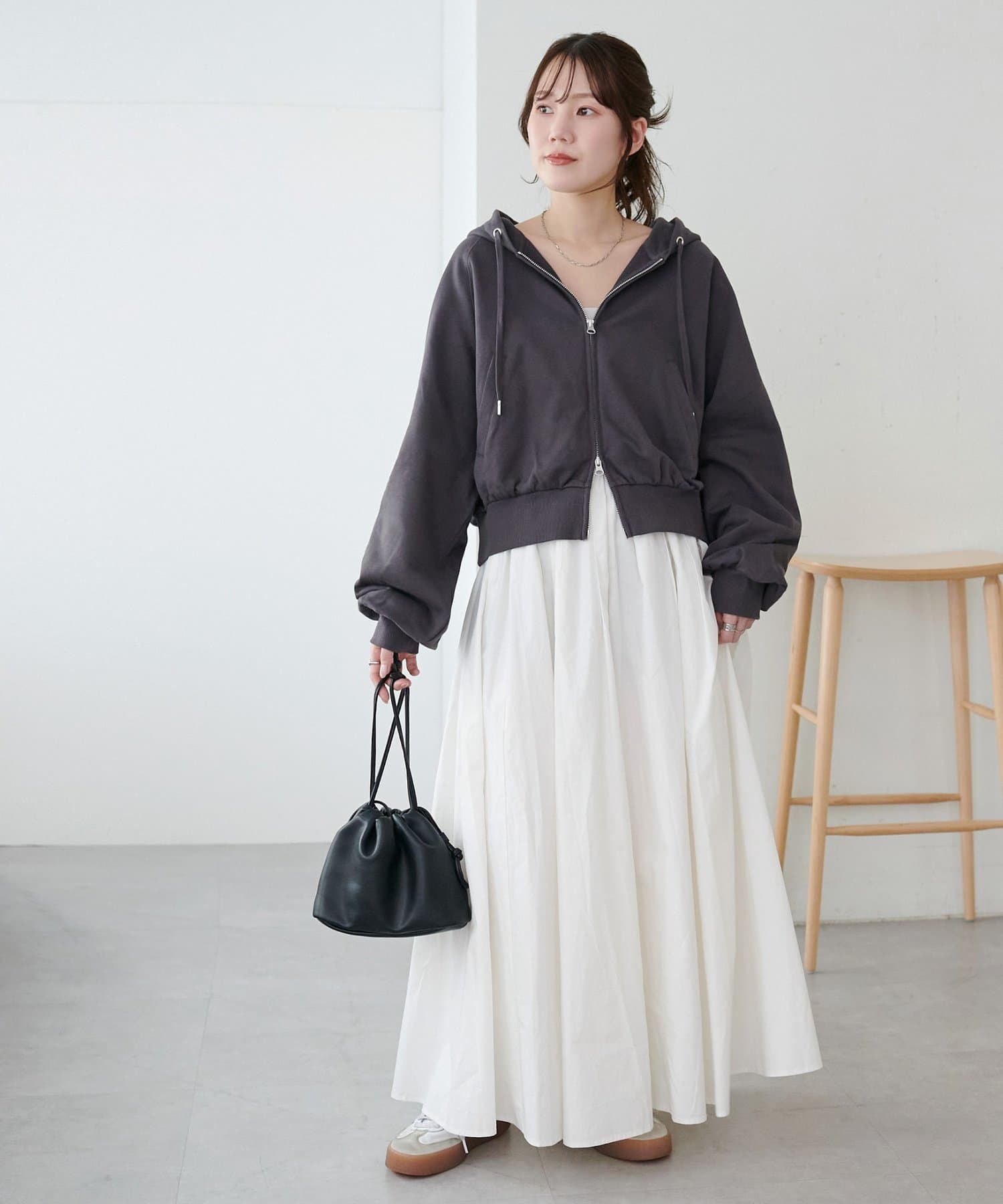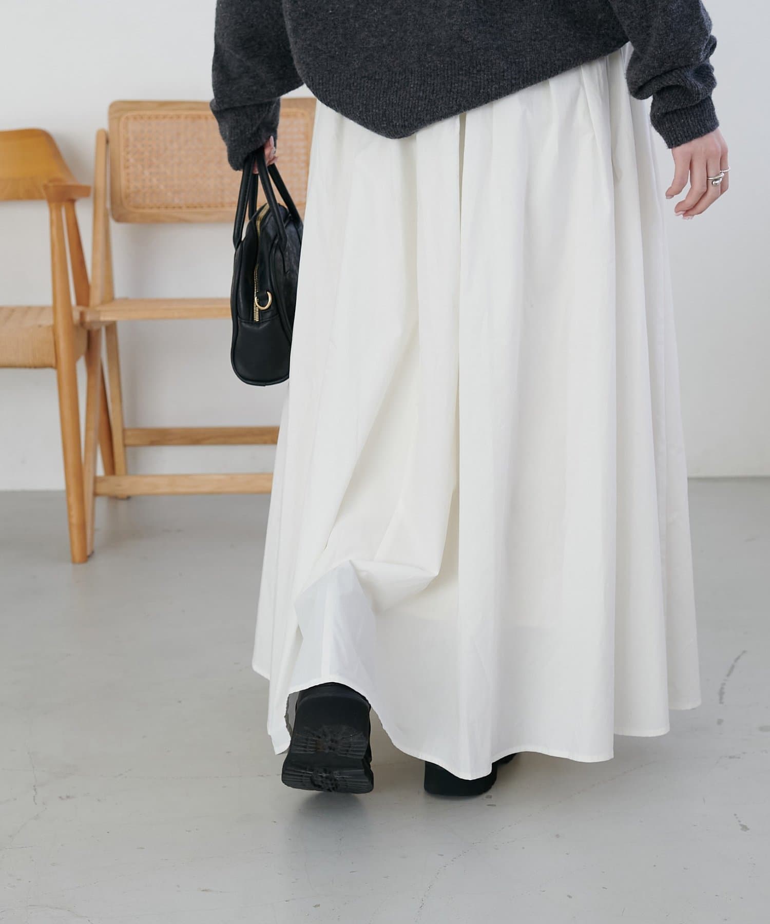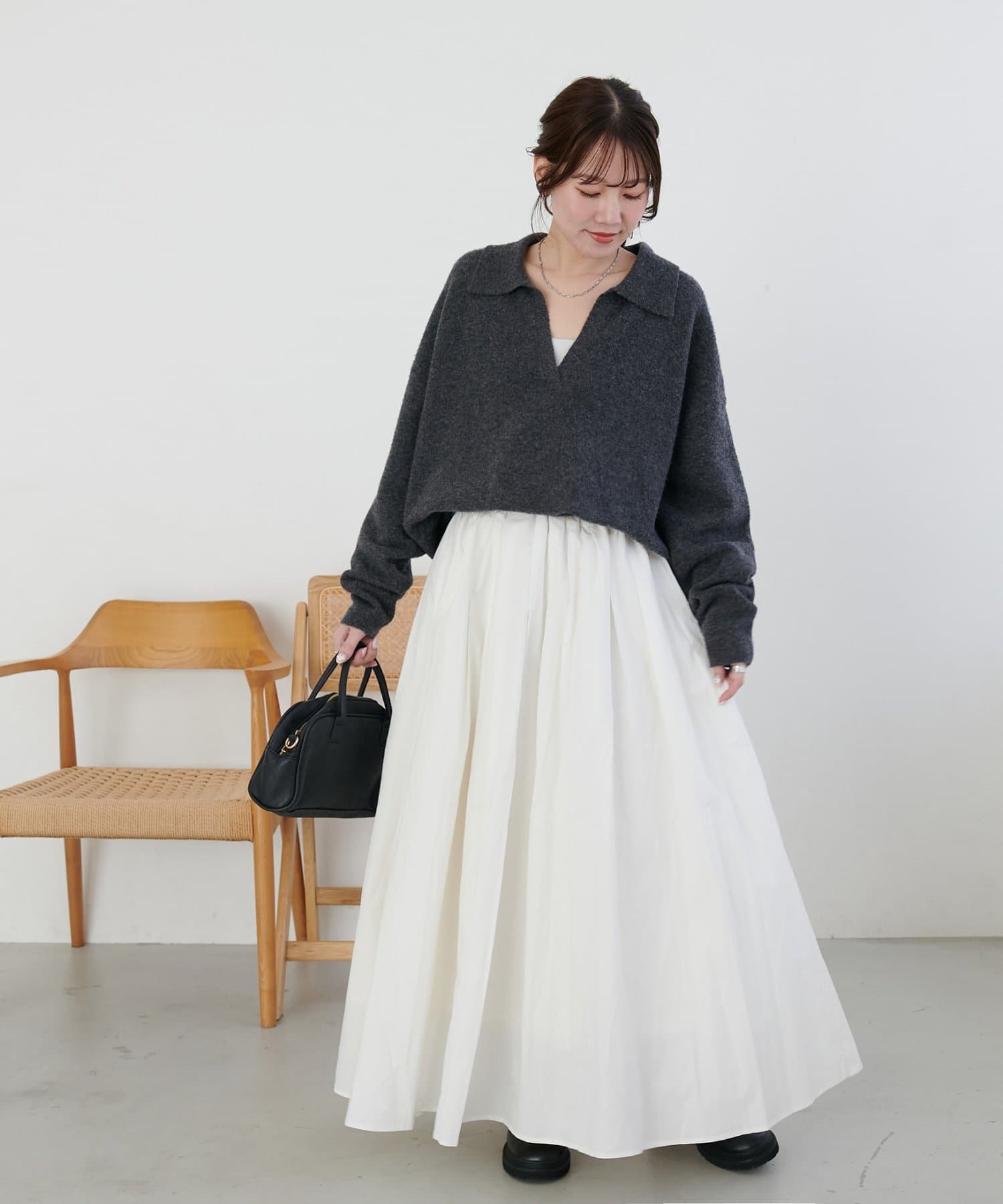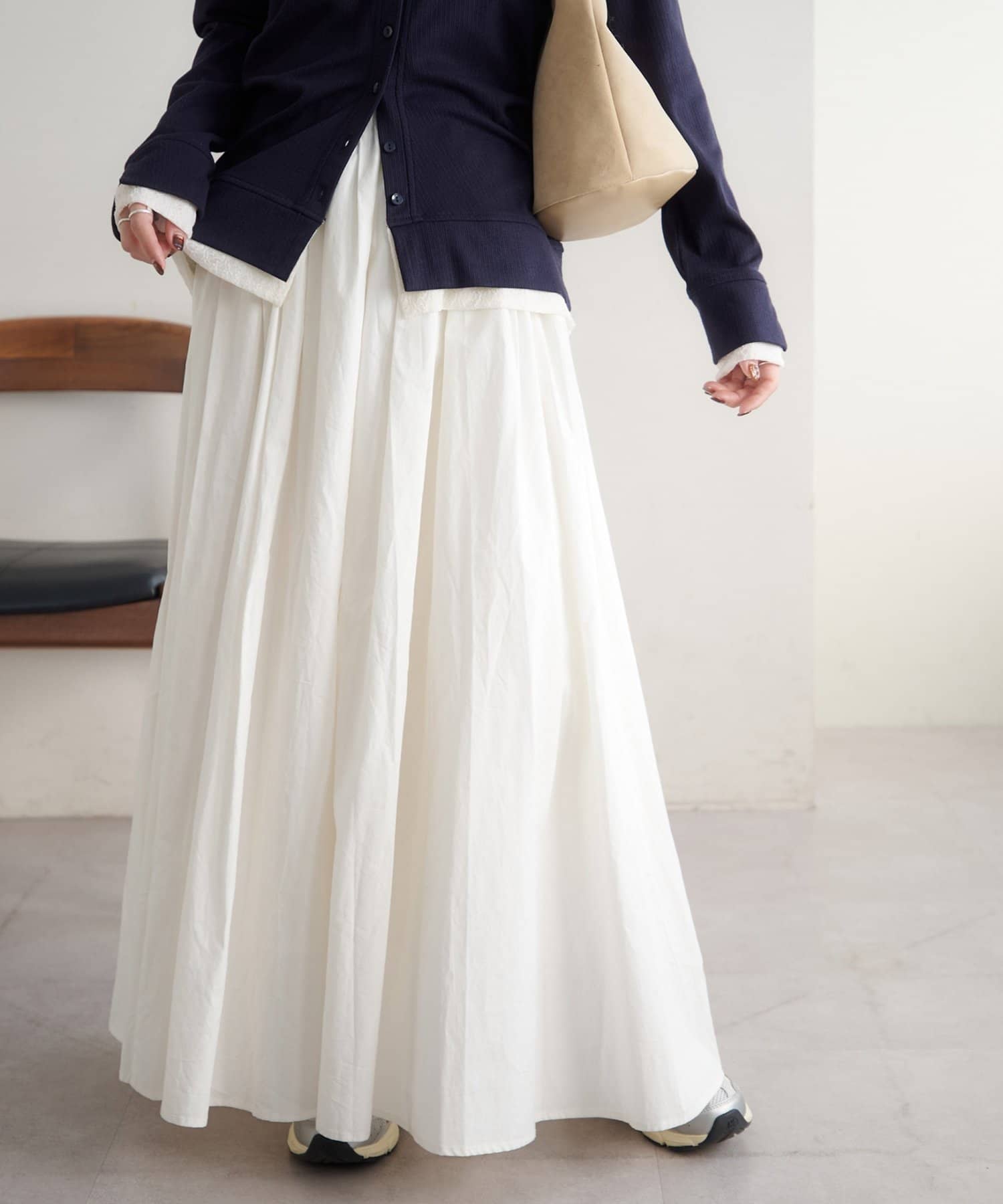 ・コンパクト着丈のトップスと合わせると、スカートのシルエットが際立ちます◎