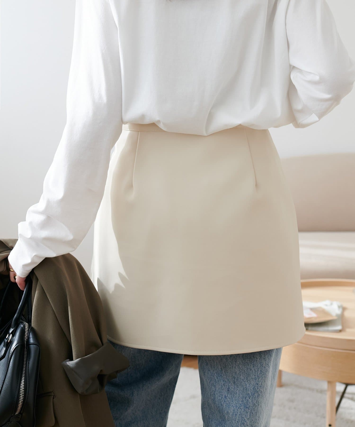 162cmスタッフ:着丈が短すぎないので、高身長にも嬉しいアイテムです!太もも周りにかかる着丈は、さり気なく腰回りや太ももをカバーしてくれるので、細身のパンツにも挑戦できます。