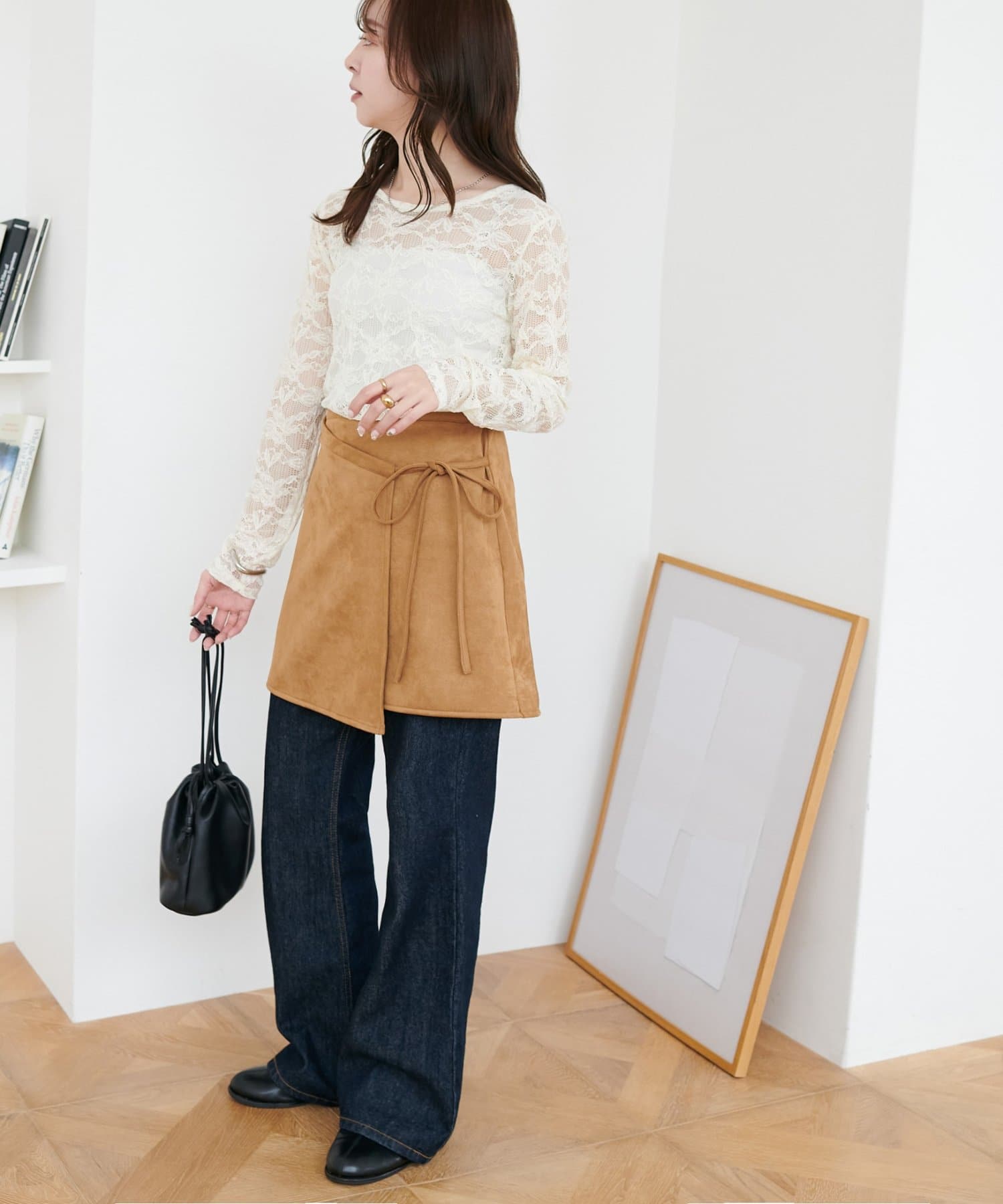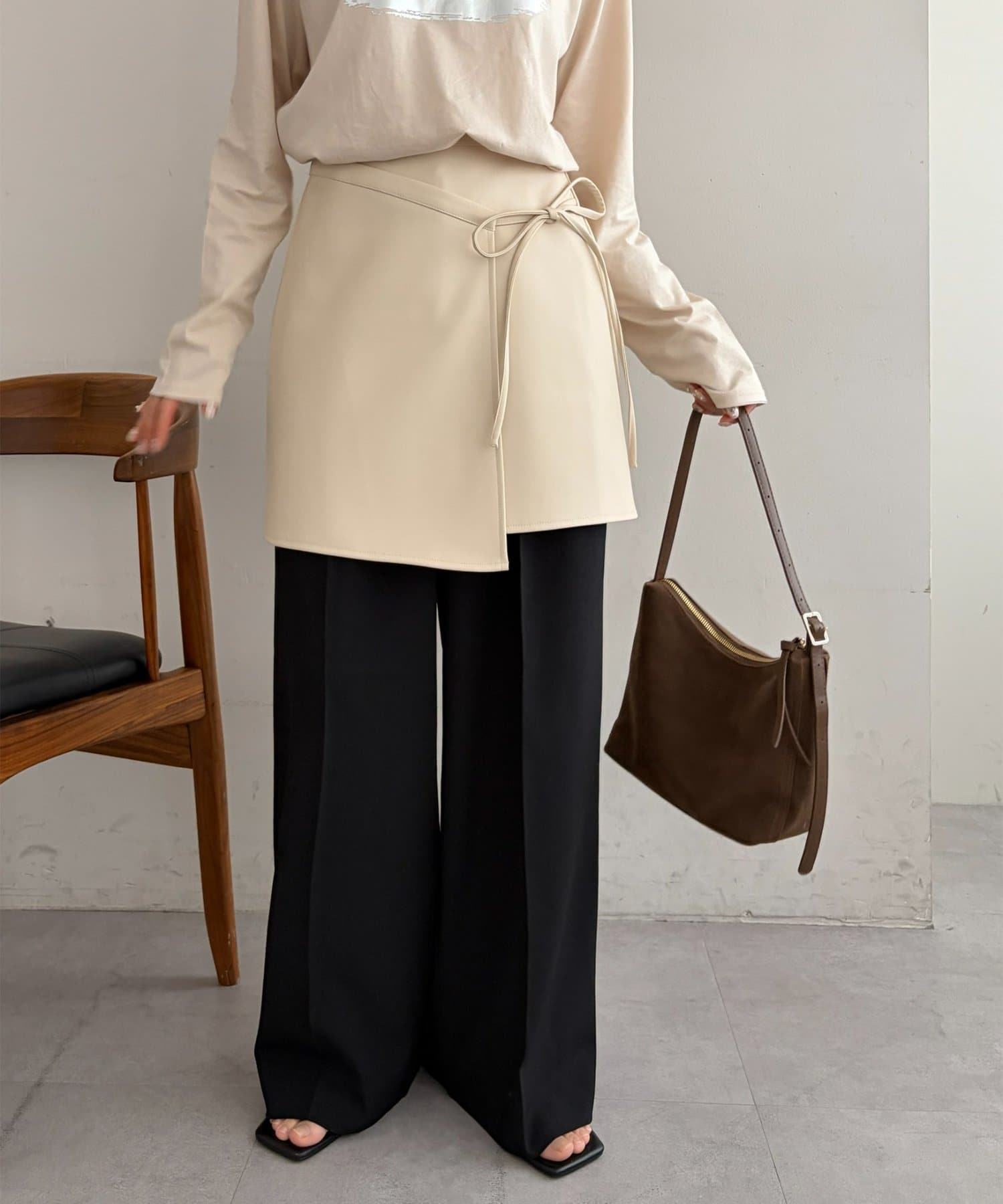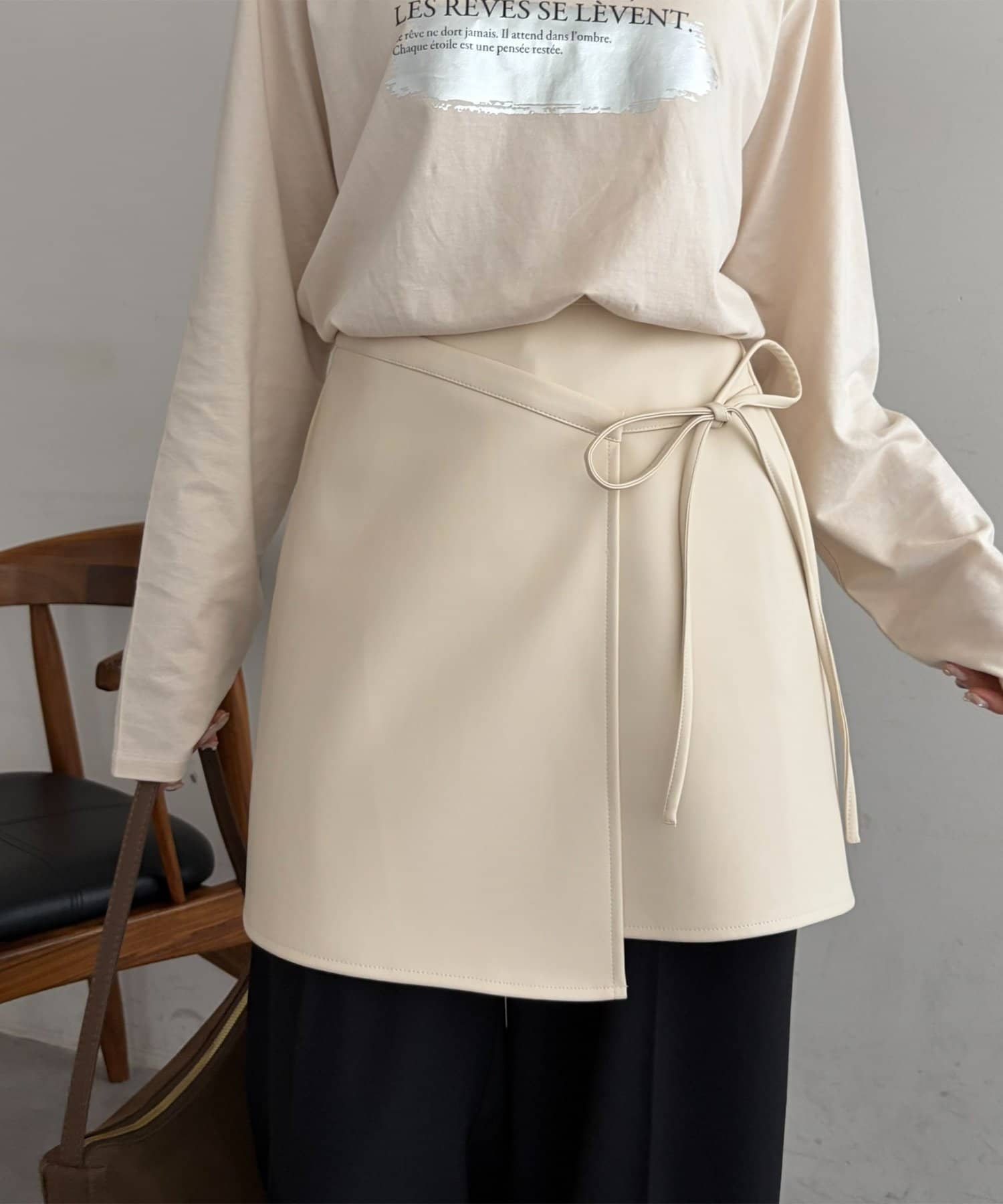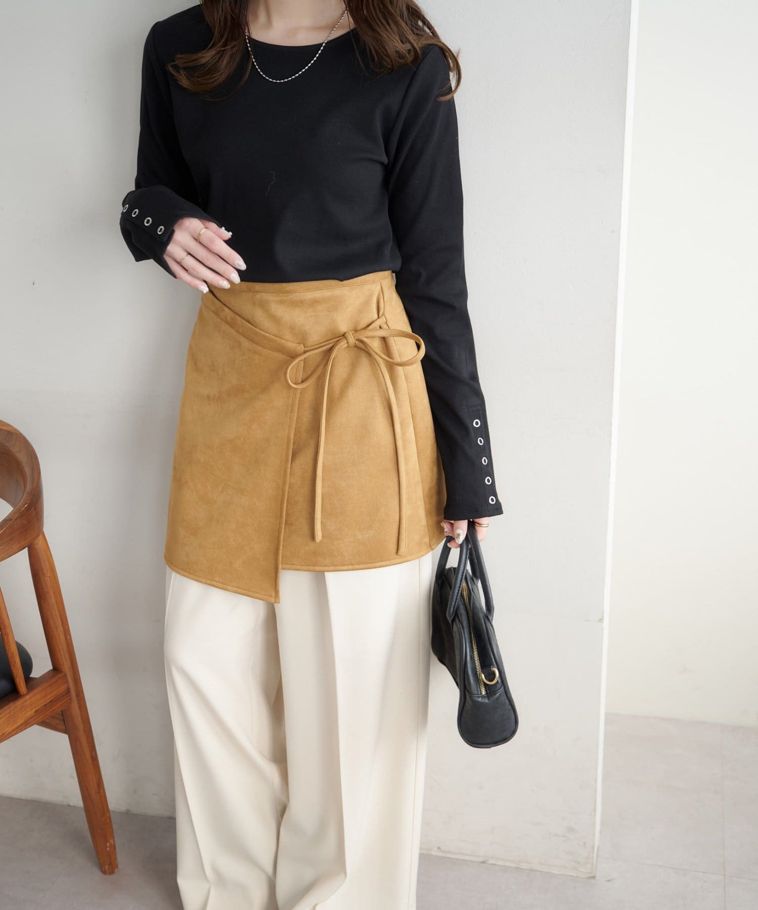 158cmスタッフ:シンプルなコーデに取り入れるだけで、一気におしゃれ見えします!ラップデザインでアシンメトリー風になっているのもおしゃれポイント♪サイドのリボンはさり気なく女性らしさを引き立ててくれます。