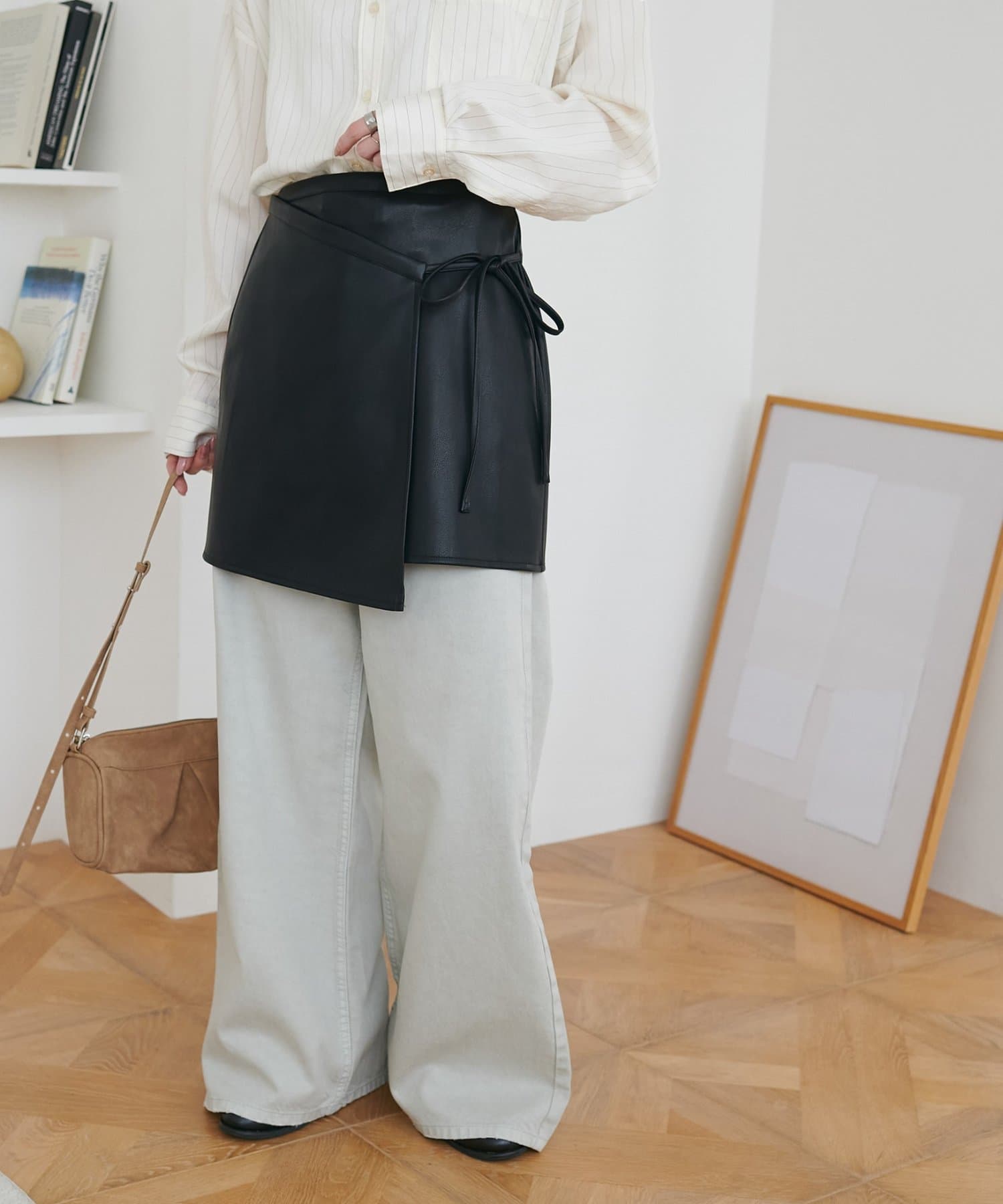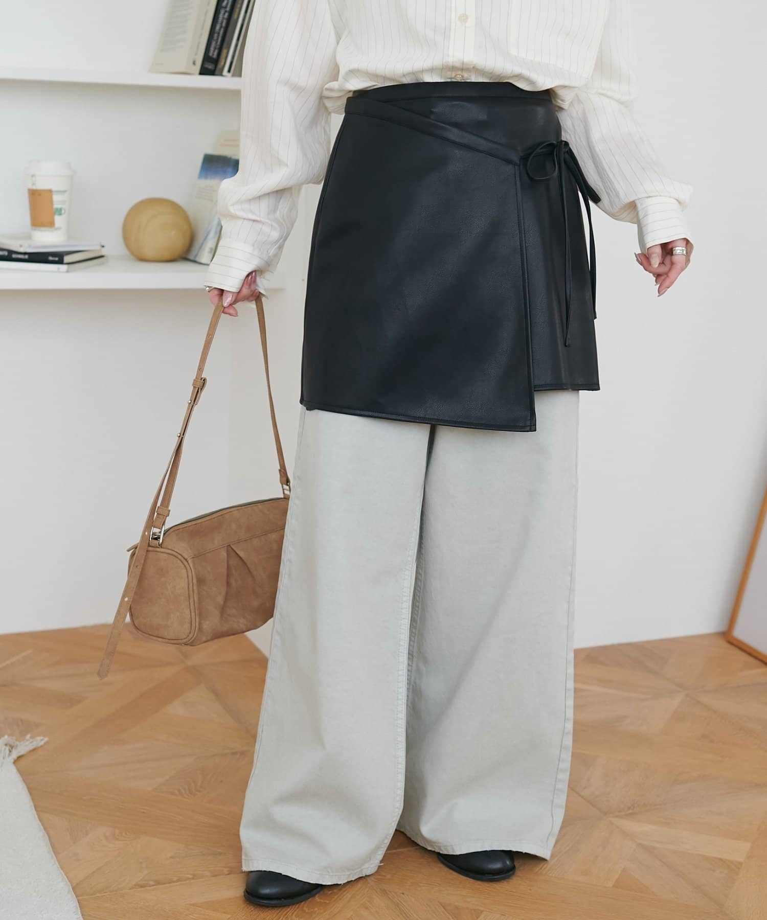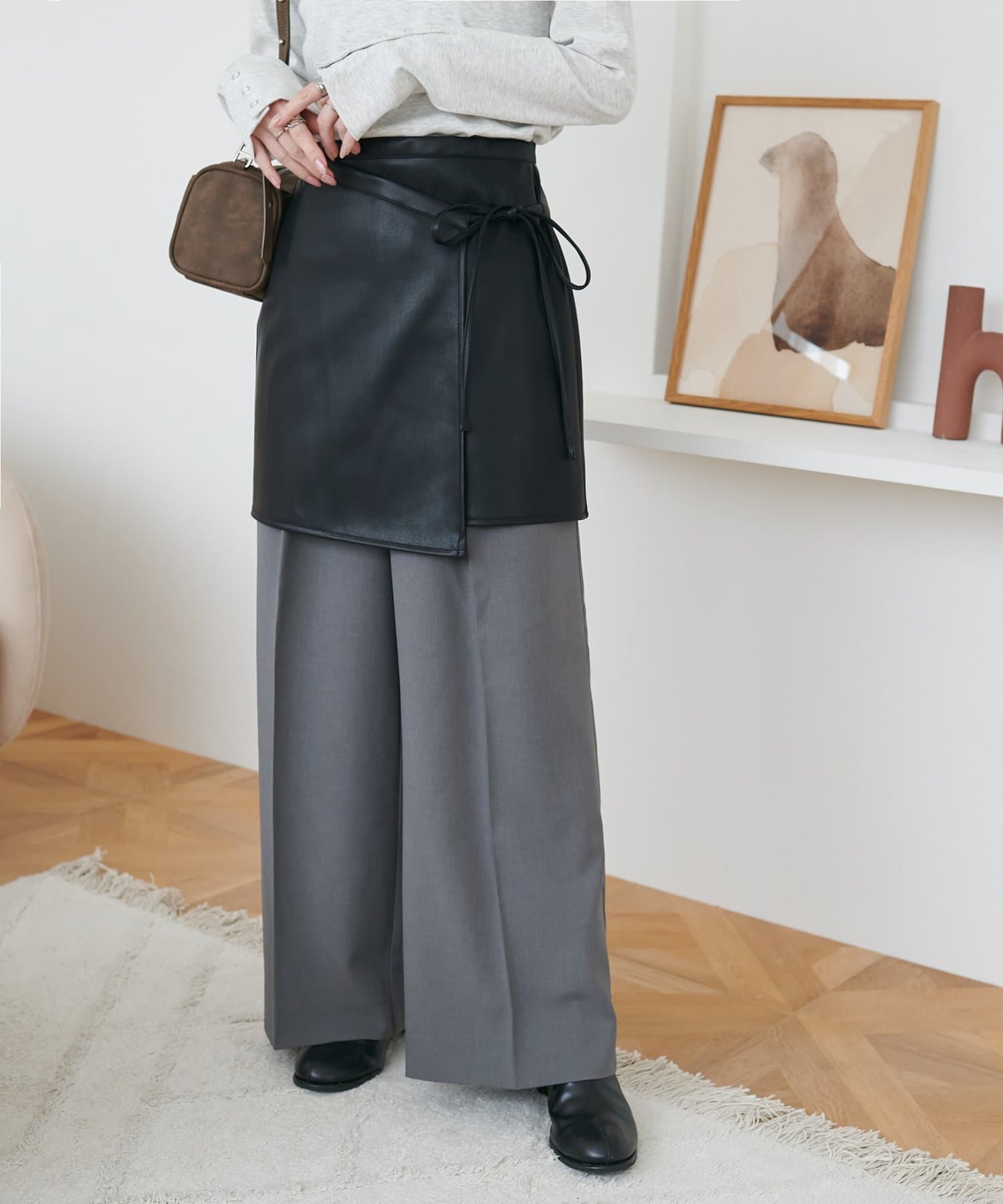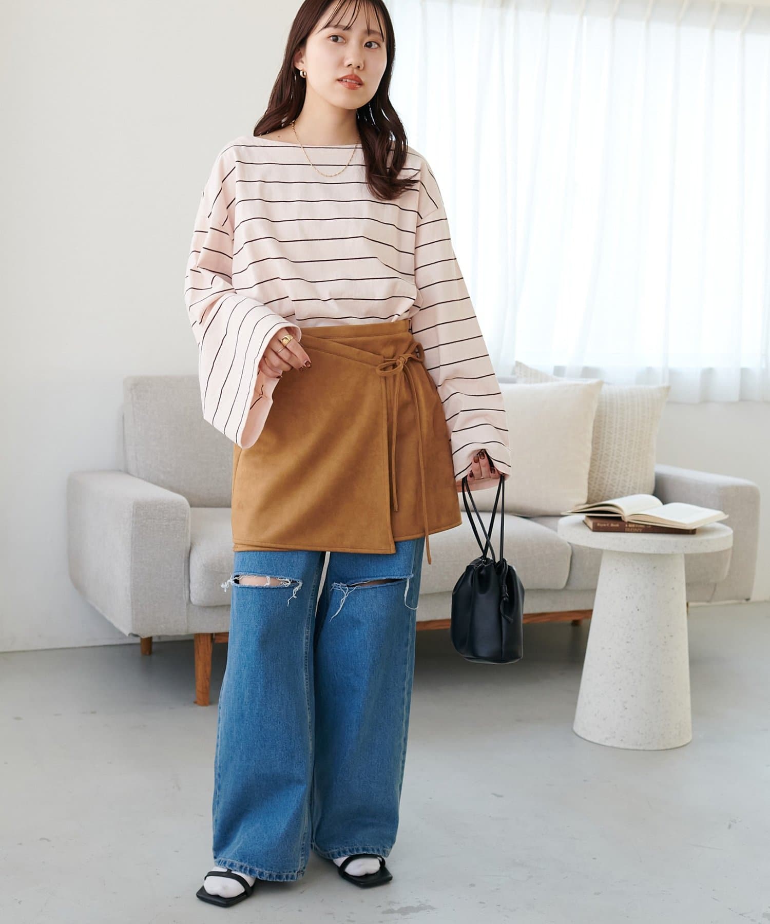 158cmスタッフ:シンプルなコーデに取り入れるだけで、一気におしゃれ見えします!ラップデザインでアシンメトリー風になっているのもおしゃれポイント♪サイドのリボンはさり気なく女性らしさを引き立ててくれます。