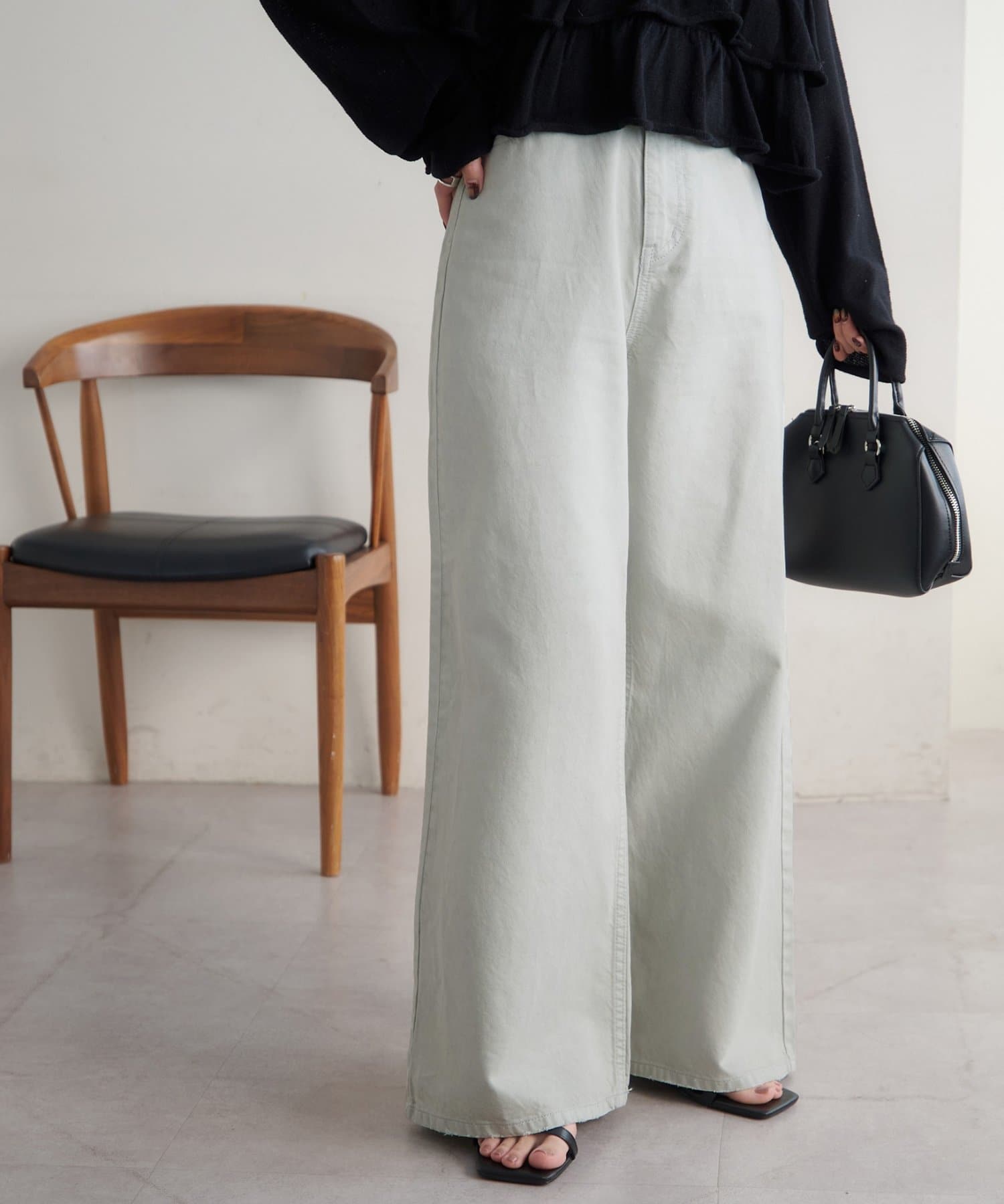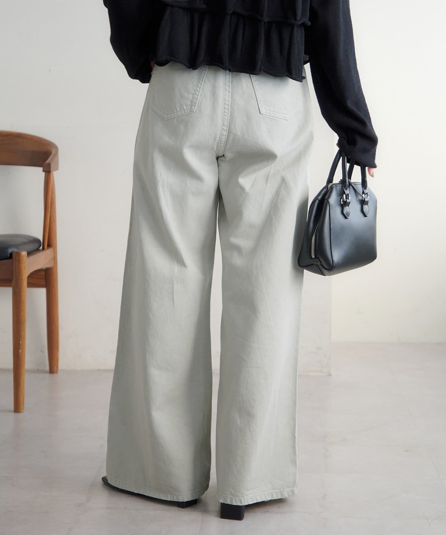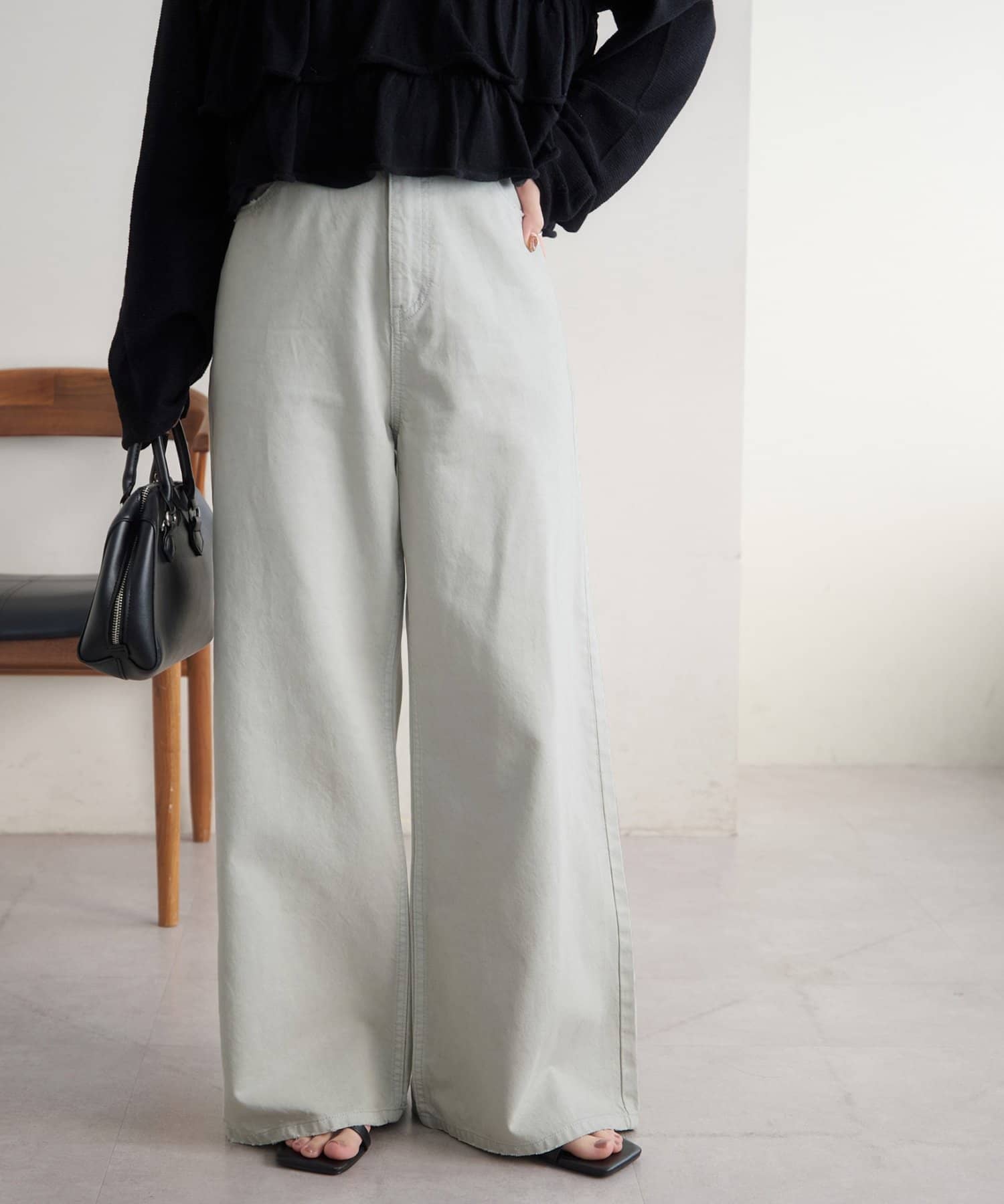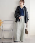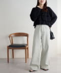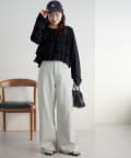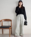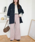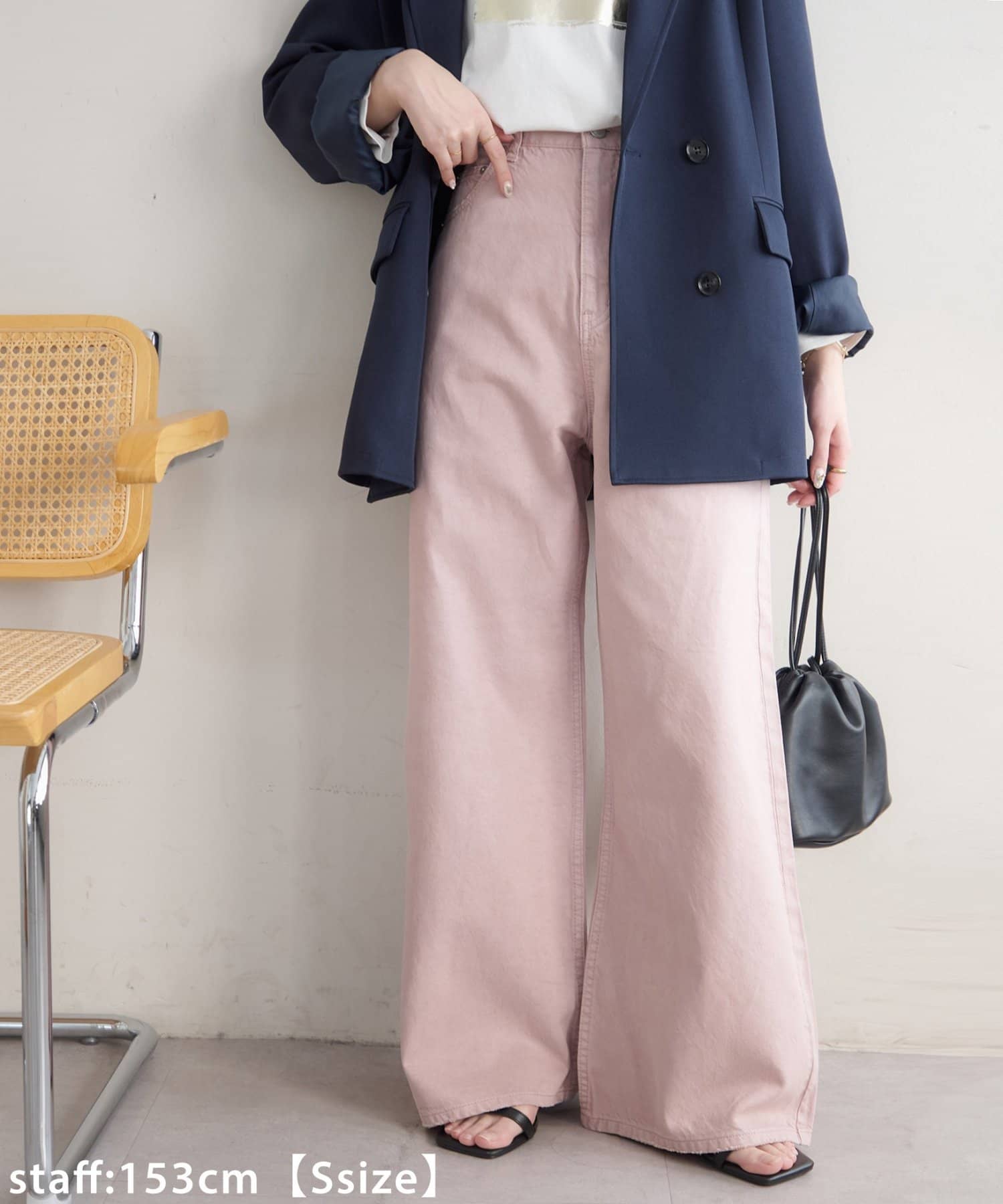 153cmスタッフ(Sサイズ着用):少し太めのフレアシルエットはこなれ感が出ます!コンパクトな着丈のトップスと合わせると腰回りがスッキリと見えて、足長効果もあるコーデになるのでおすすめです♪