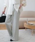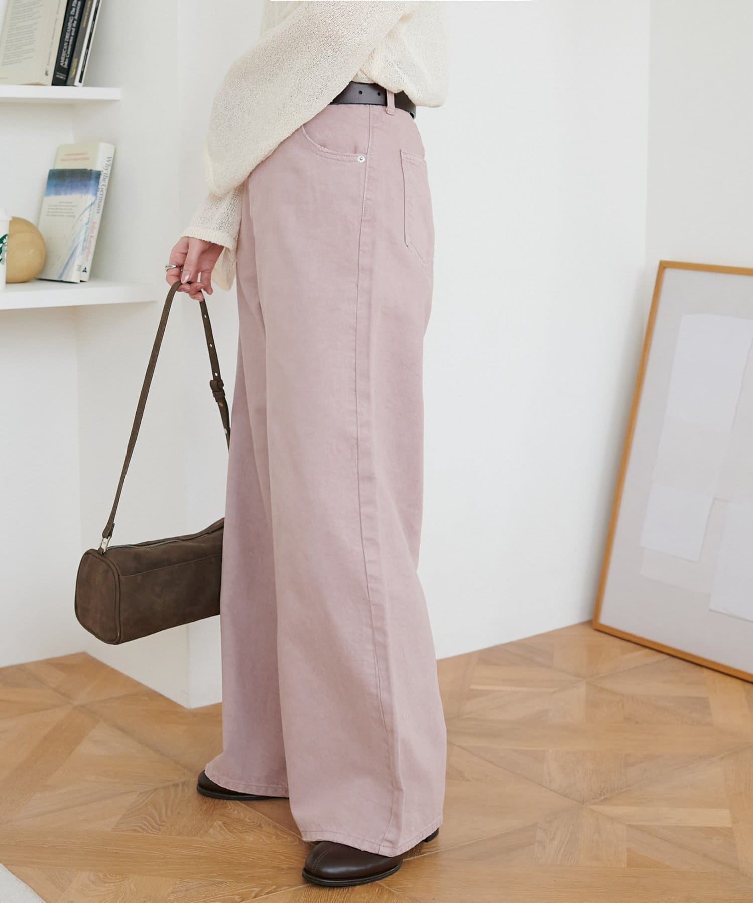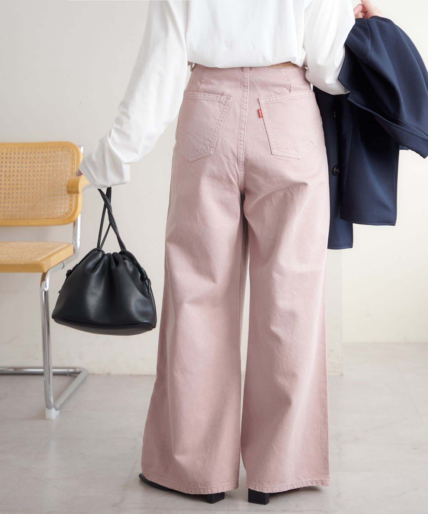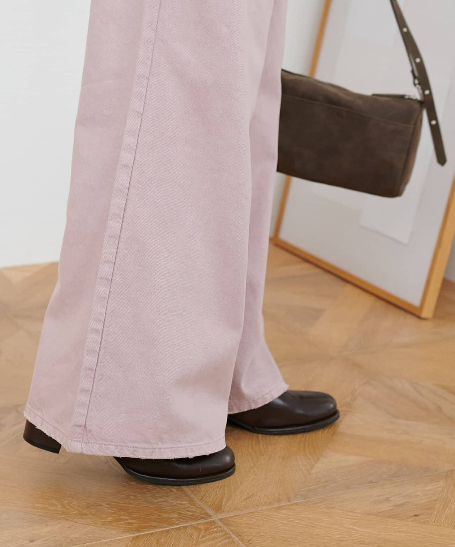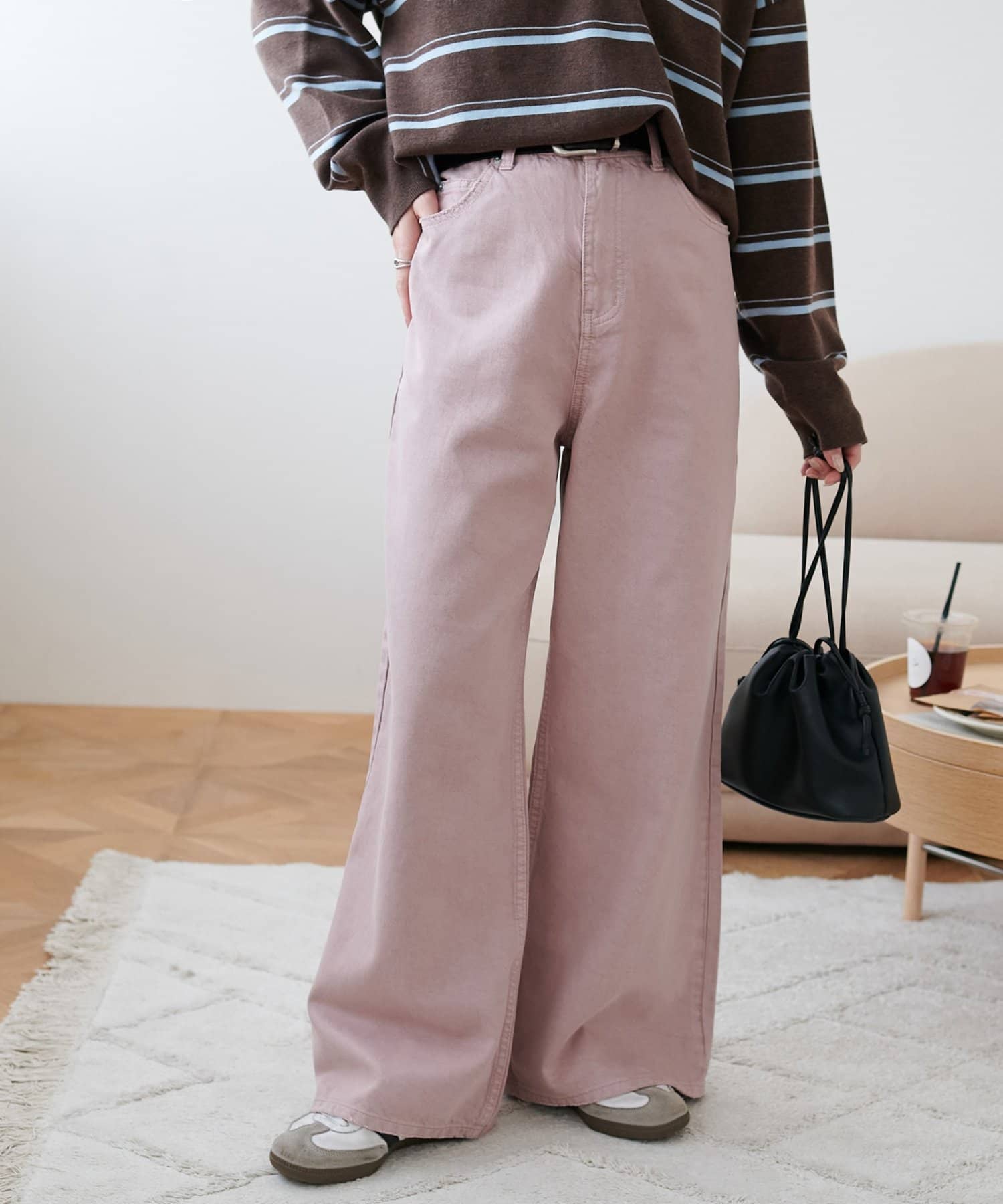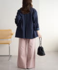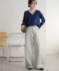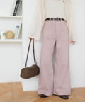 158cmスタッフ(Mサイズ着用):スニーカーだと足元に少し生地が溜まり、ラフなイメージで着ることができます!よりキレイメに着たい場合はブーツやヒール合わせがおすすめです。カラーパンツですが、薄い色味なのでコーデに取り入れやすいです。