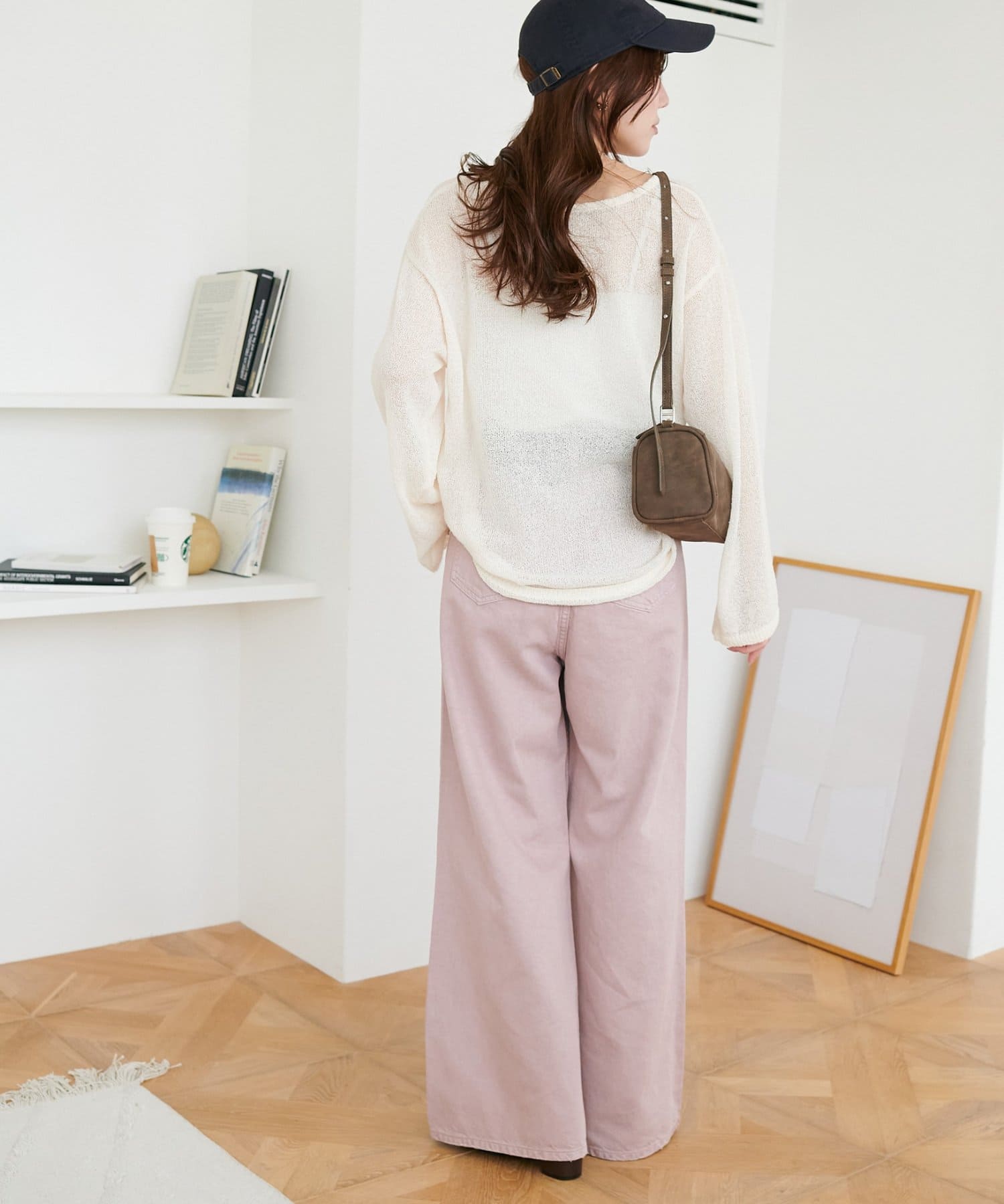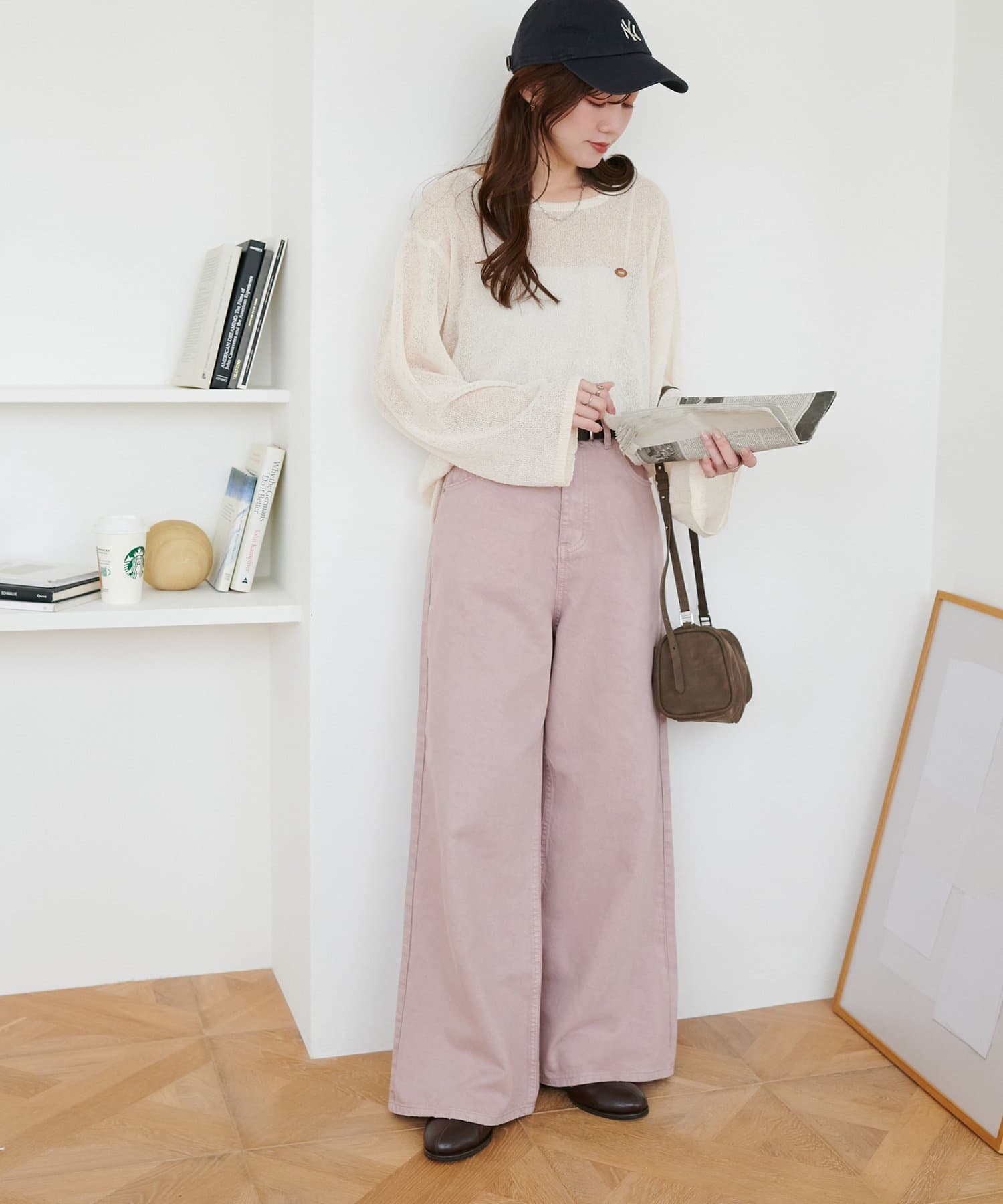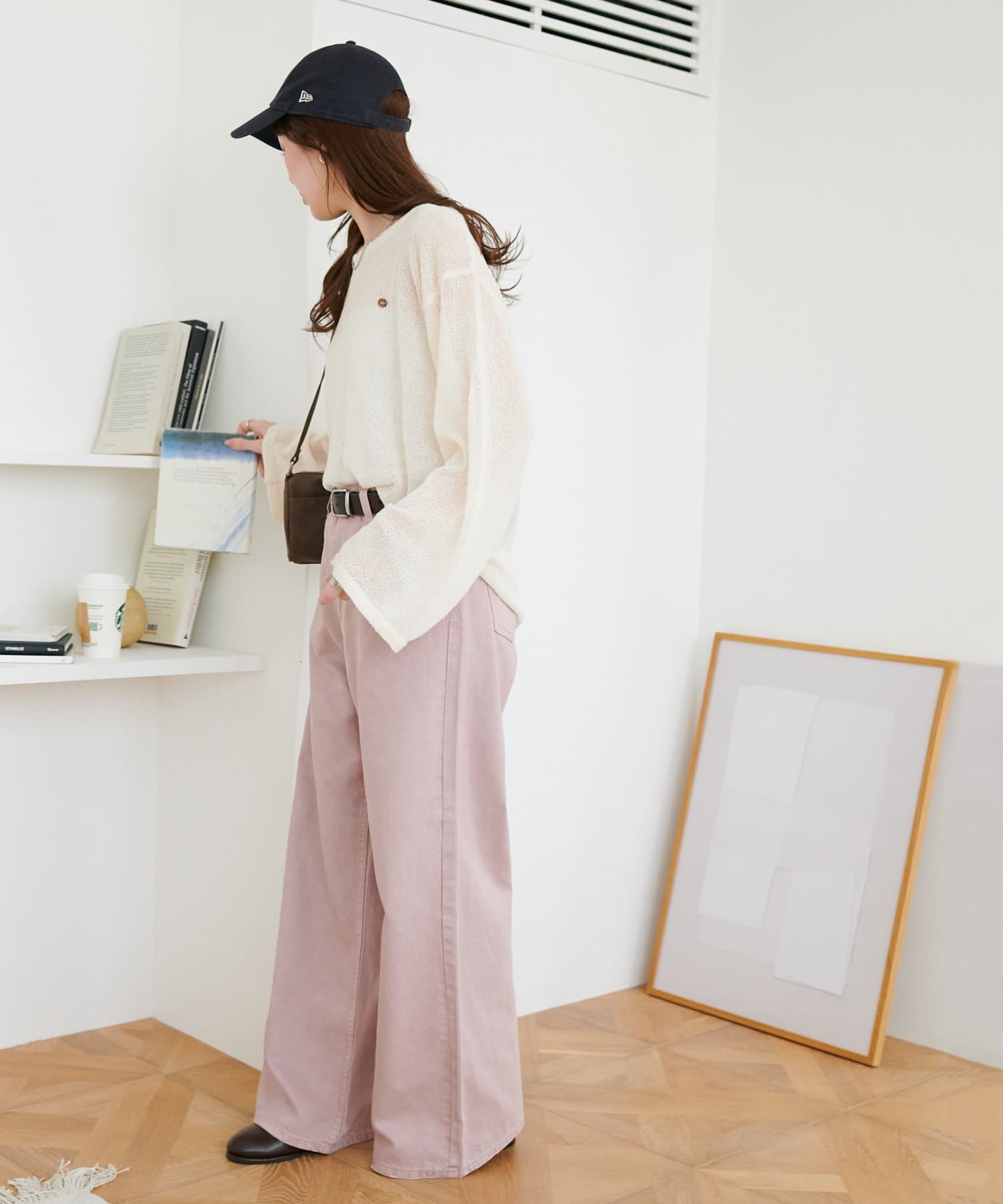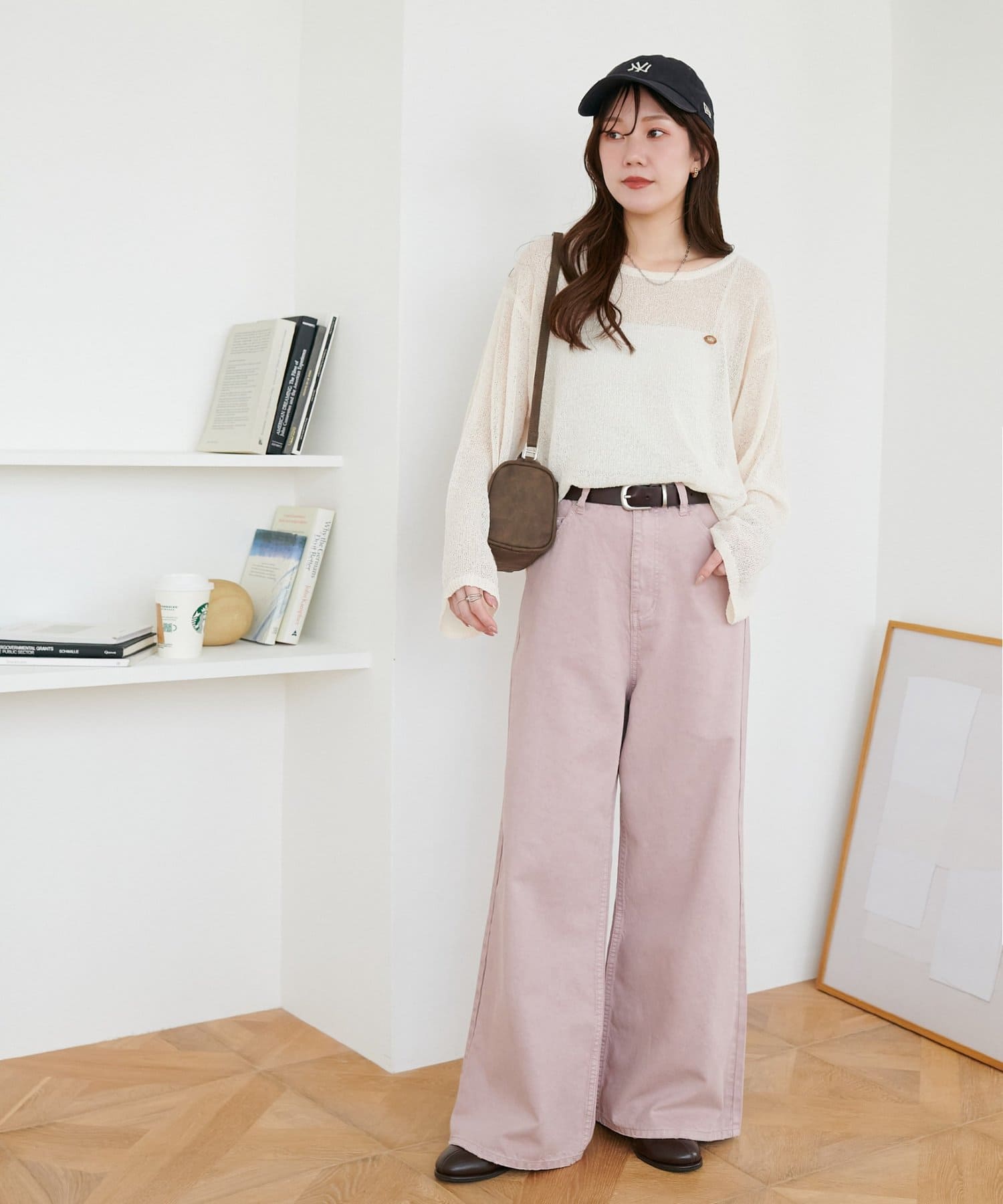 158cmスタッフ(Mサイズ着用):スニーカーだと足元に少し生地が溜まり、ラフなイメージで着ることができます!よりキレイメに着たい場合はブーツやヒール合わせがおすすめです。カラーパンツですが、薄い色味なのでコーデに取り入れやすいです。