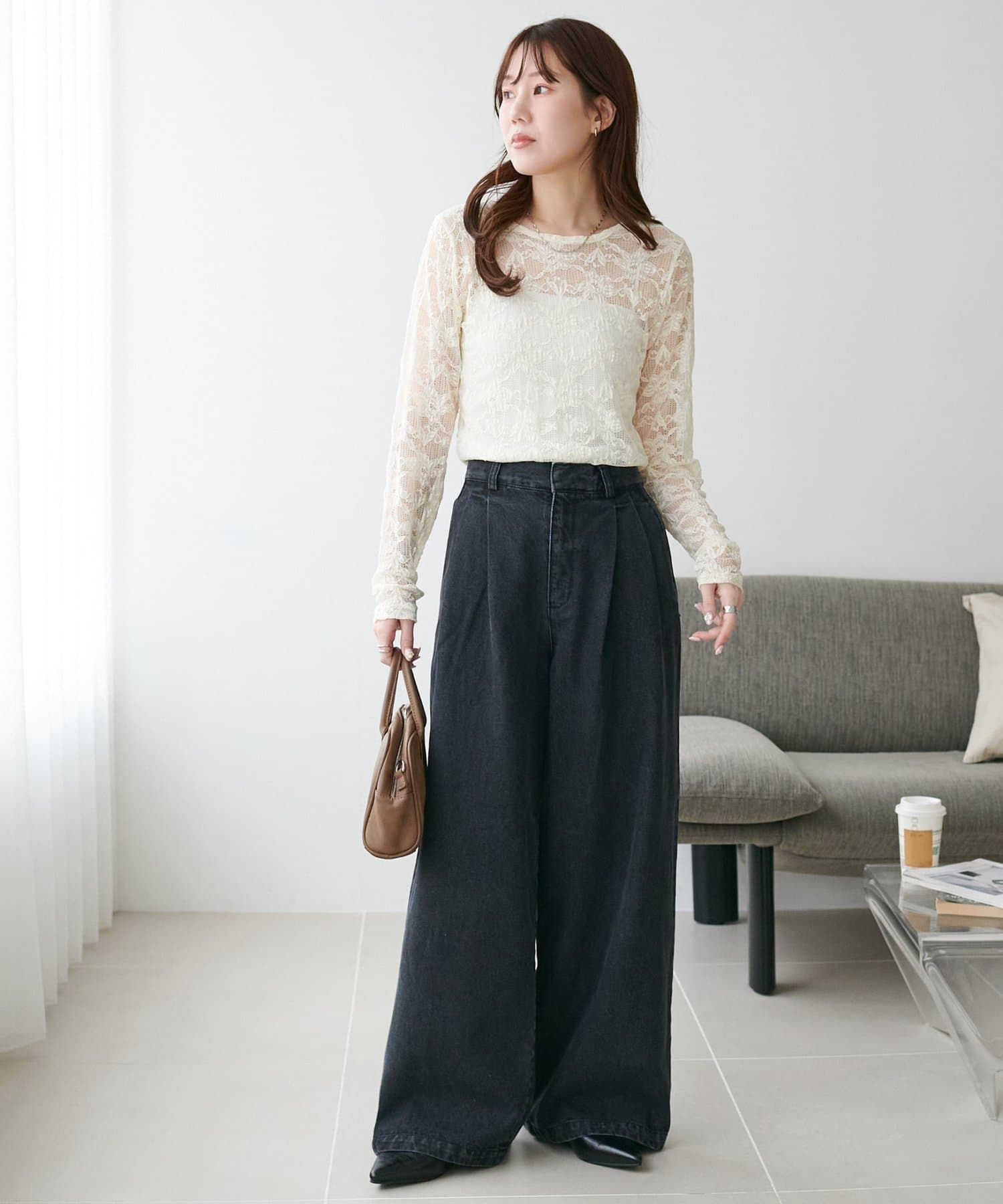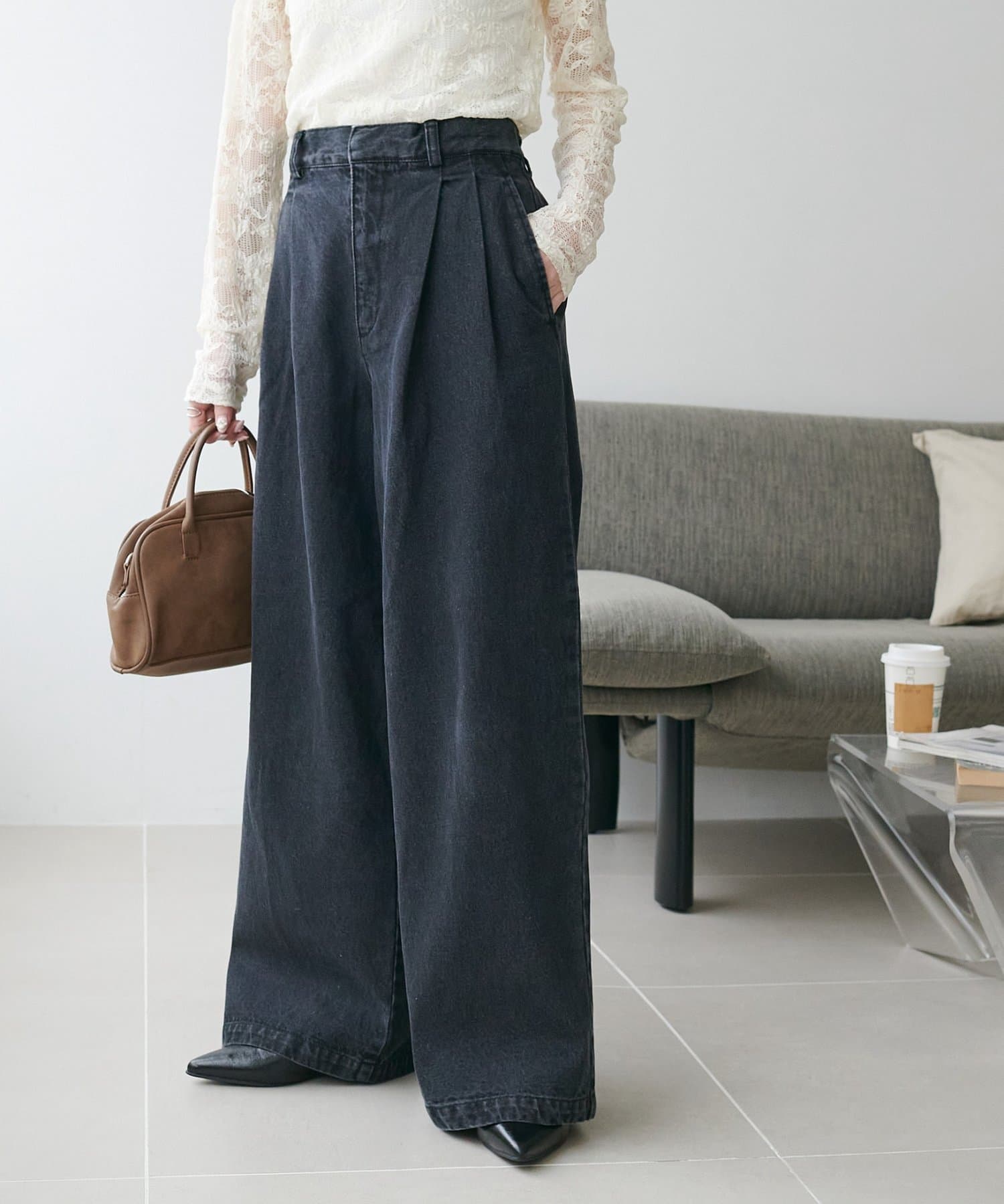 TOP > DISCOAT > レディース > パンツ > デニムパンツ > 【SS先行予約】ライトデニムタックワイドパンツ