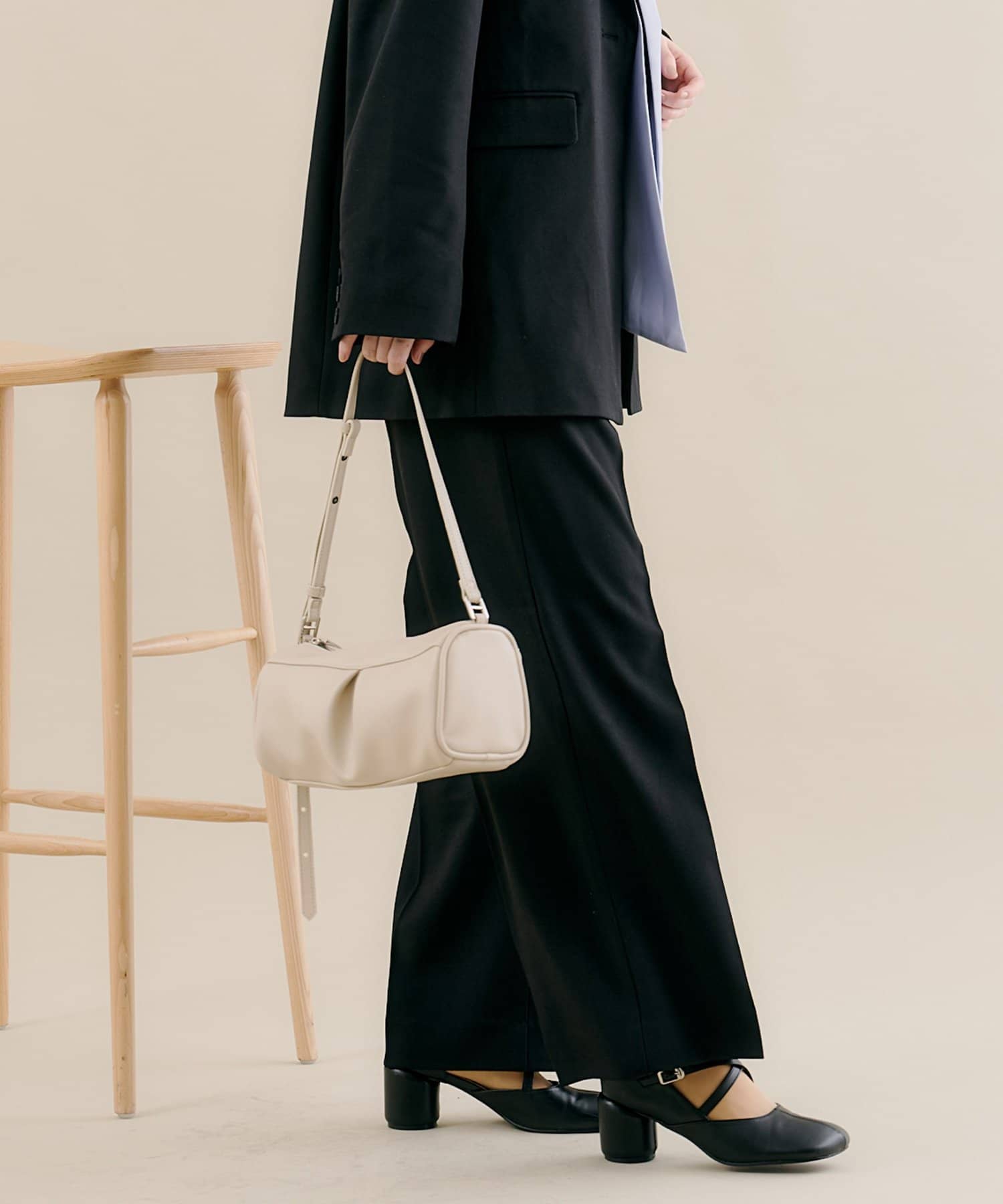 細身ではなく、程よくゆとりのあるサイズなので立ったり座ったりというような動作が多いときも、身体のラインを拾いにくく安心感があります◎