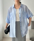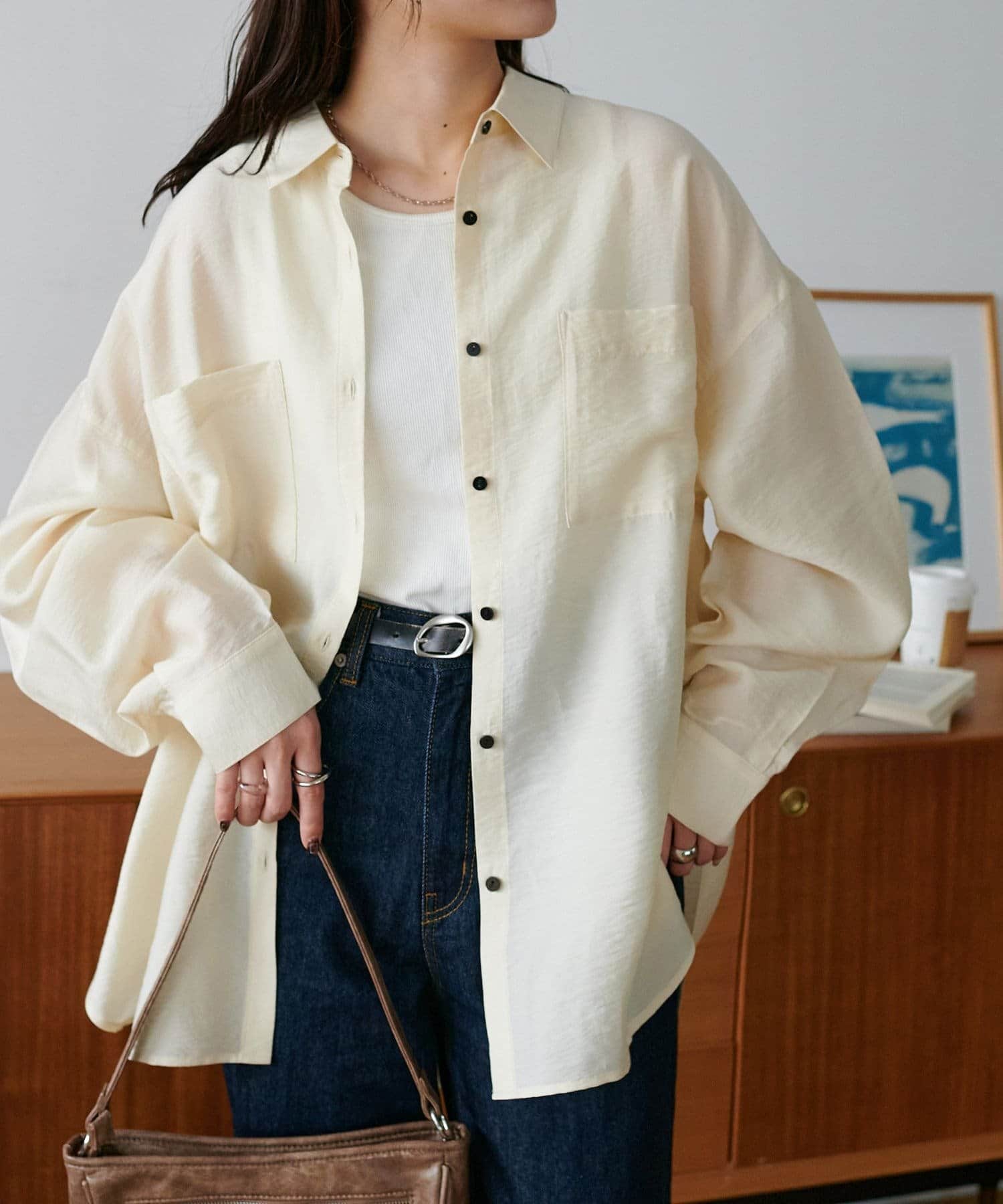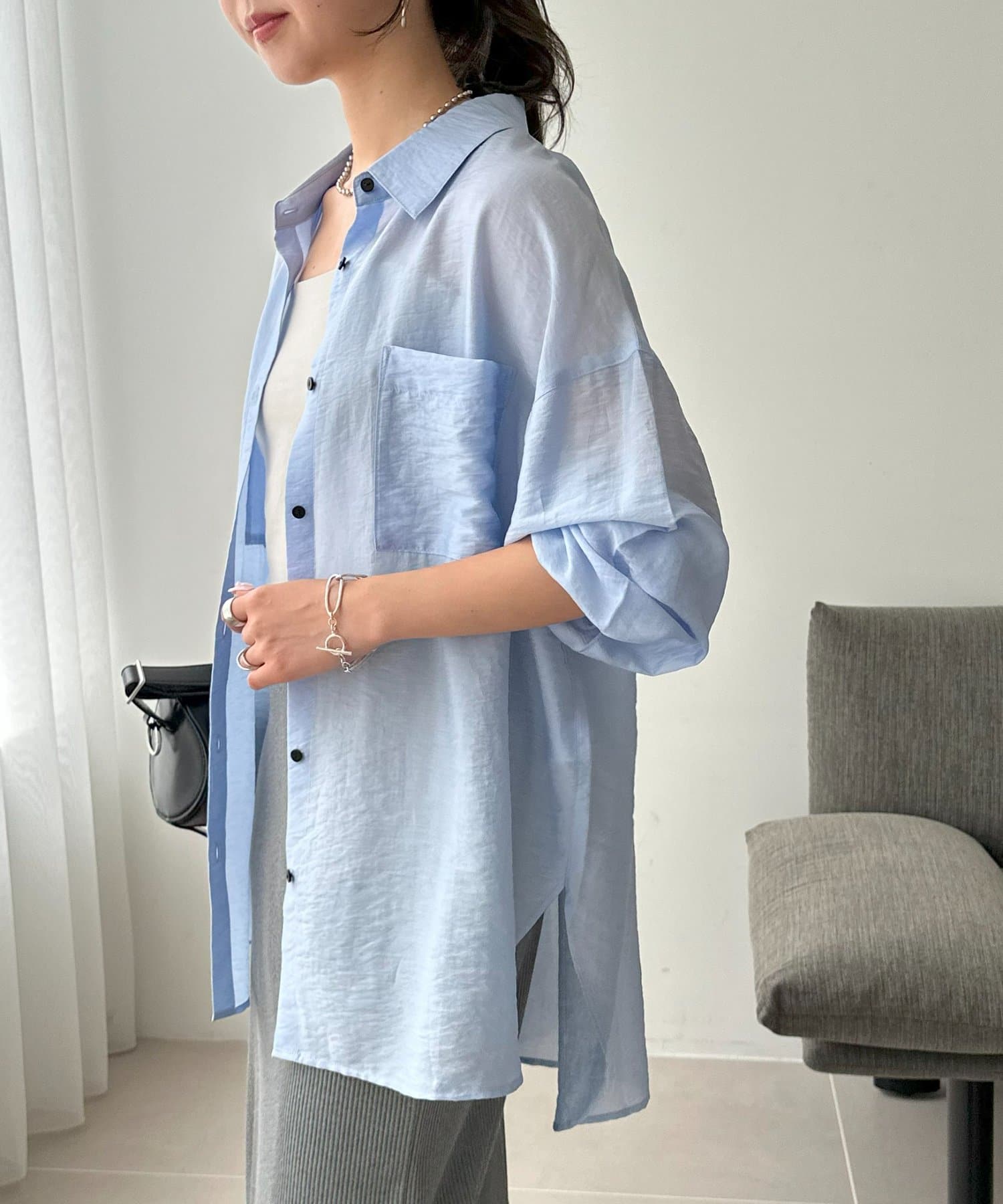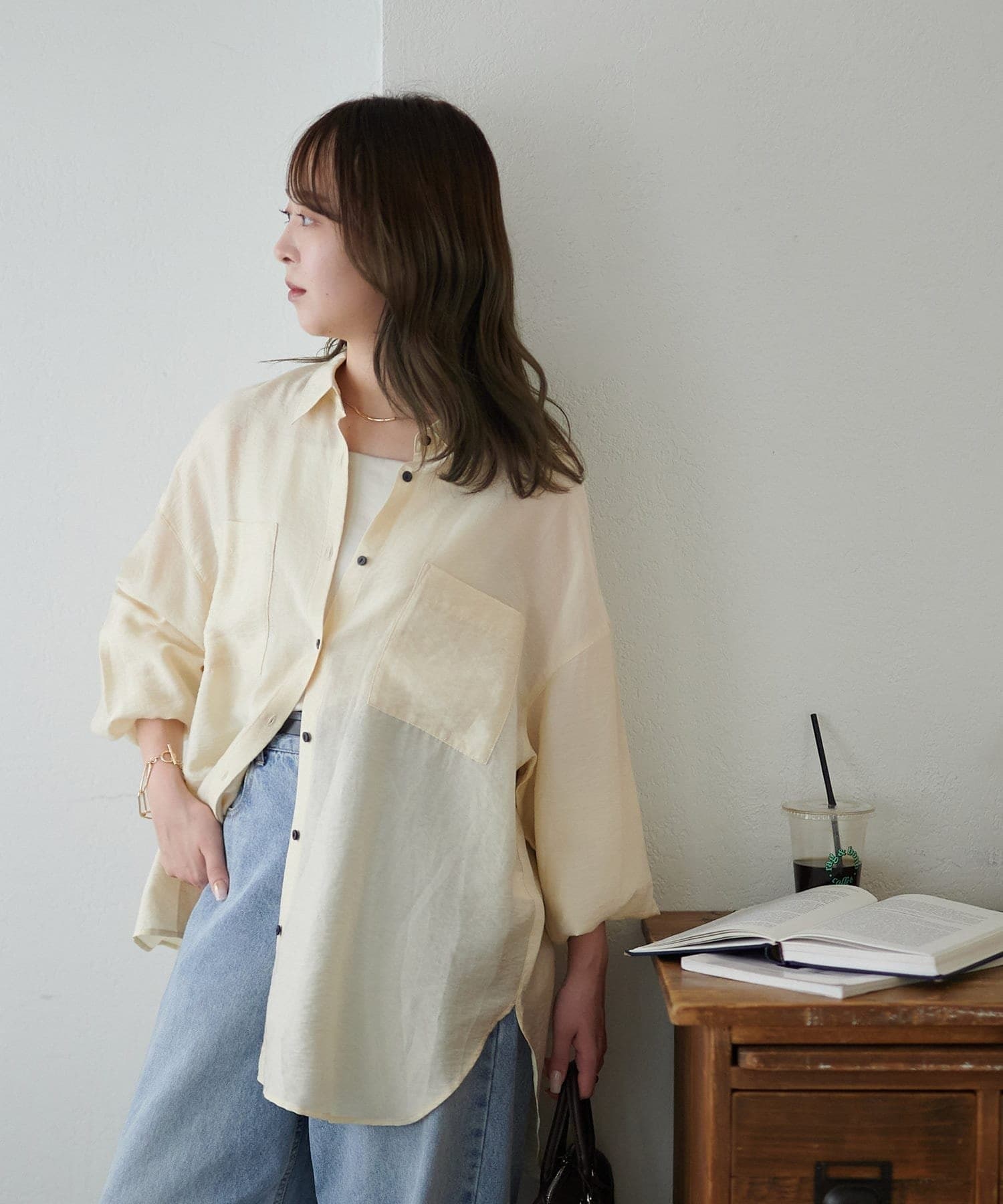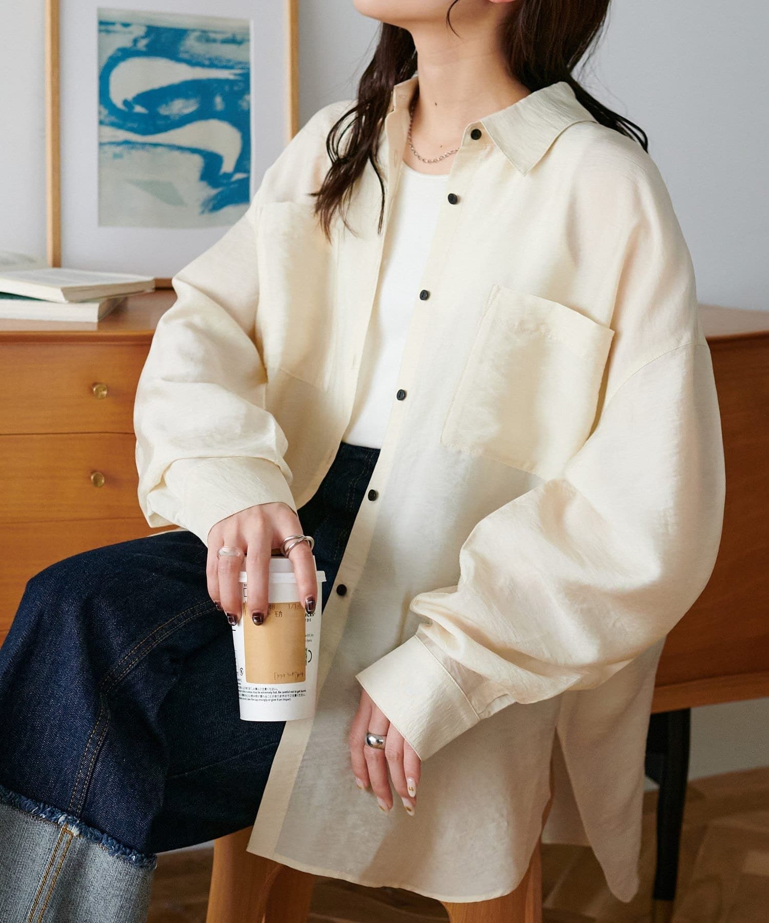 カジュアルながらも、どこか女性らしい雰囲気を漂わせるシアーシャツ。