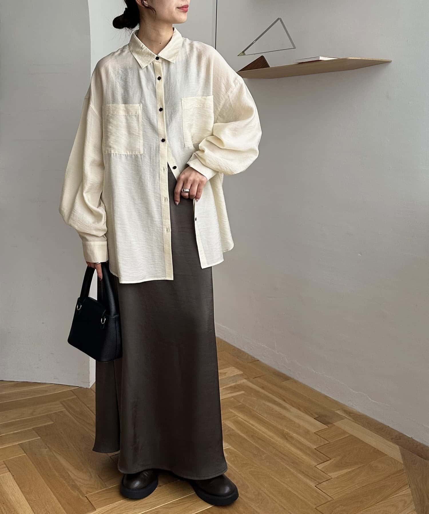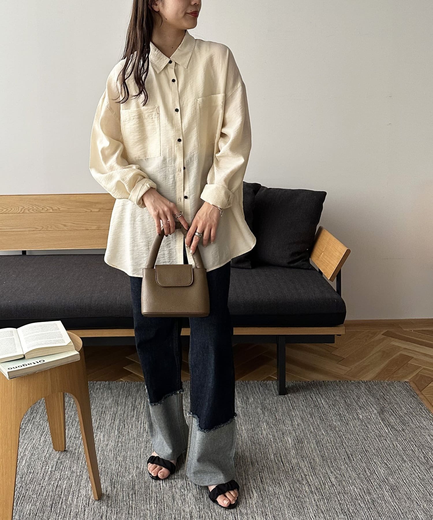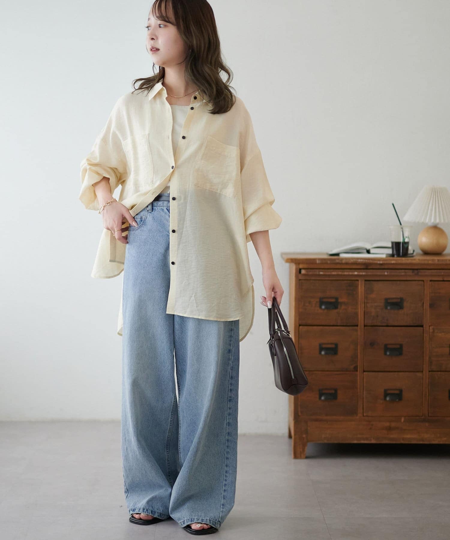 透け感がありますが、大き目のシルエットで腰回りや二の腕周りをカバーしてくれるので、春夏に欠かせないアイテムです!