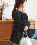 149cmスタッフ:デザイン性があって一枚でも様になるブラウスは腰回りが隠れるので安心感も◎