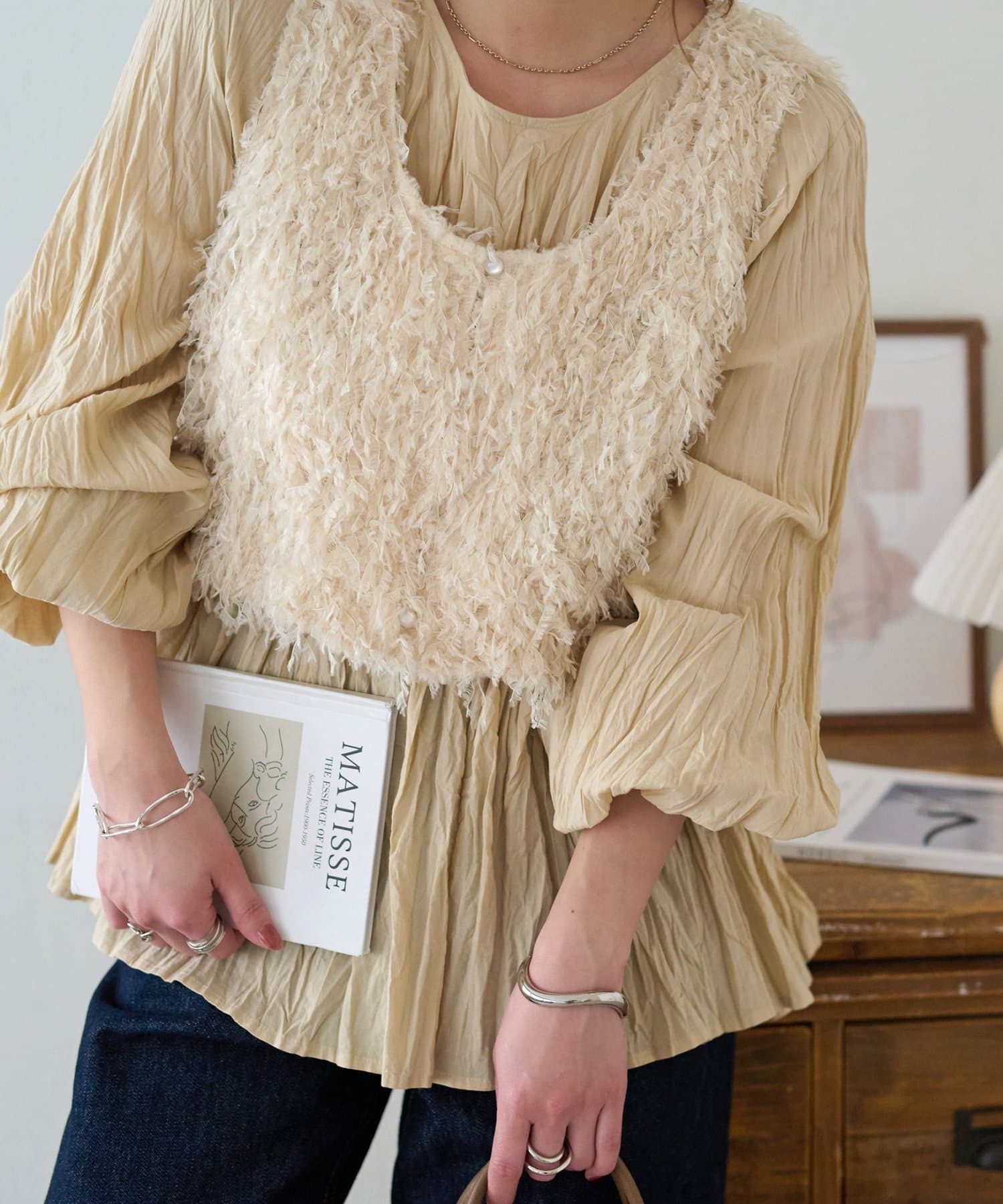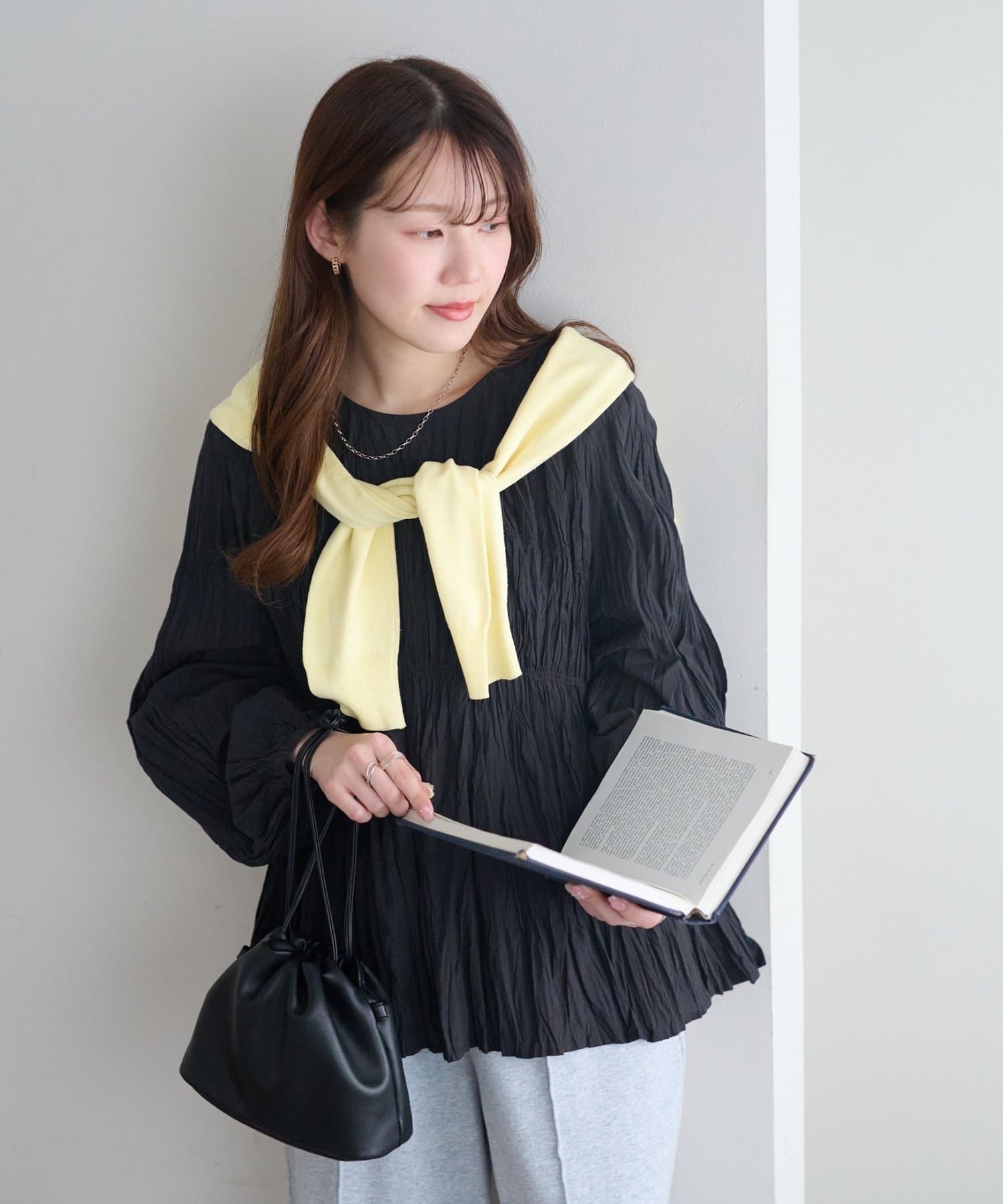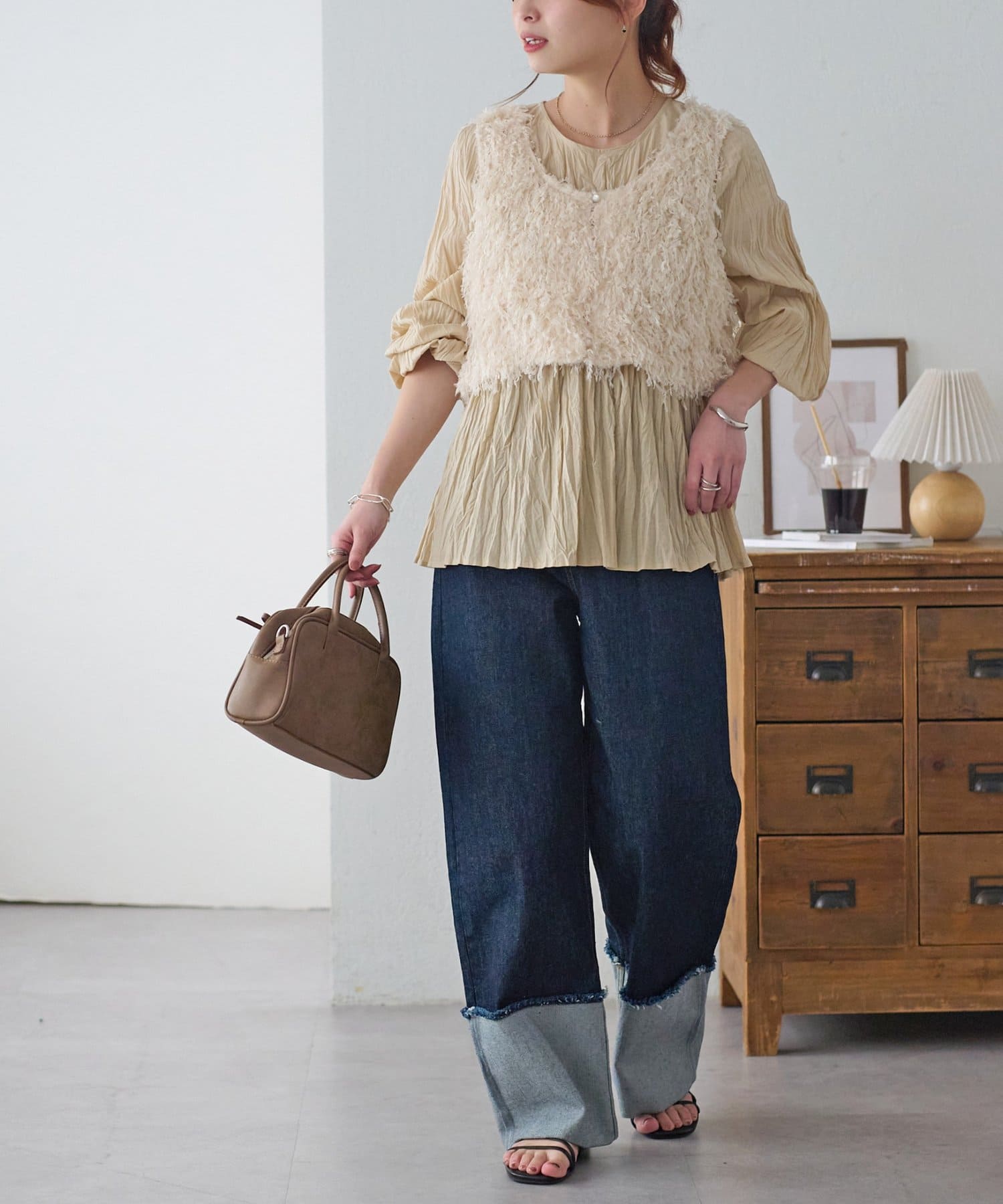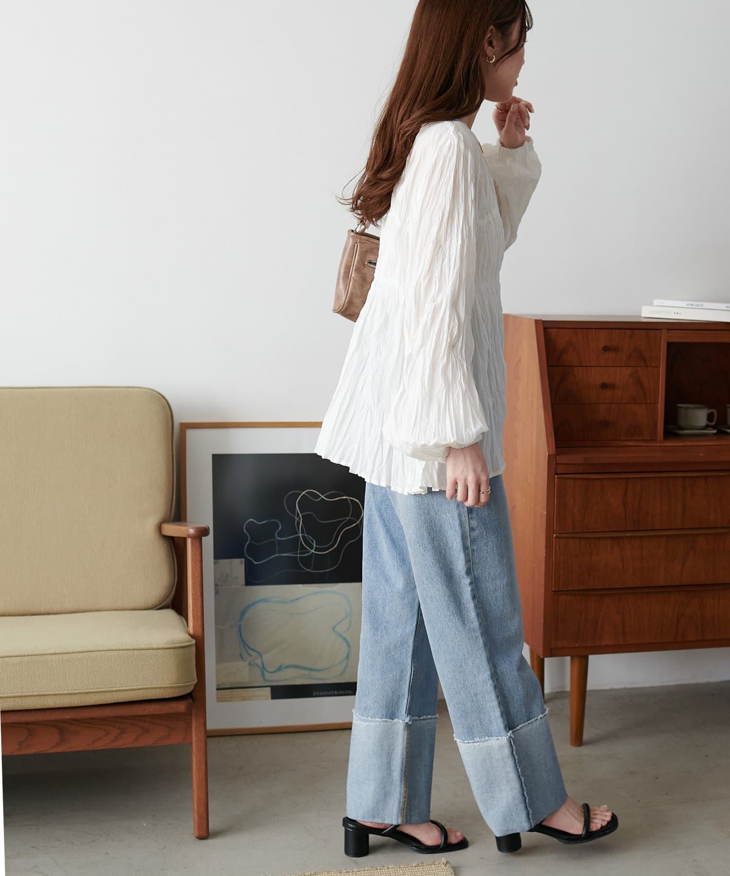 160cmスタッフ:元からシワ加工が施されていることで、気軽にコーデに取り入れることができます!