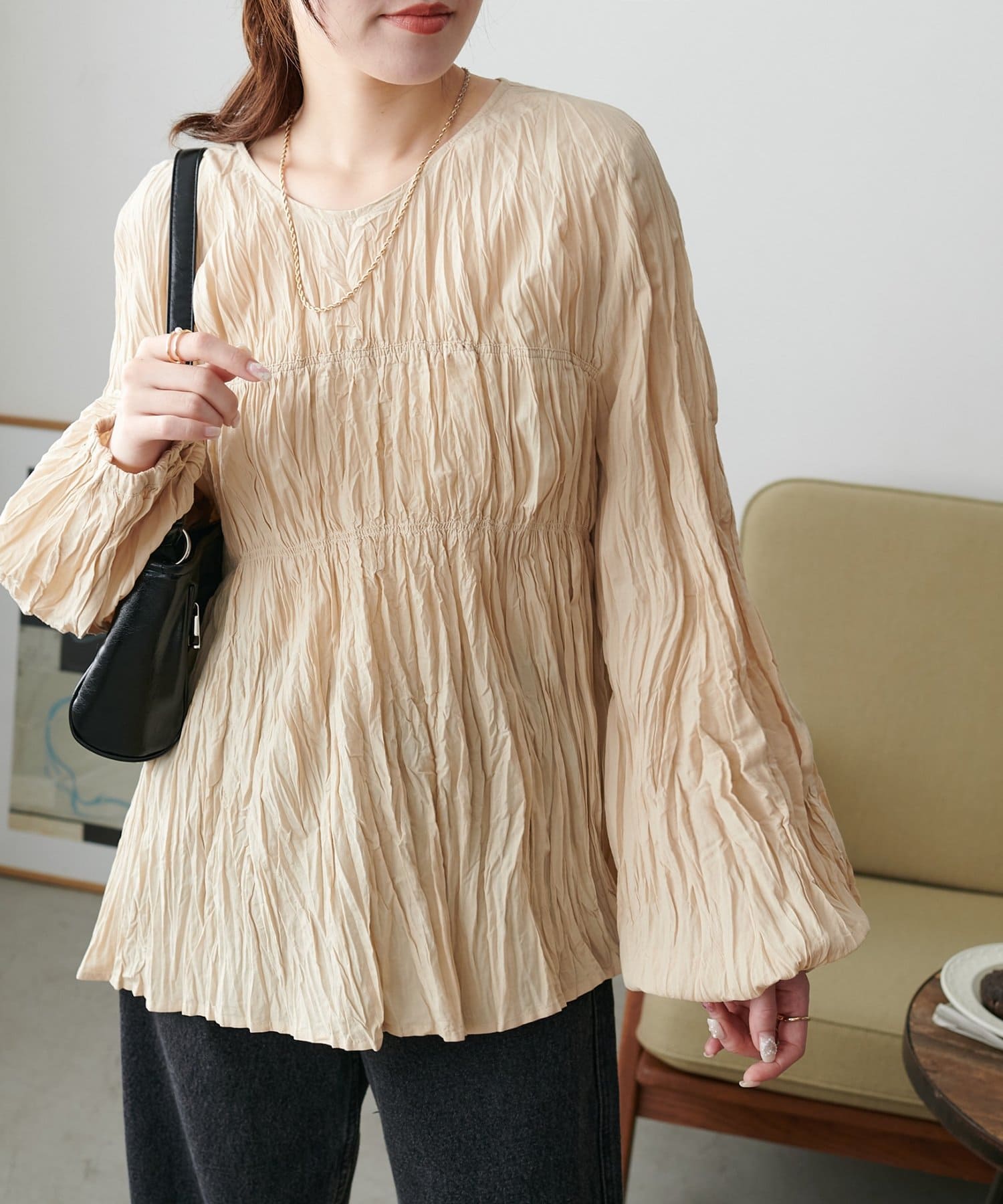【リバイバル】ワッシャーシャーリングブラウス