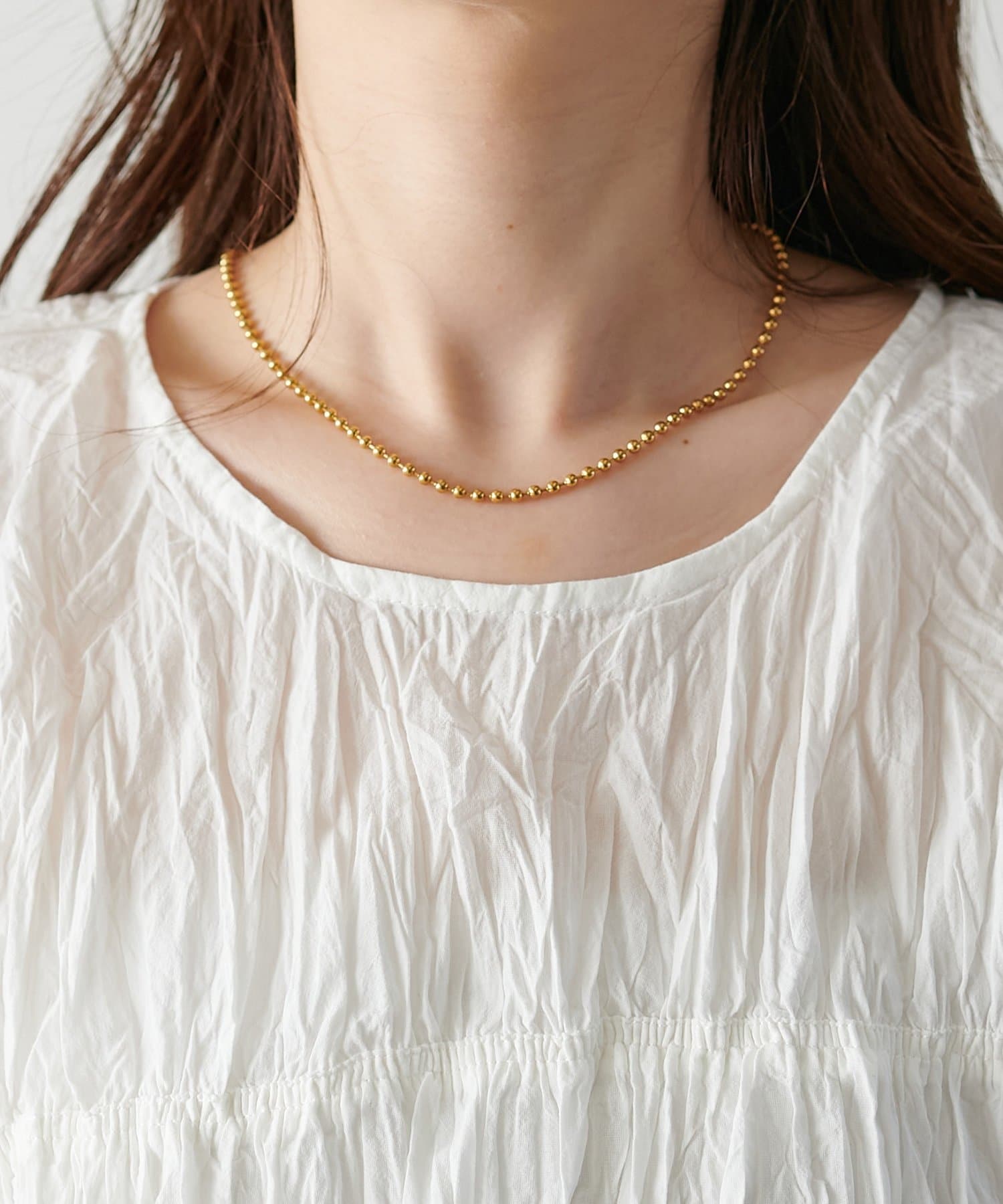 胸元にシャーリング加工が施されたことで、メリハリのある雰囲気を楽しめます!