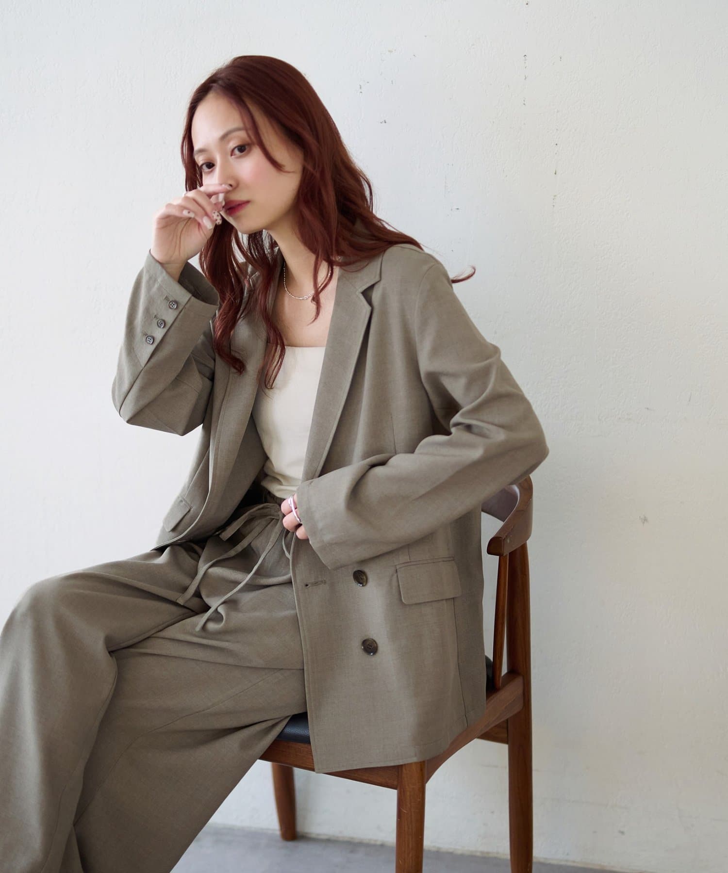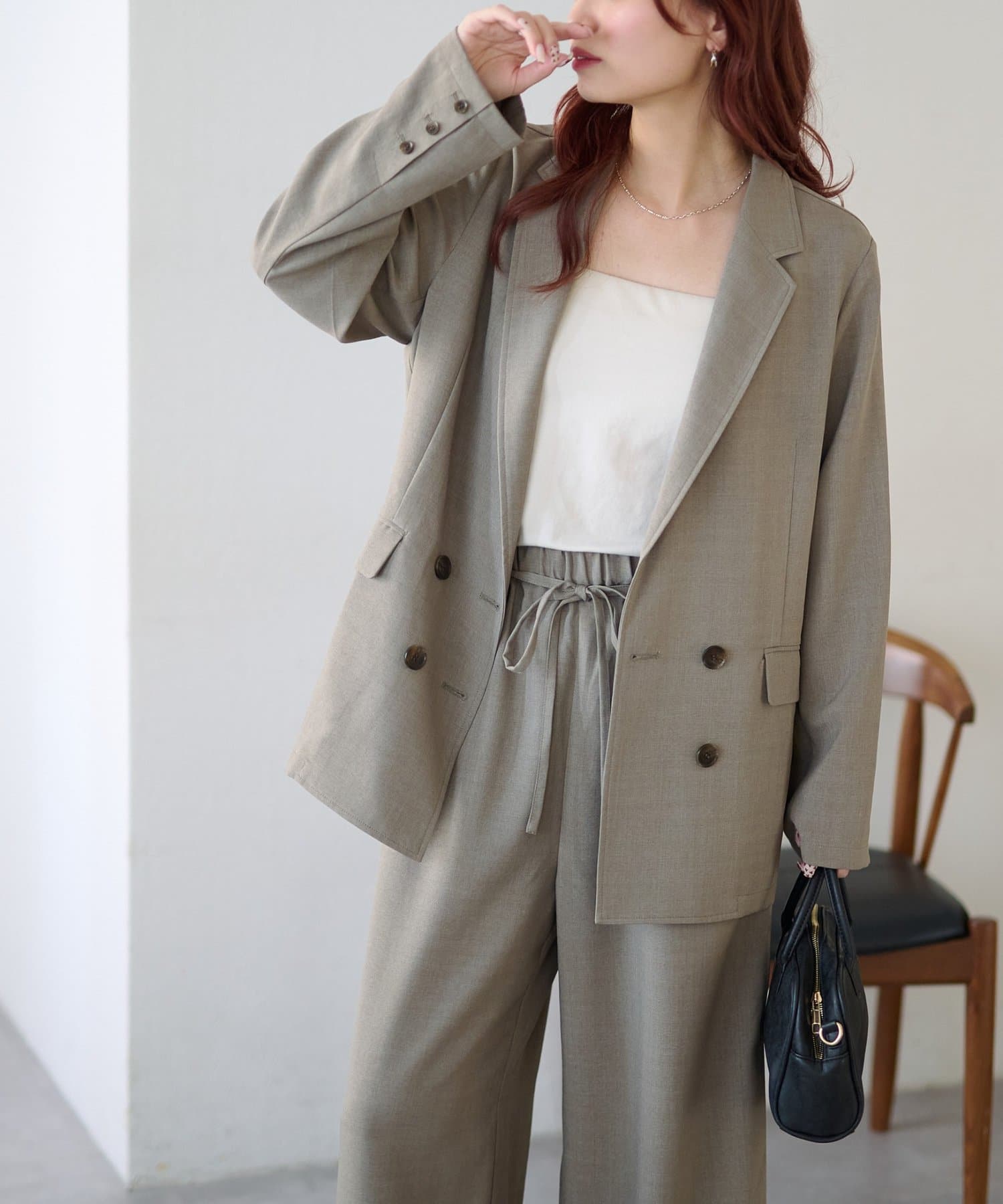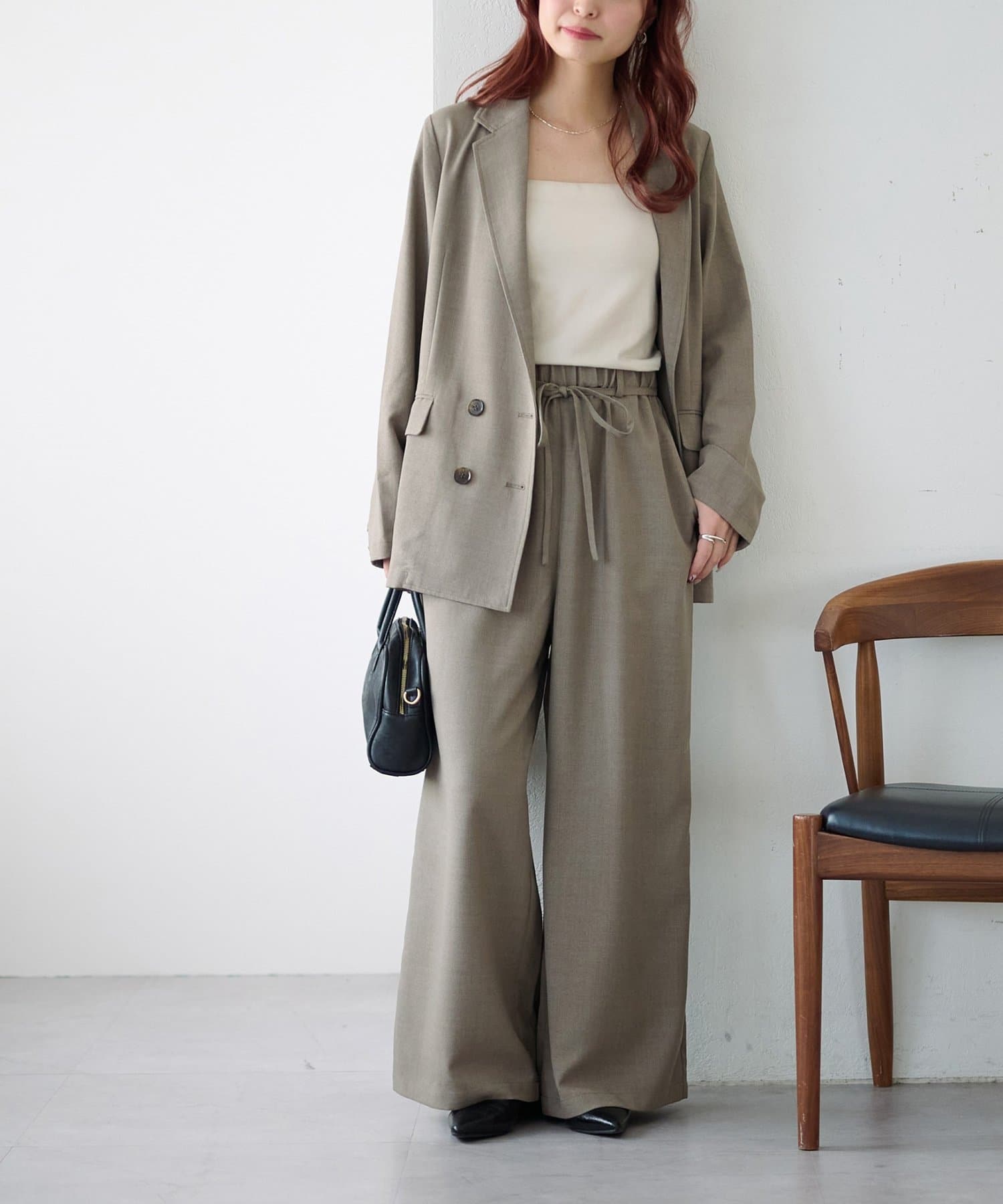 ・同素材のテックリネンベルト付ワイドパンツとセットアップ可能