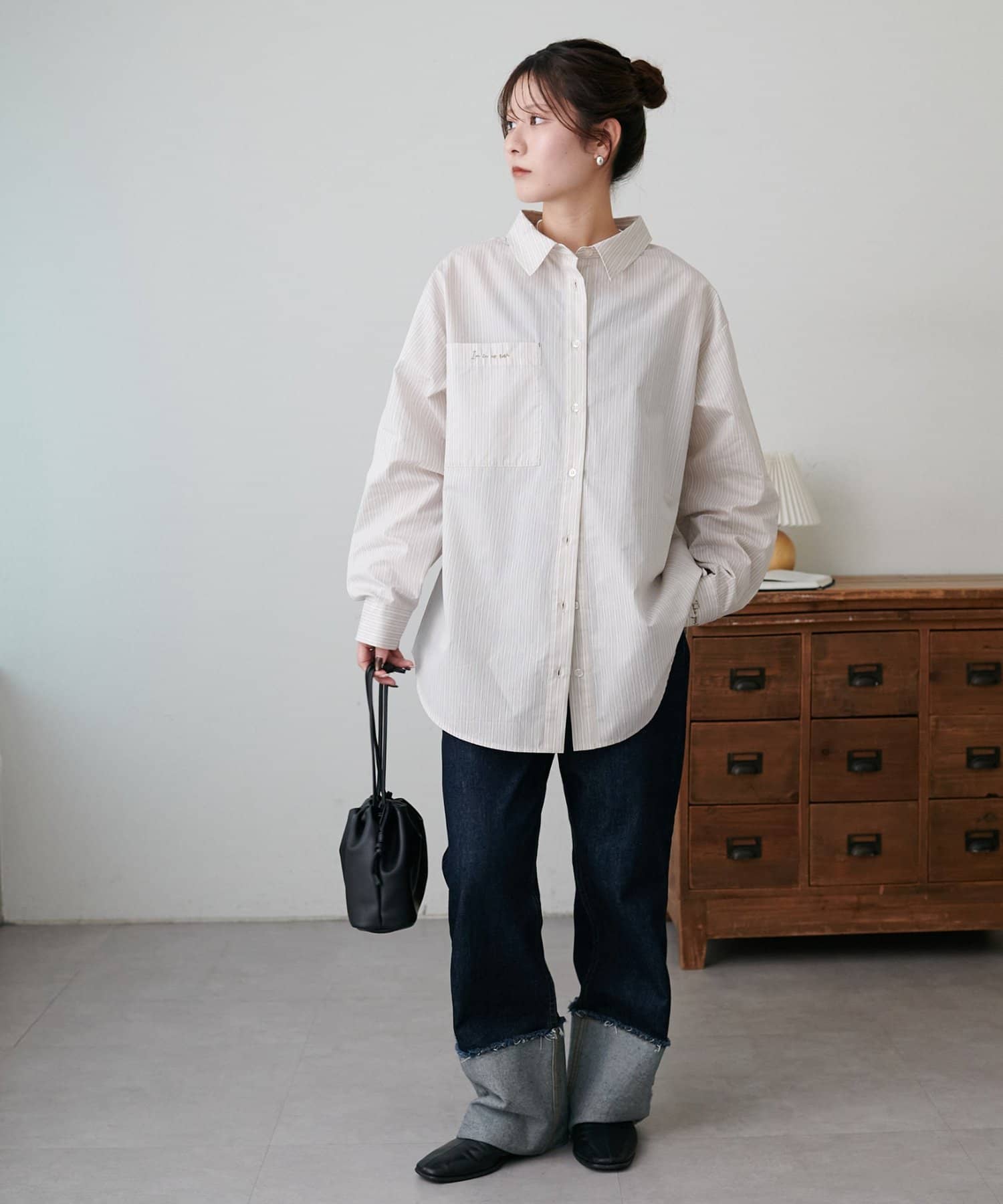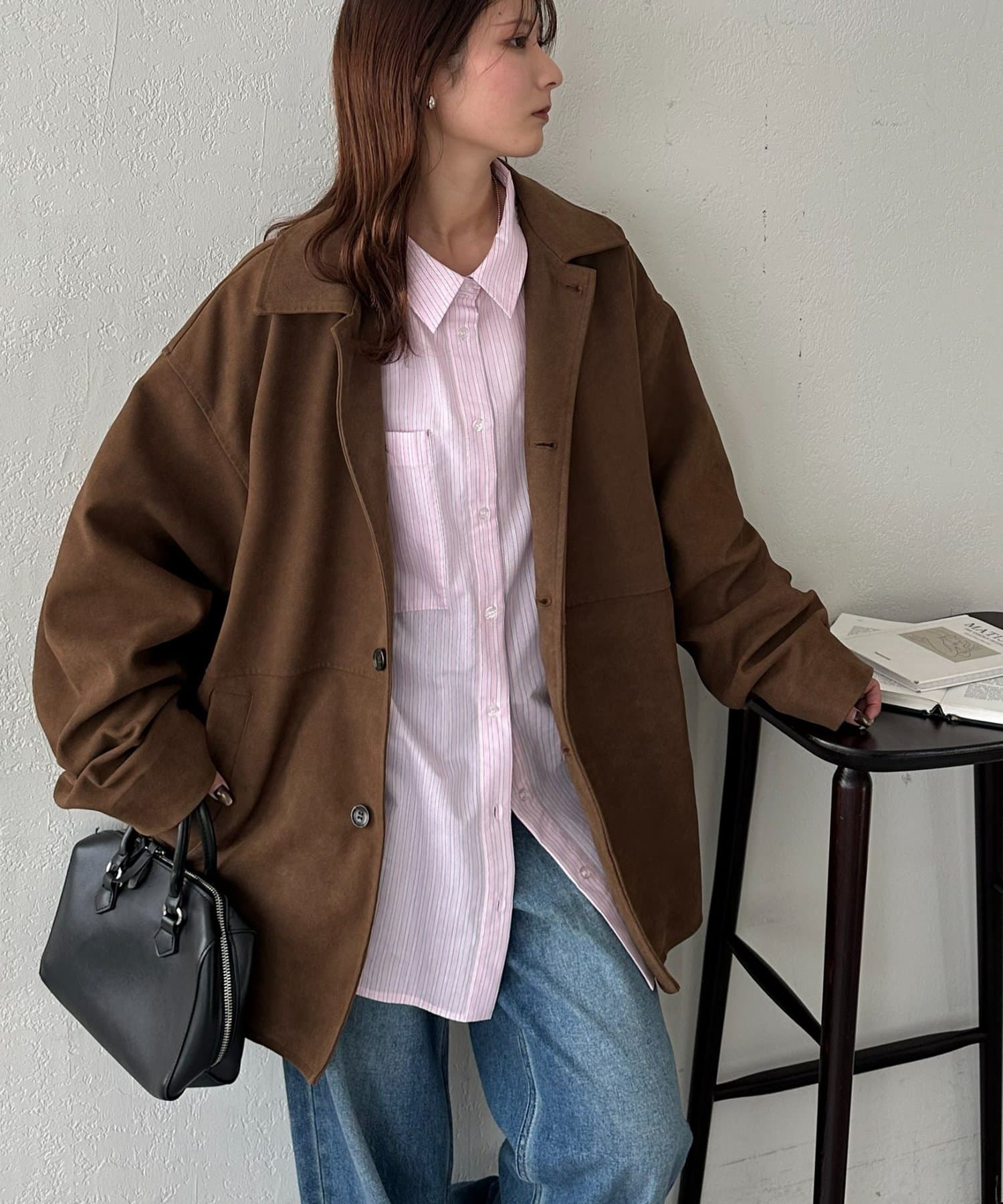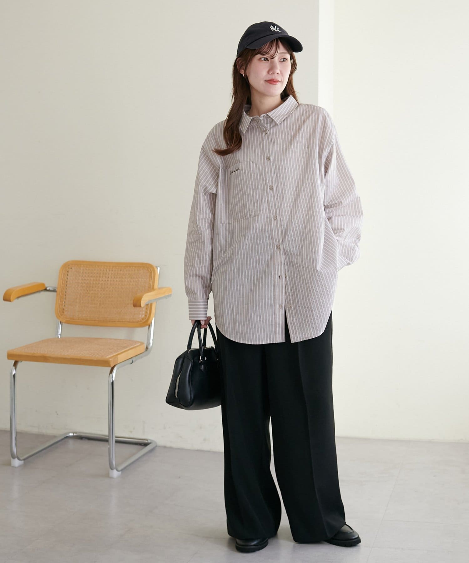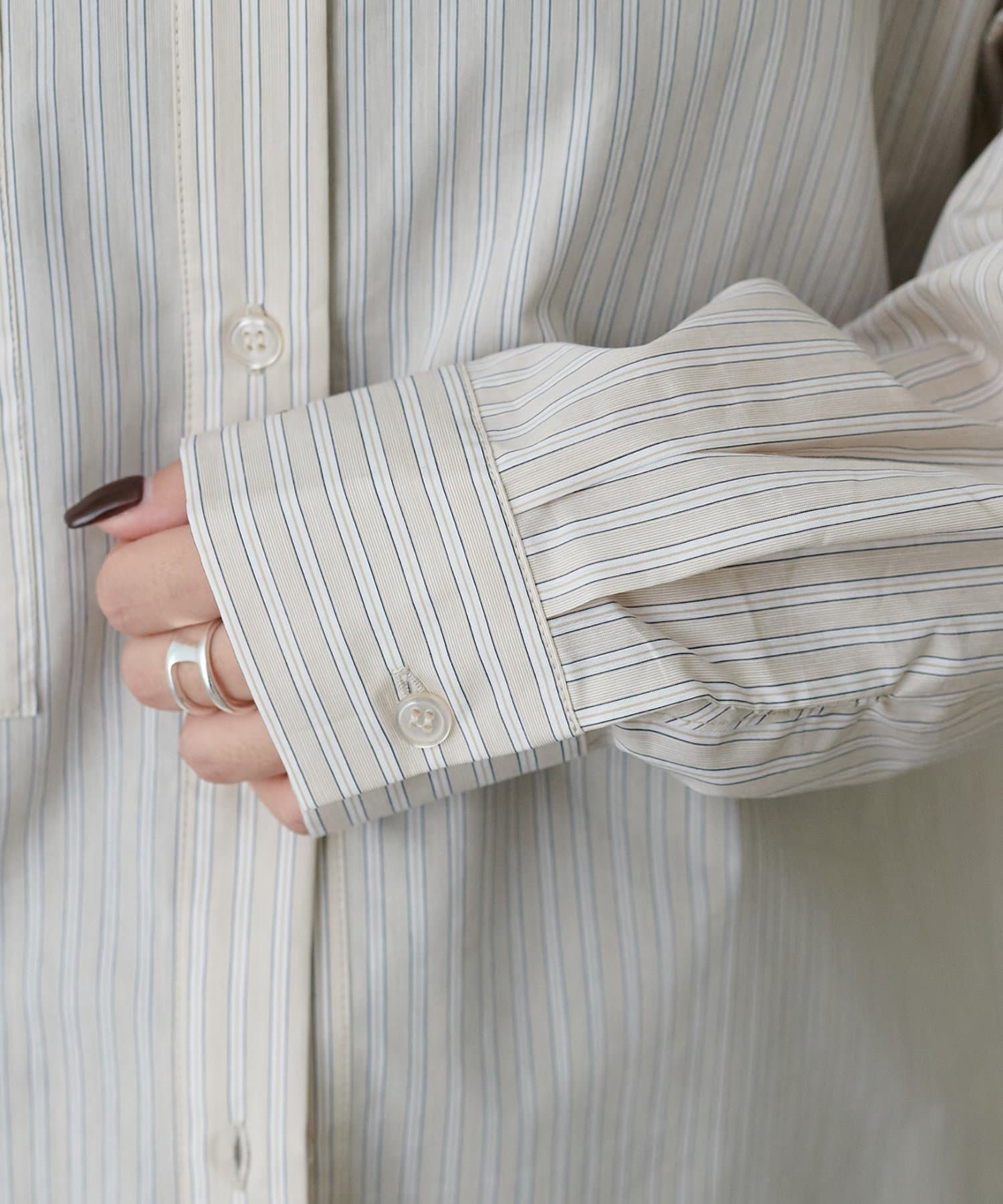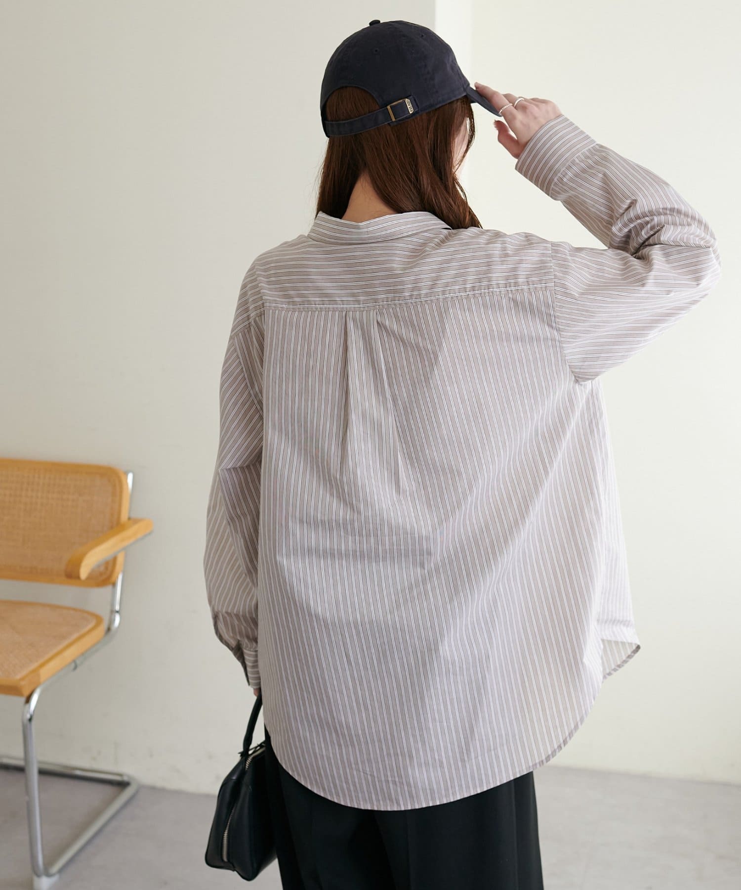 158cmスタッフ:前を閉めればきちんと感のあるシャツスタイルに、開けて羽織るとラフなカジュアルコーデに。デイリーからオフィスまで幅広く活躍する一枚です!