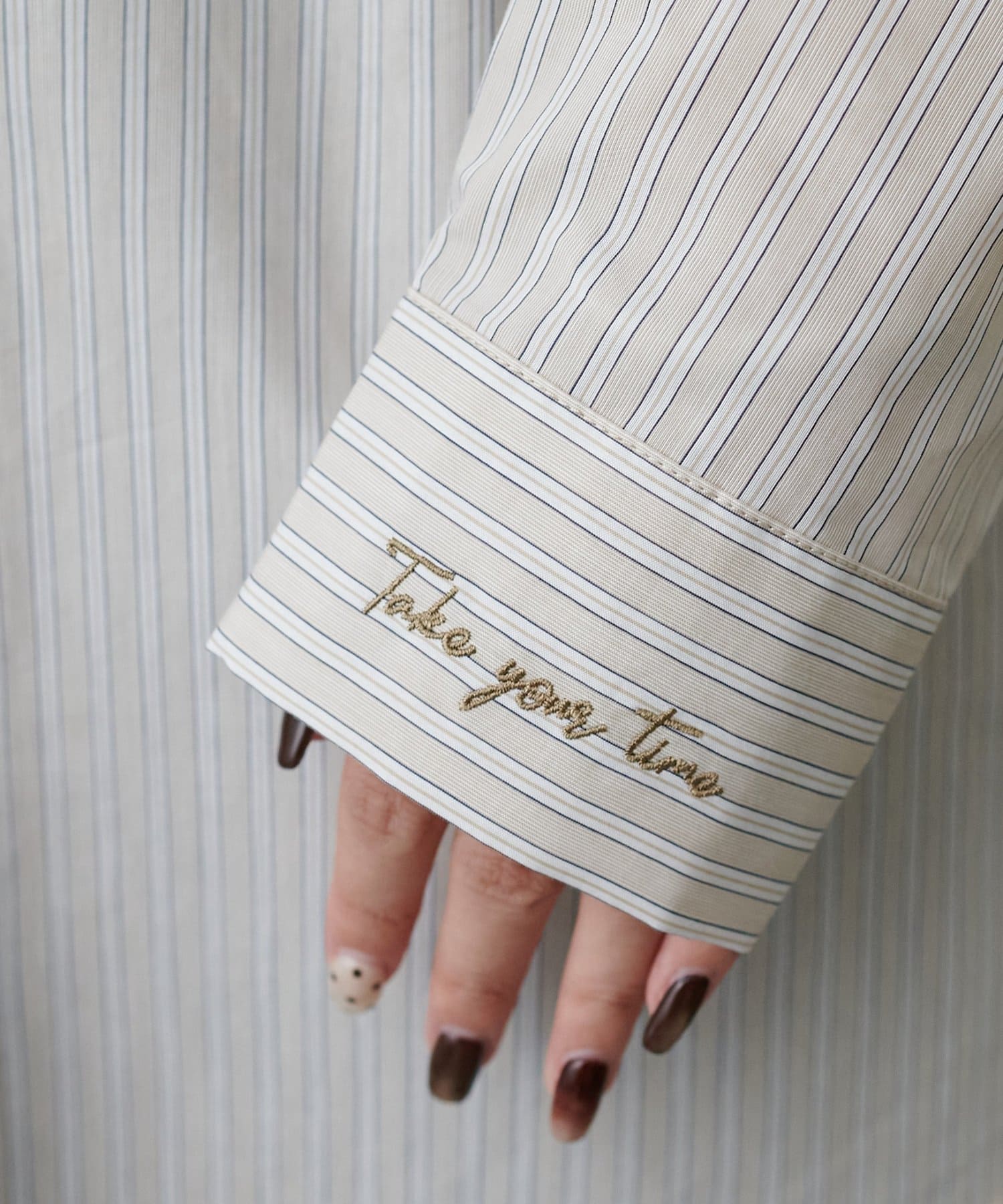 ・胸元と袖口に施された刺繍がさり気ないポイントに
