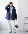 160cmスタッフ:生地にほどよいハリがあるため、1枚で着てもシルエットがきれいに決まります。ボタンを開けて羽織としても使えるので、ロングシーズン活躍しそうです♪
