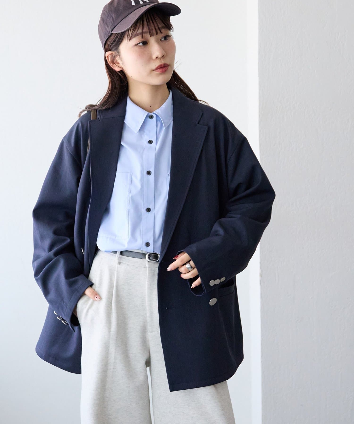・ゆったりオーバーサイズで体のラインを拾わず、抜け感のあるシルエットに