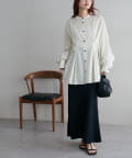 158cmスタッフ:袖のボリューム感で、ゆったりしつつも女性らしいシルエットに見えます。タックの立体感がコーデに動きを出してくれるので、一枚でこなれた印象に♪