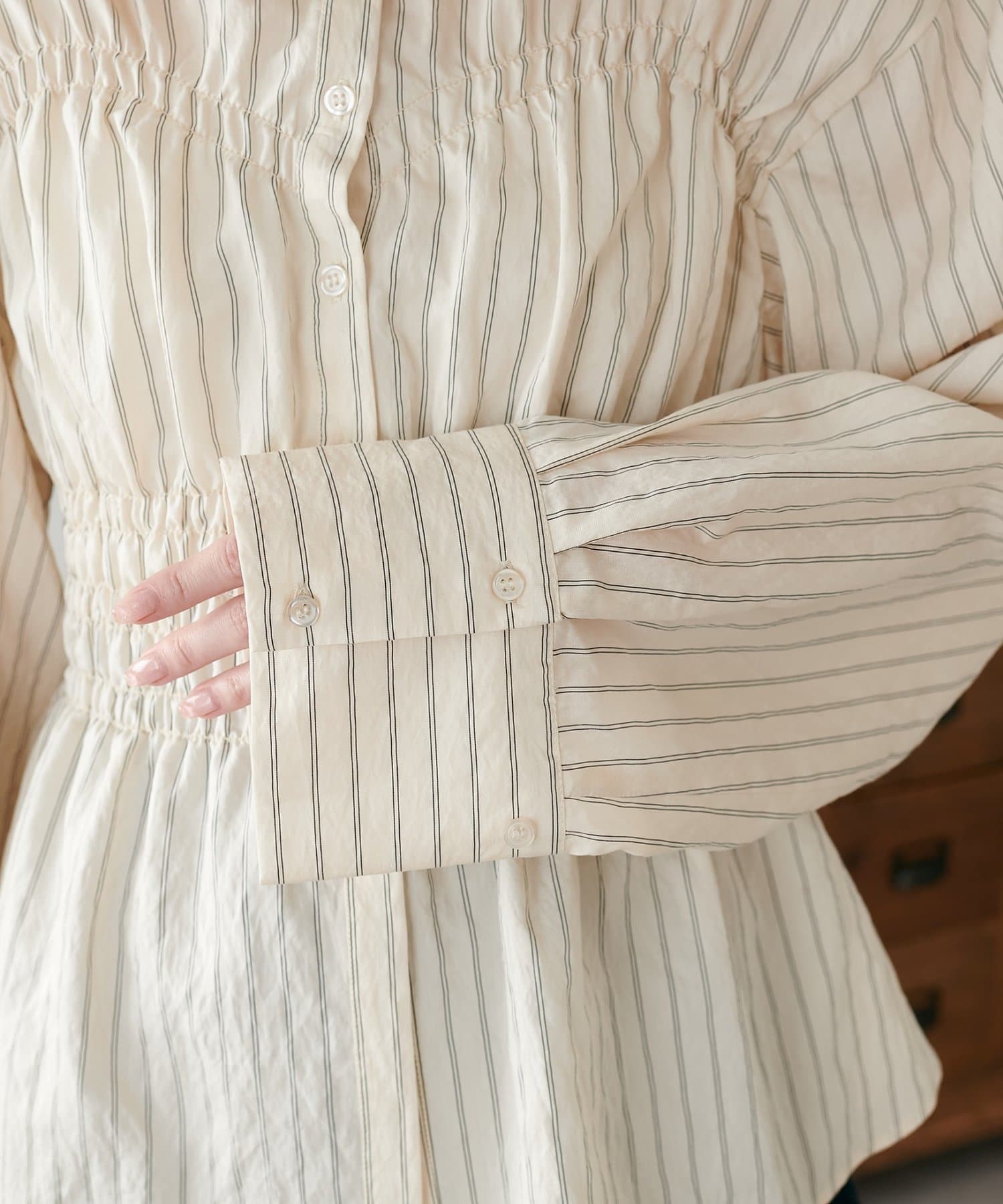 ・ウエストのシャーリングが立体感を生み、自然にスタイルアップ♪