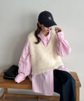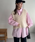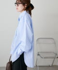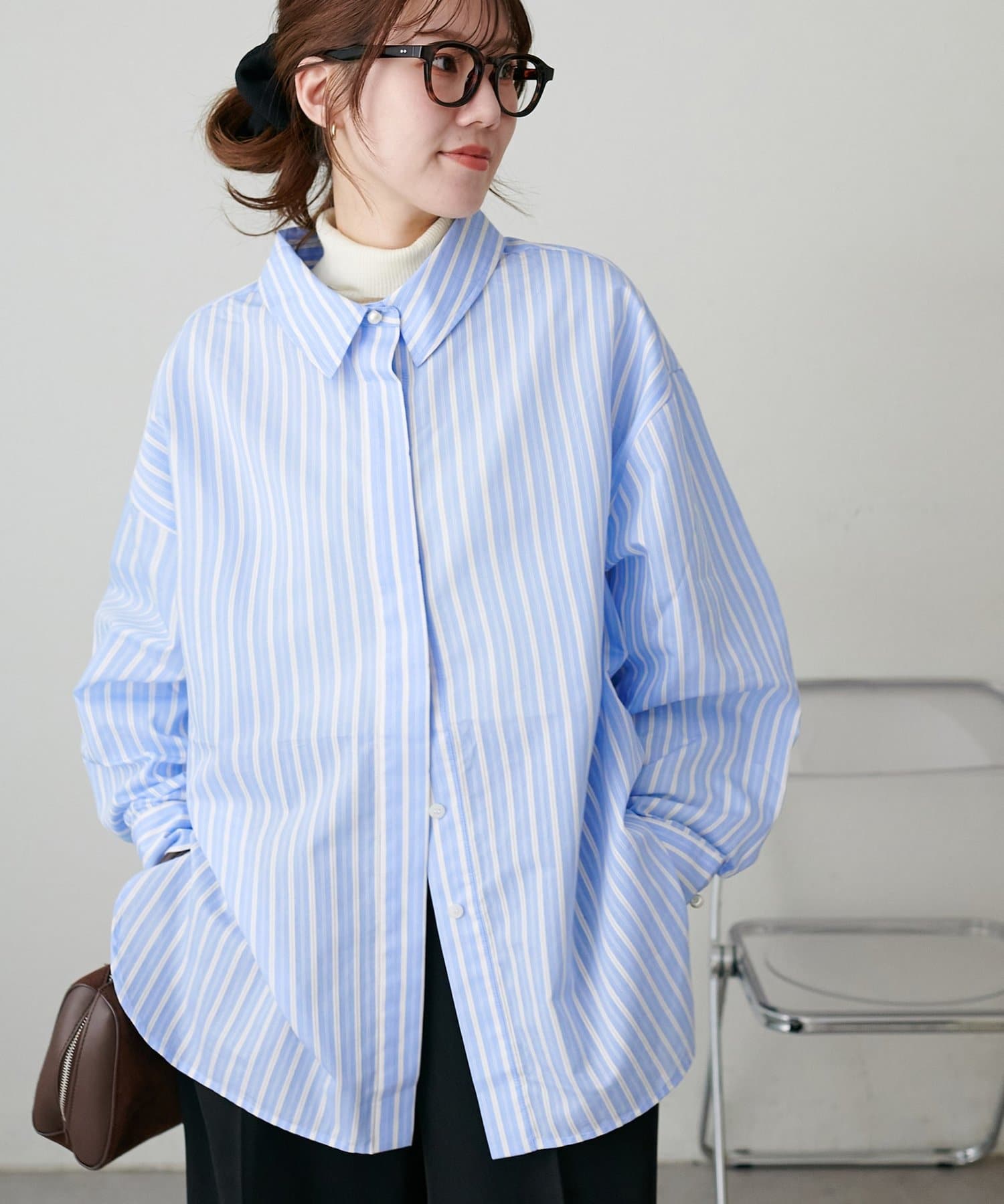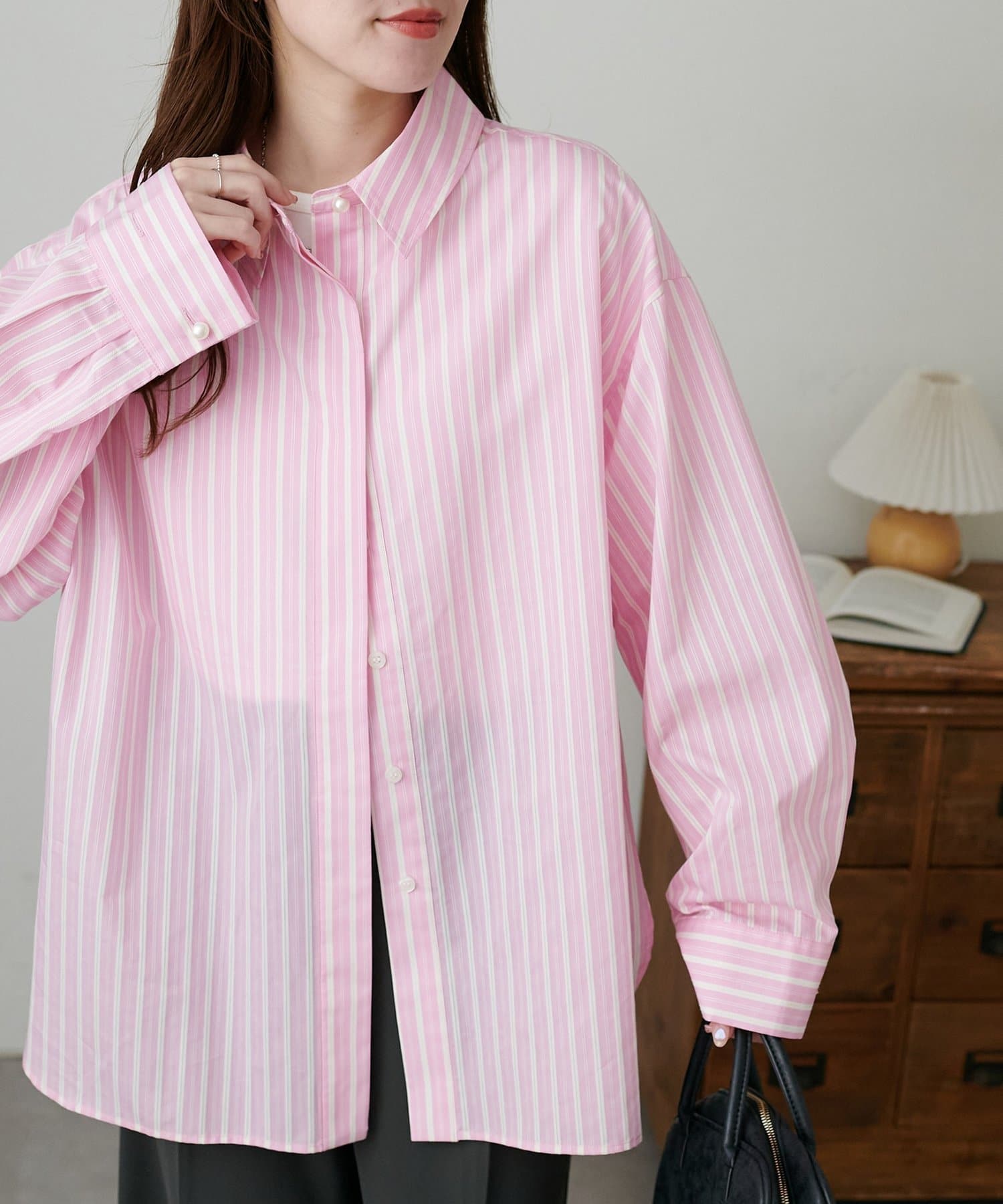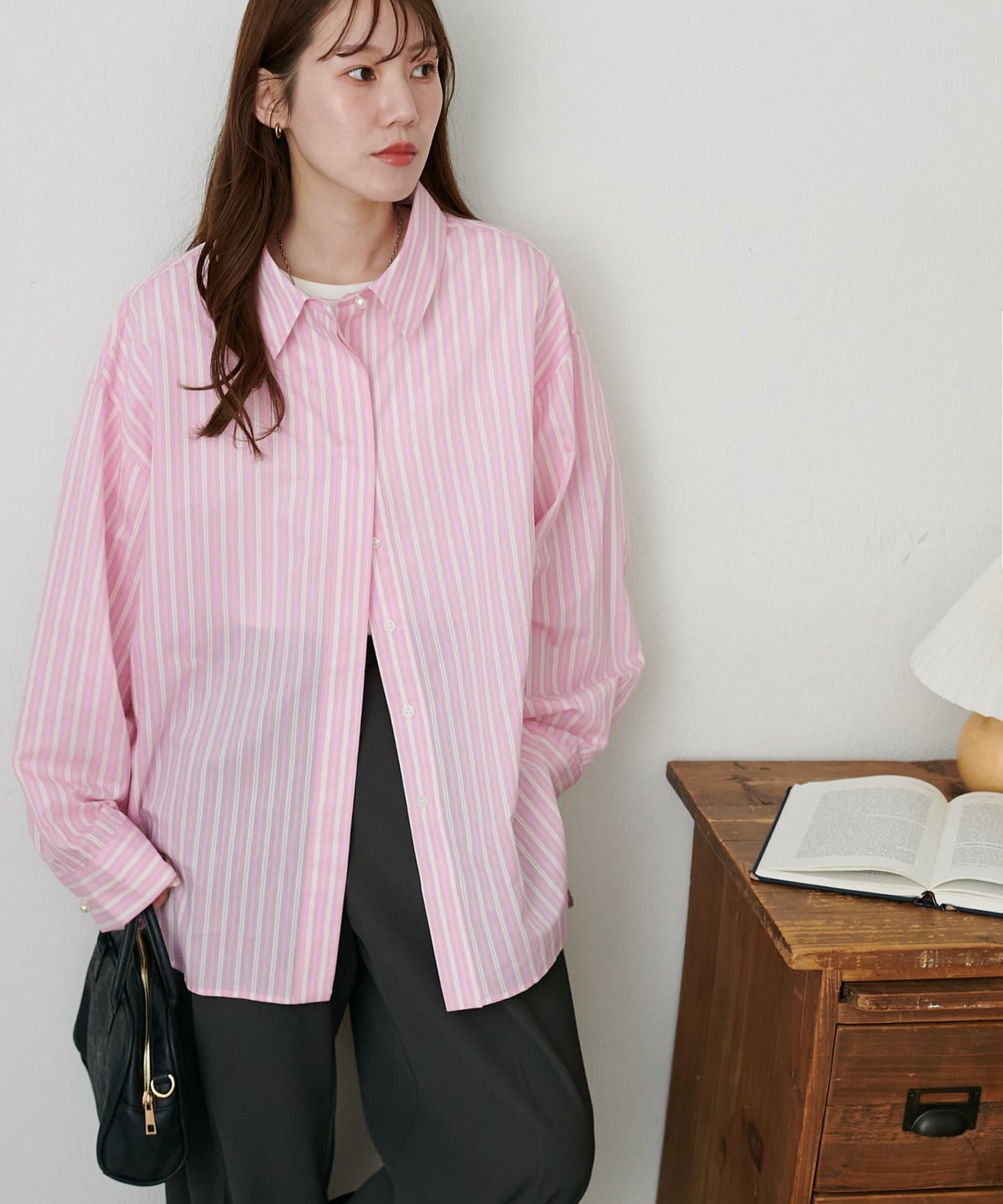 上品パールで仕上げた2WAYストライプオーバーシャツ