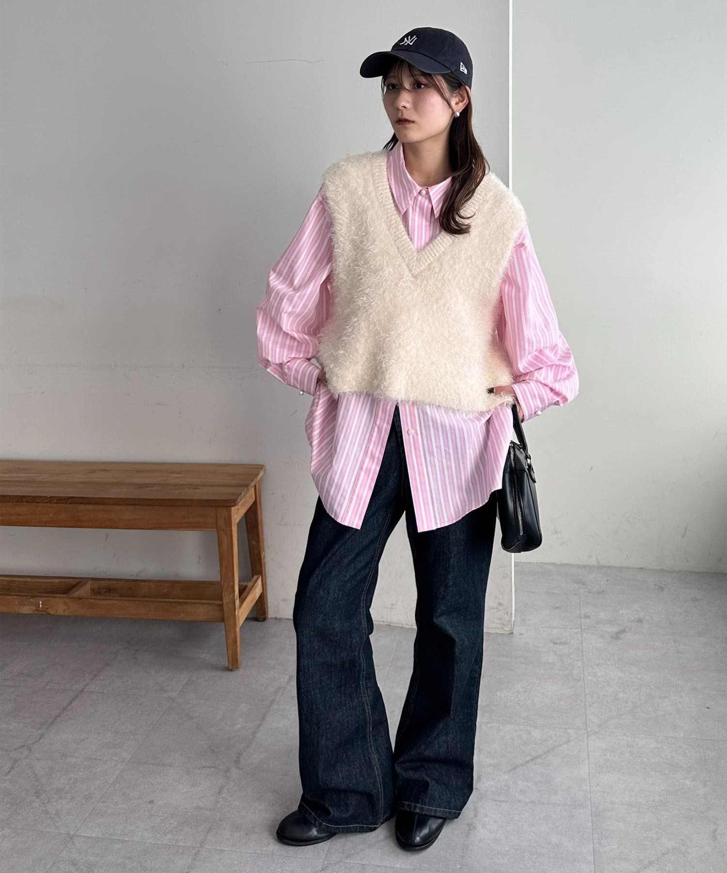 サイドに大きくスリットが入っていて抜け感が出るので、春はベストなどをレイヤードして楽しみたいです。