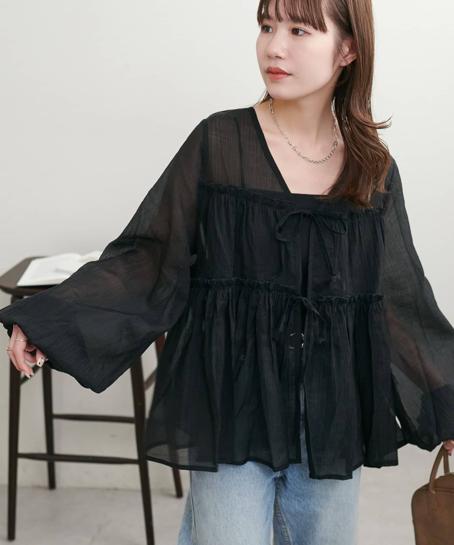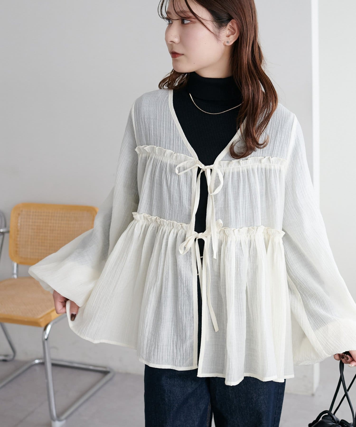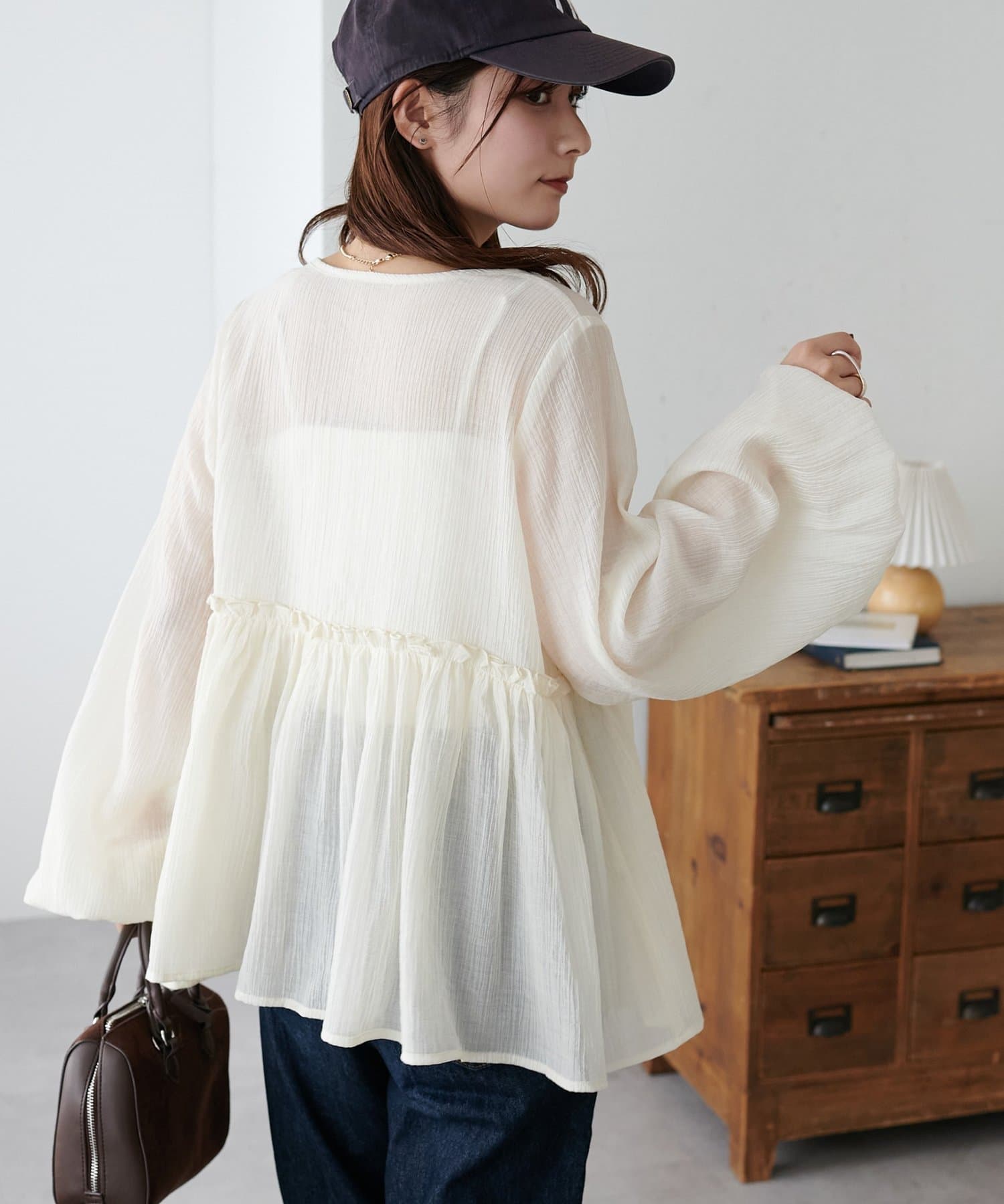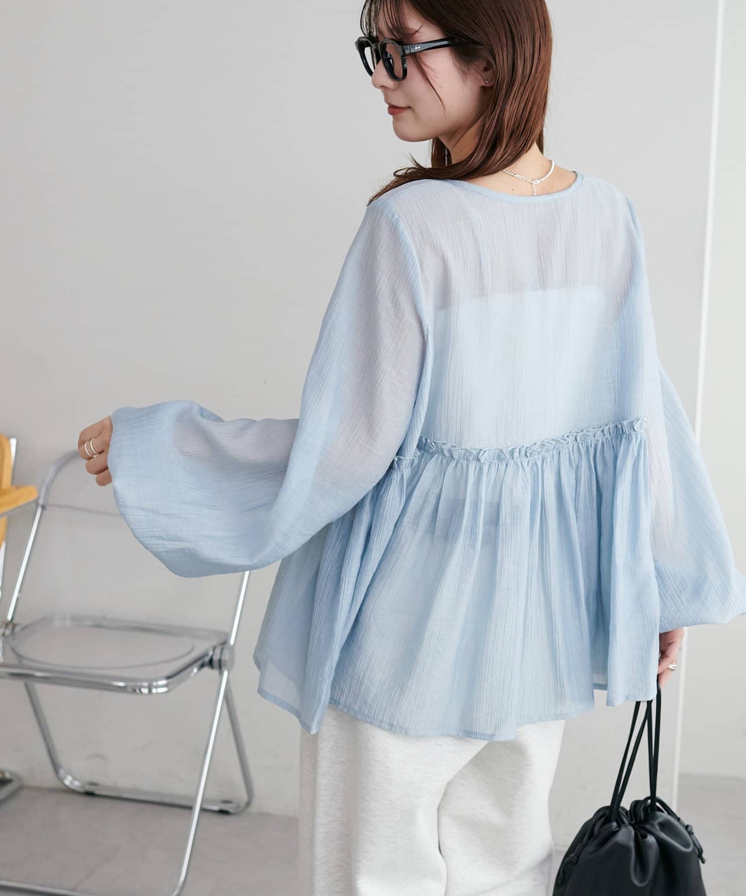 ・ほんのり透け感のあるシアー素材で柔らかく女性らしい印象に