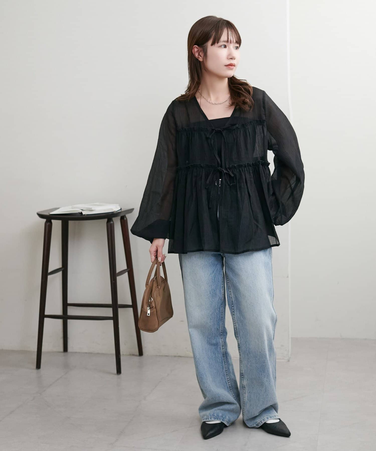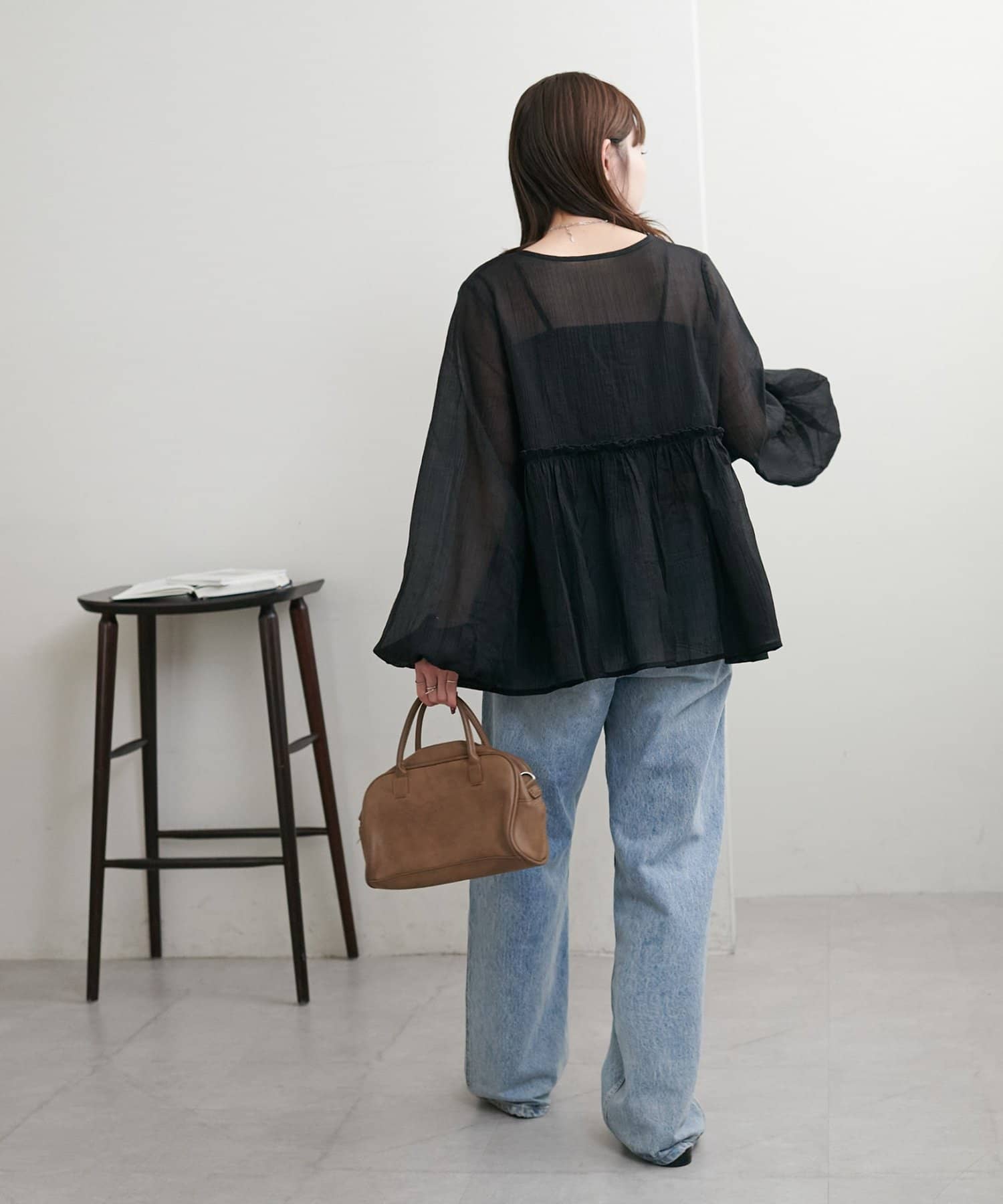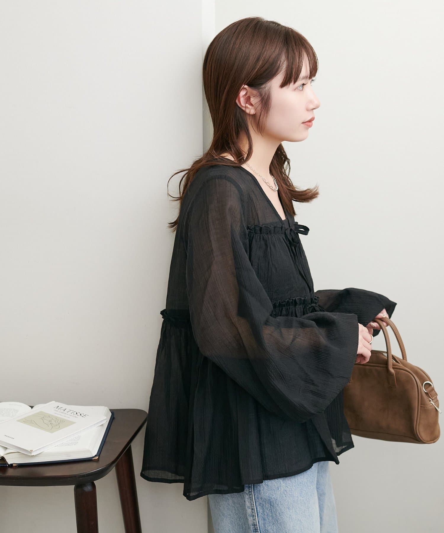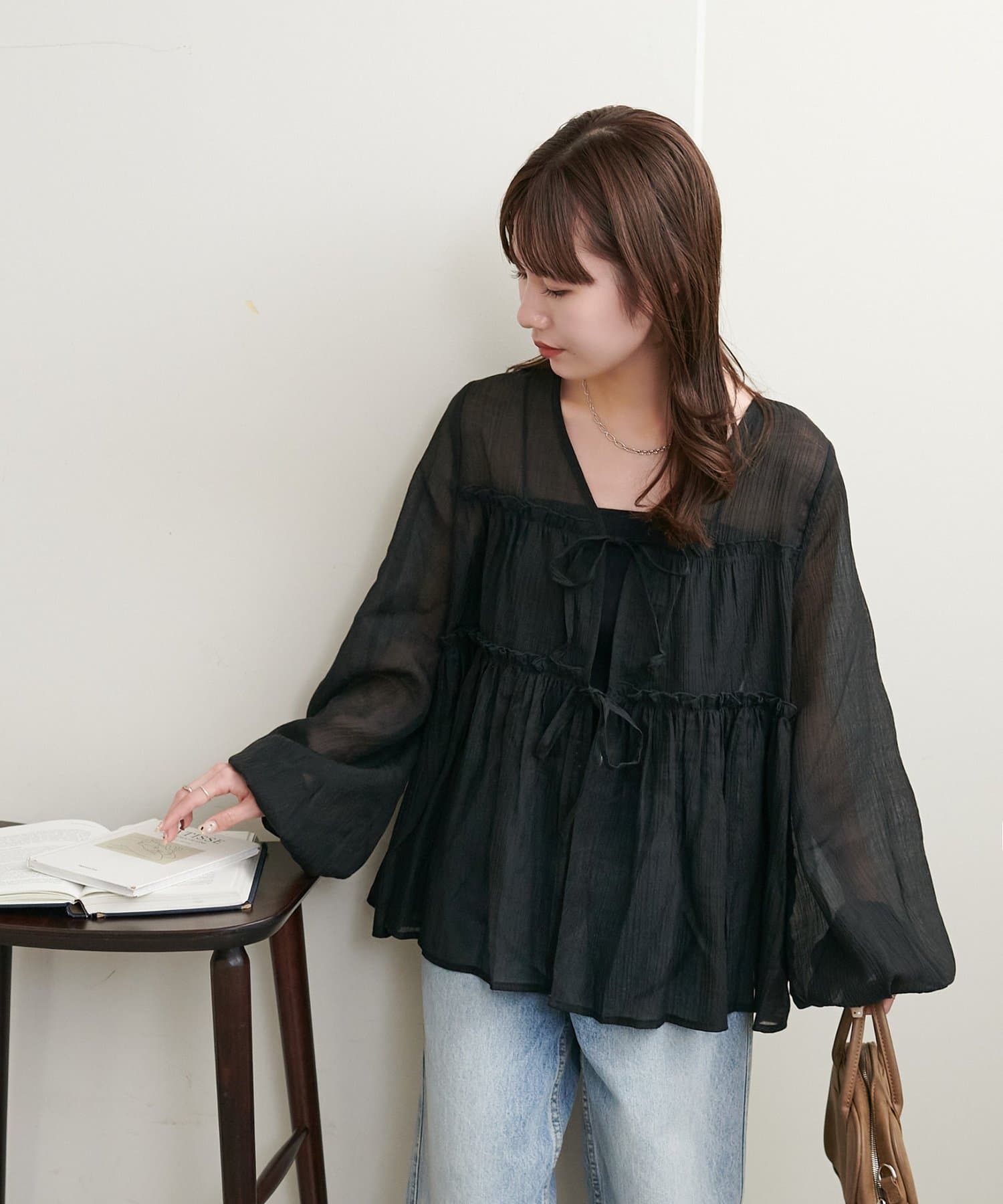 ・ほんのり透け感のあるシアー素材で柔らかく女性らしい印象に