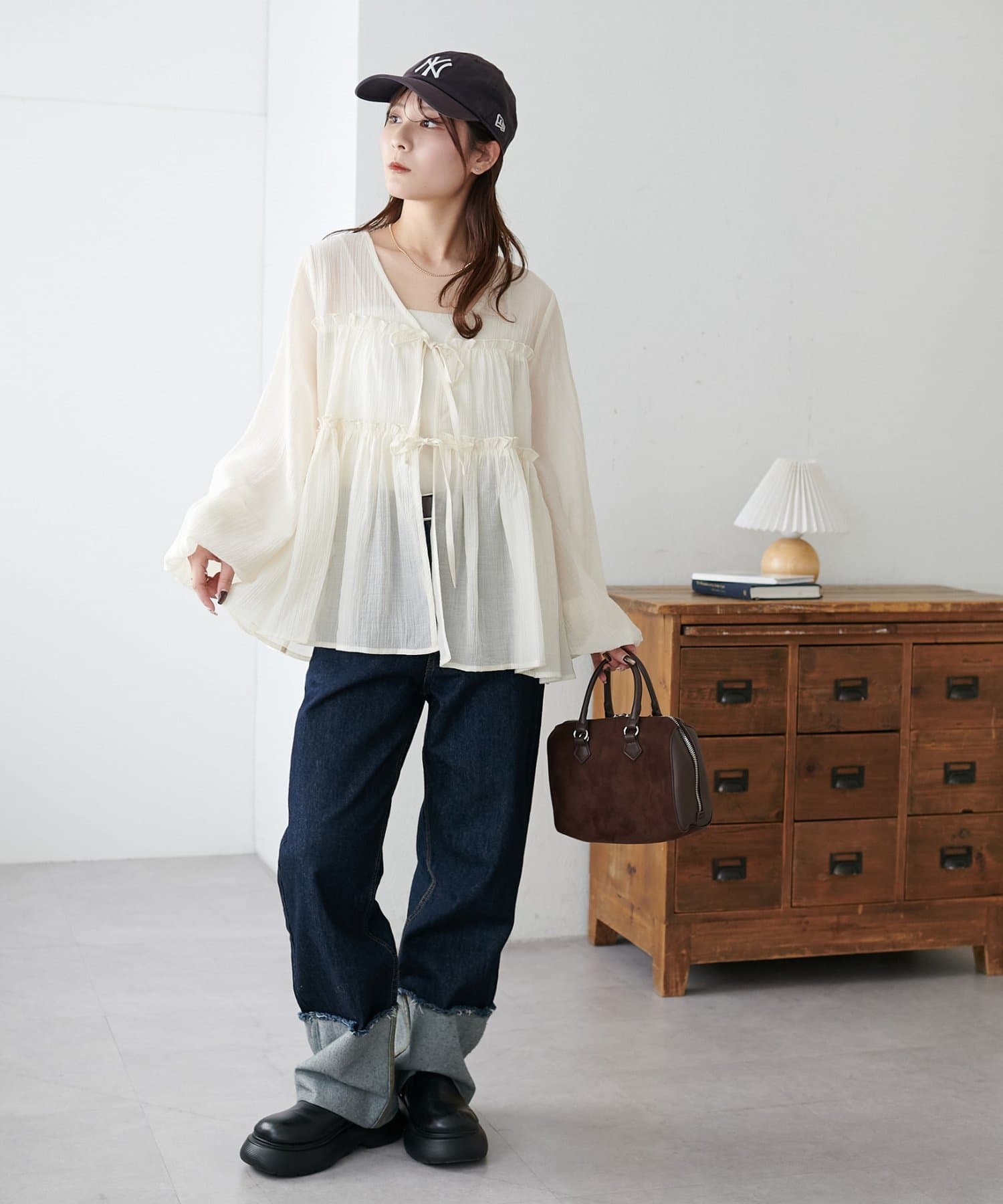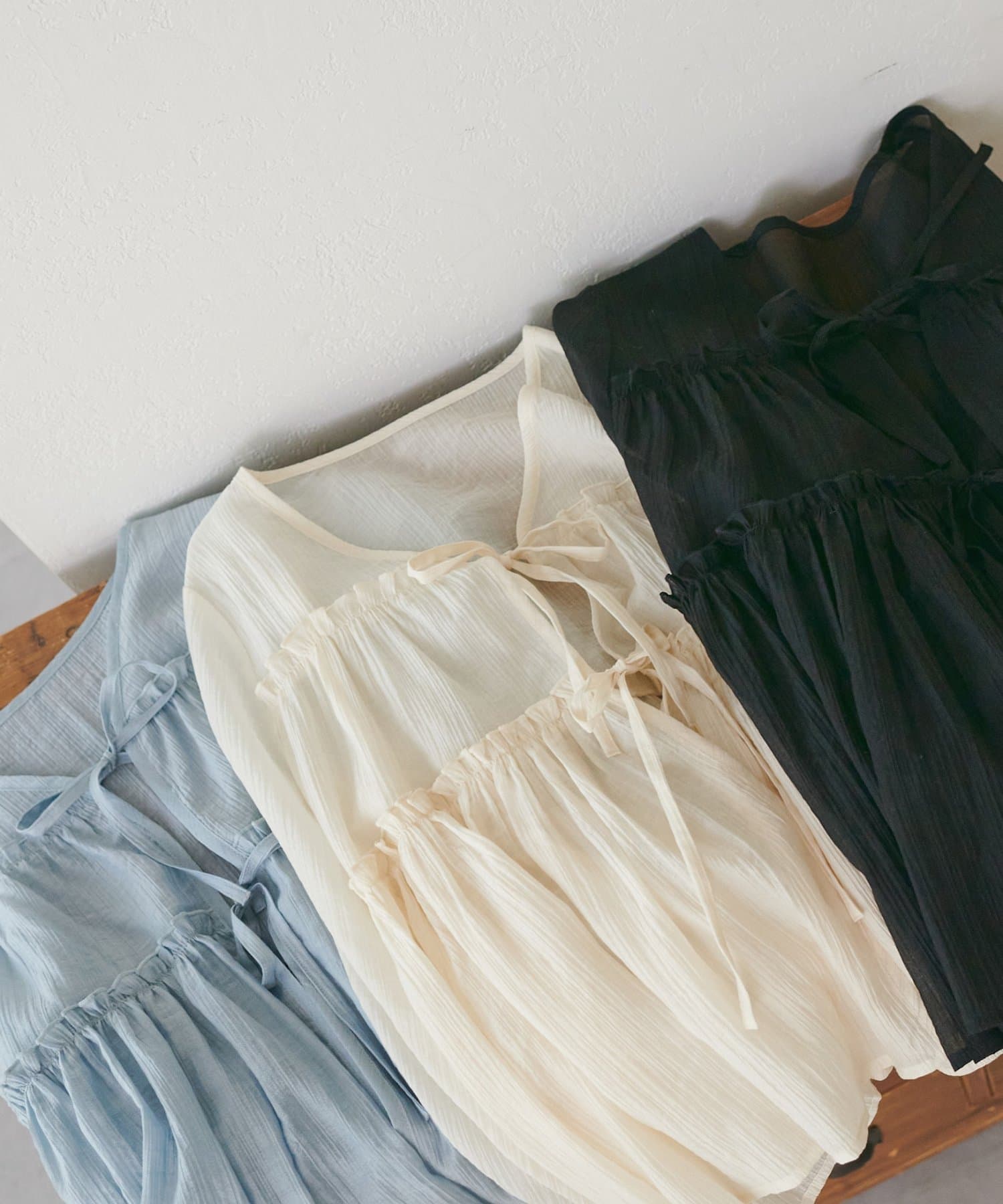 ・キャミ・タンクをインナーにして前リボンを引き立てる、抜け感のある着こなしがおすすめ♪