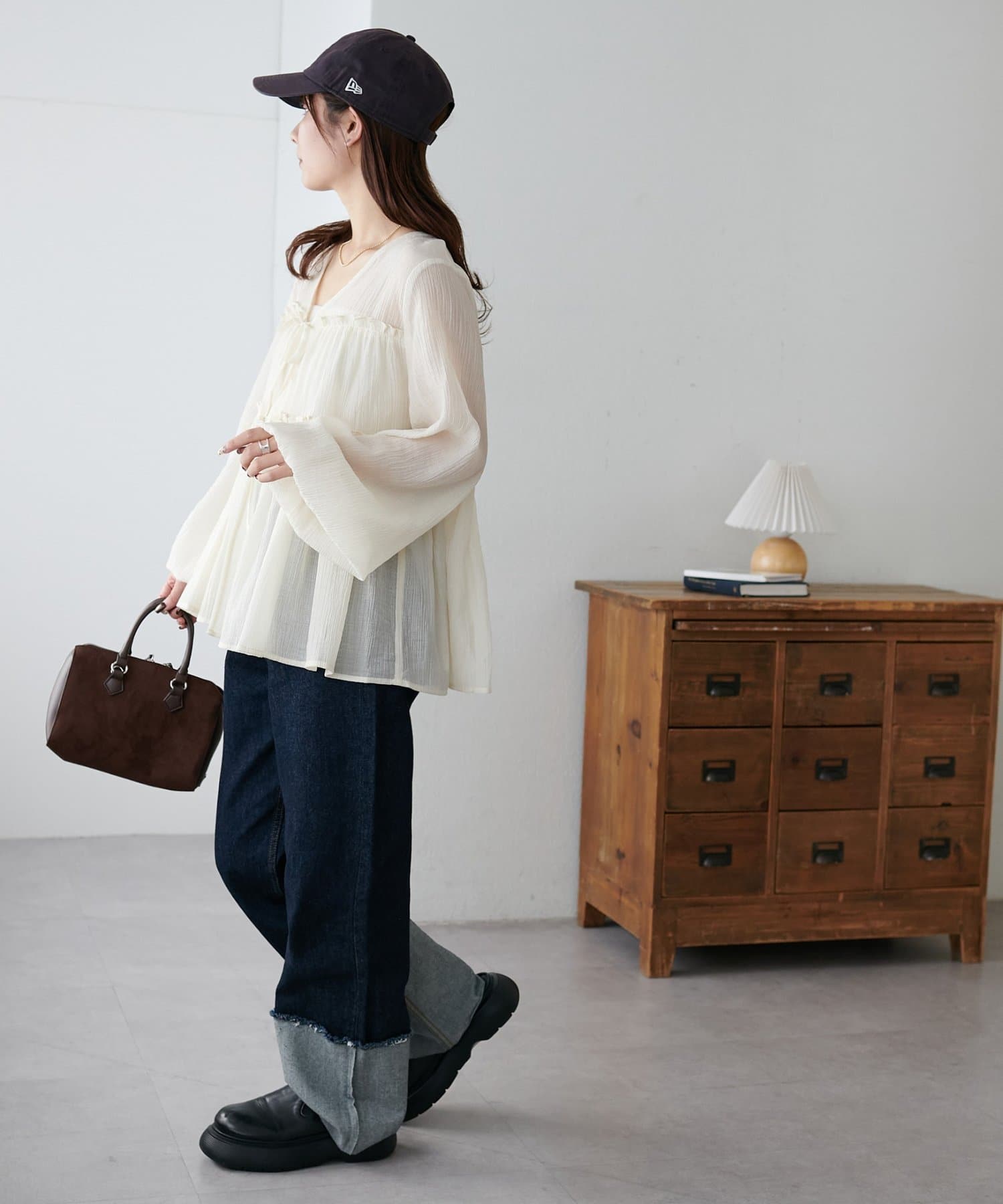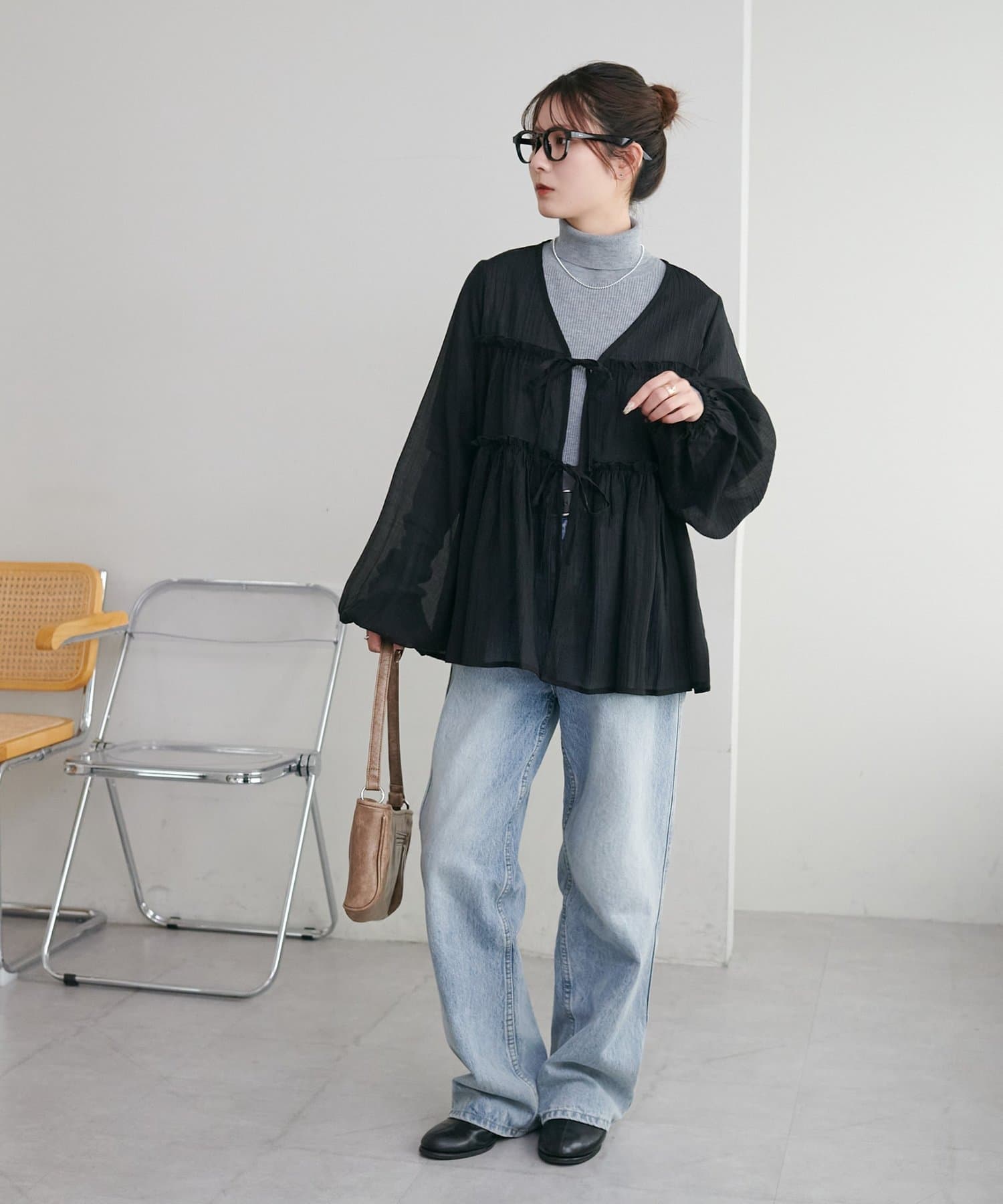 ・ふんわりシルエットなので、細身ボトムと合わせると全体のバランスが取りやすいです!