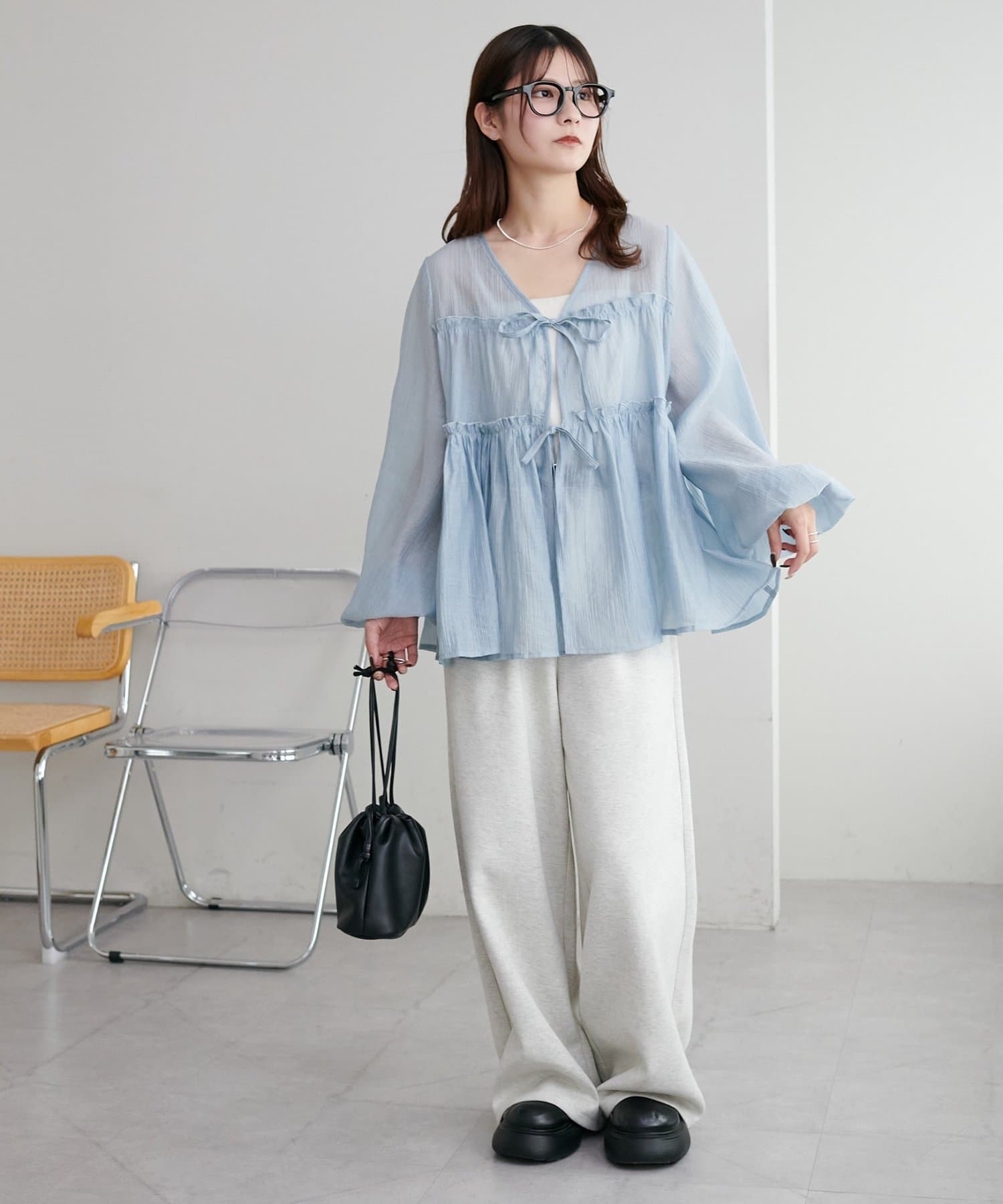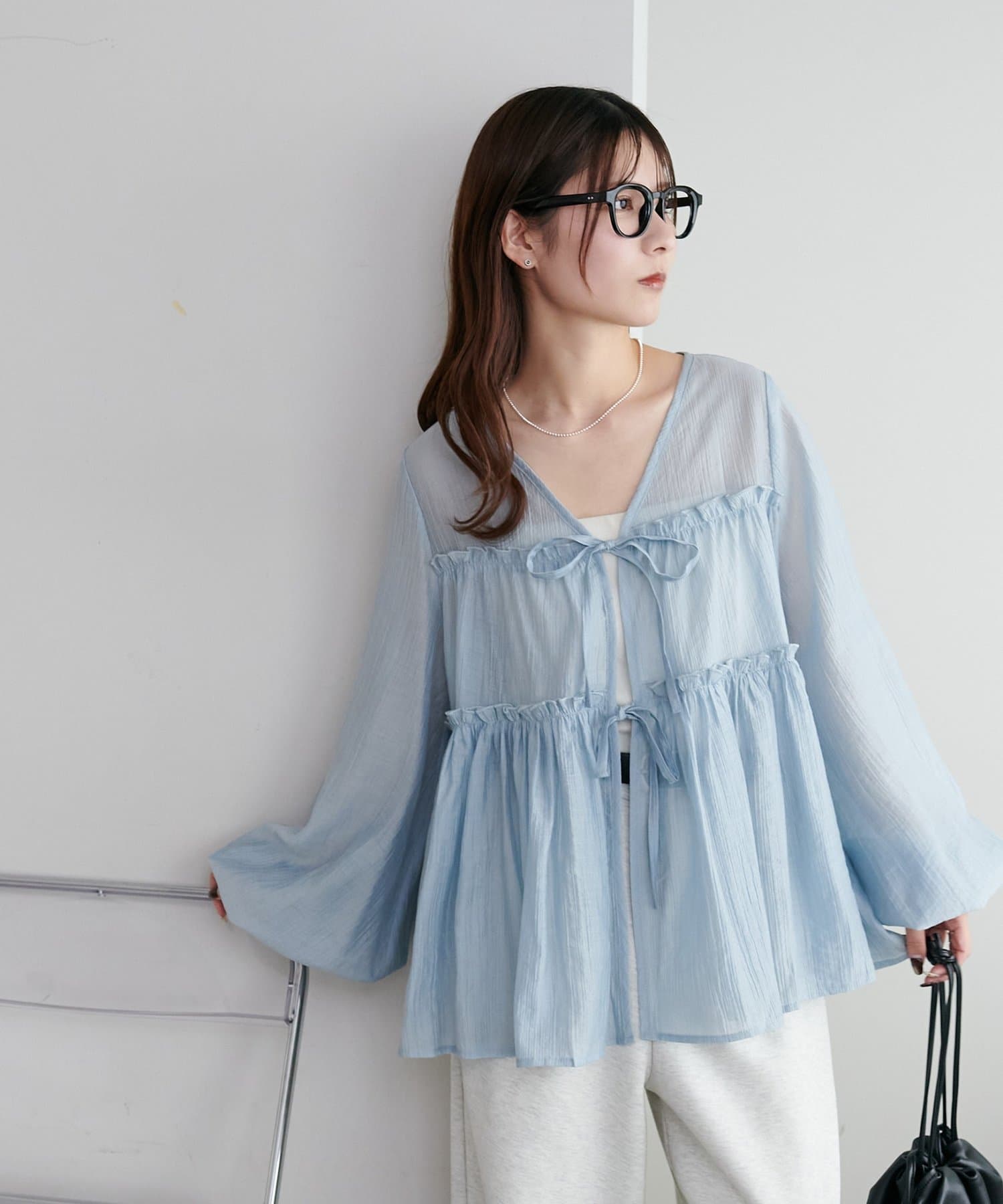 ふんわりシルエットが魅せる、軽やかフロントリボンブラウス